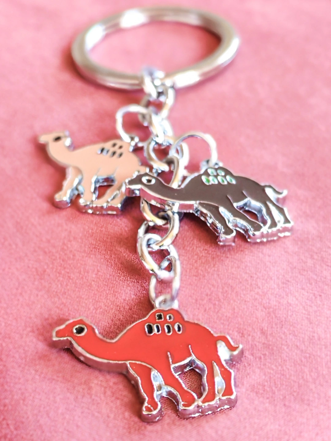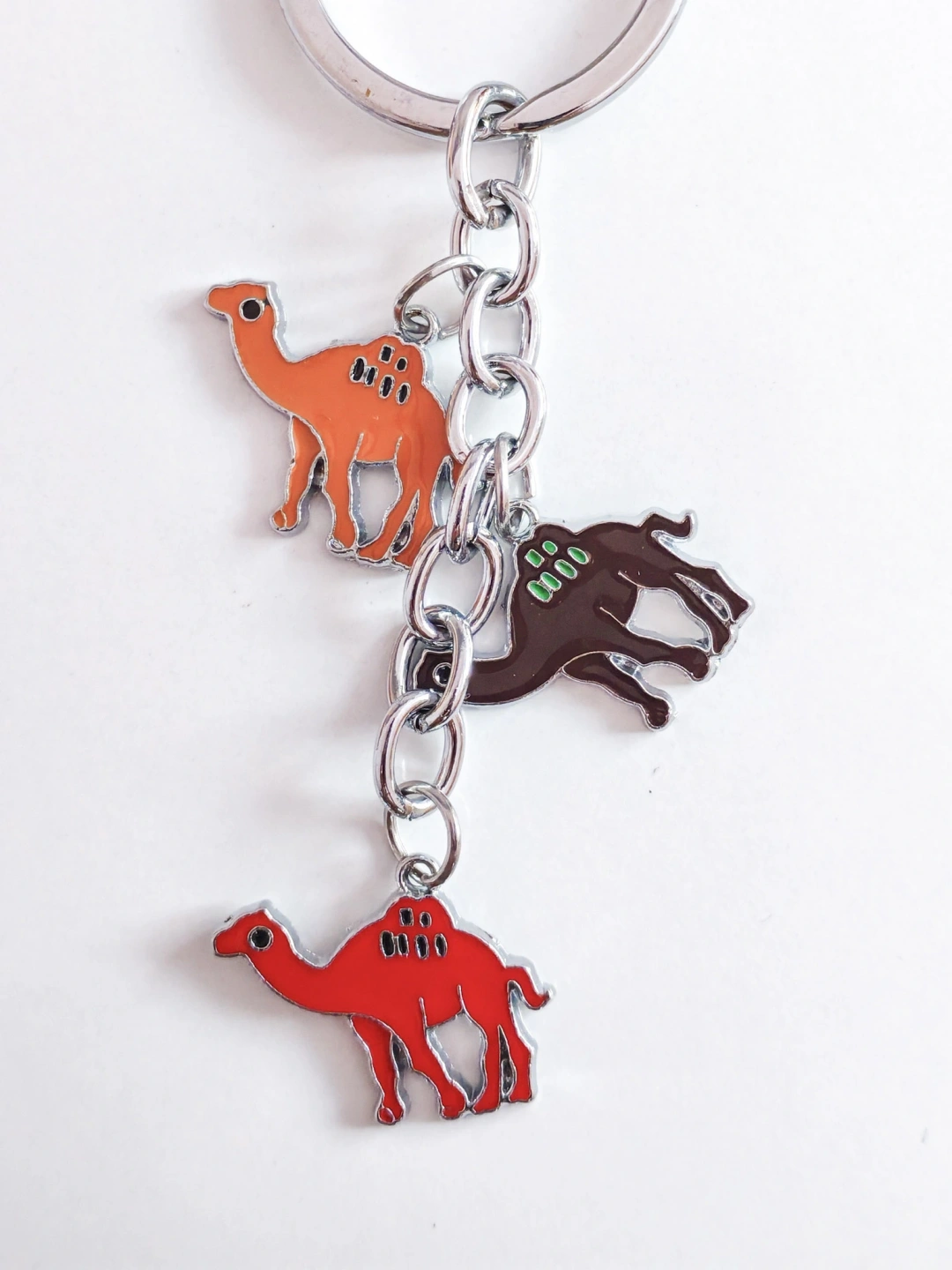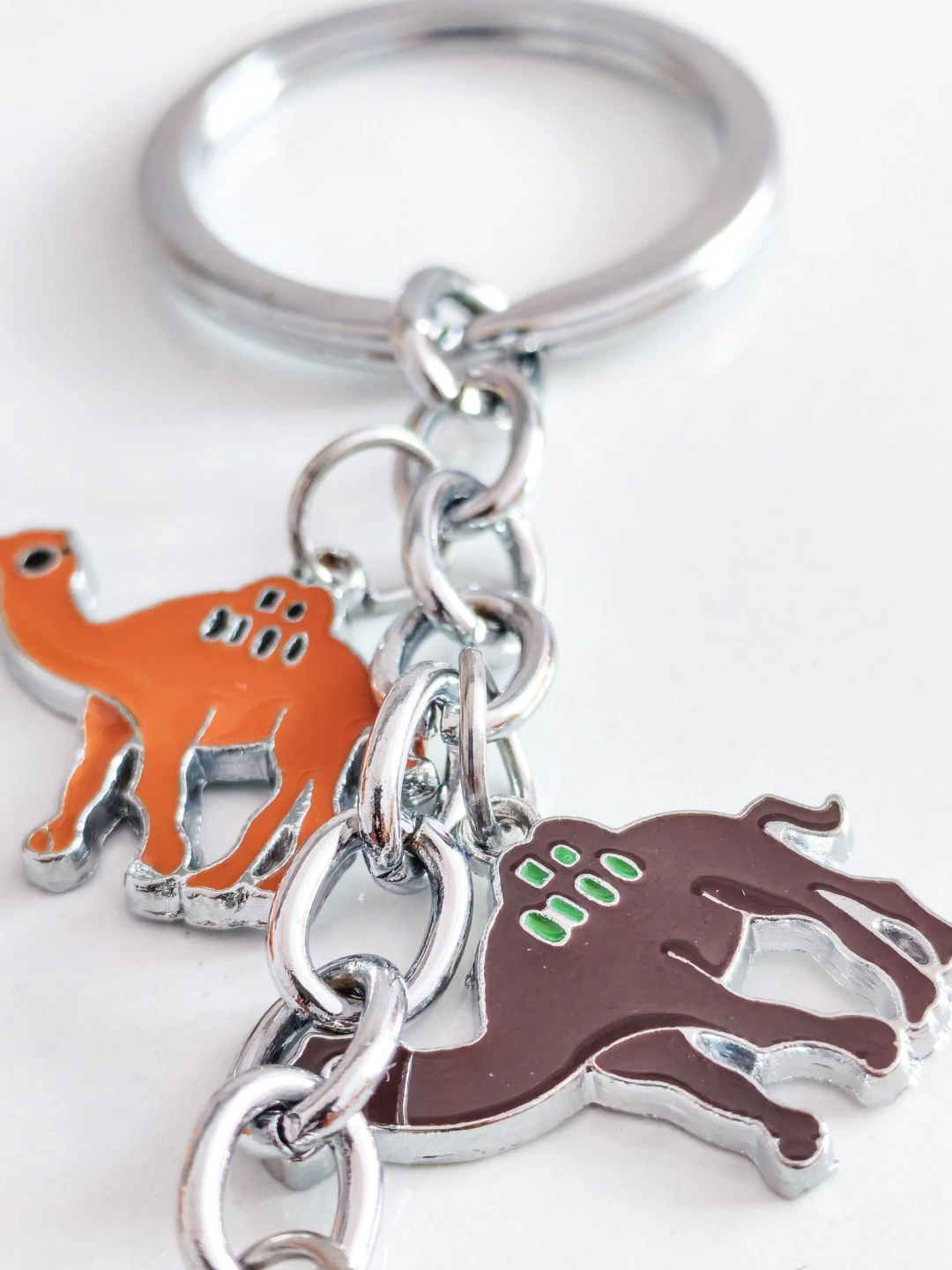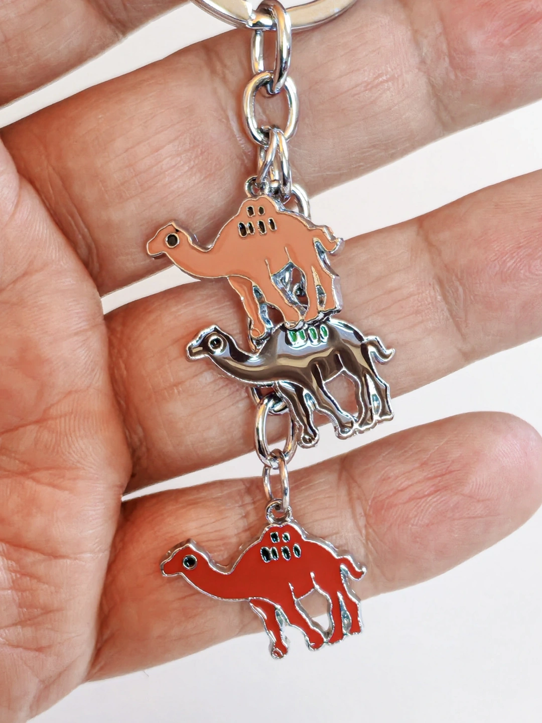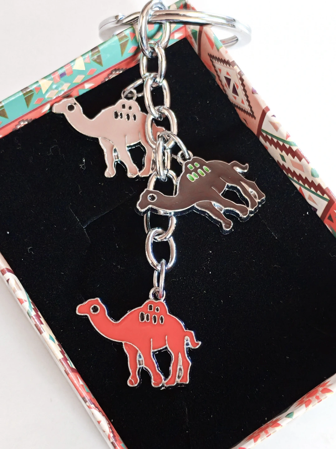 3 Farklı Renk Deveden Oluşan Metal Anahtarlık – Egzotik ve Anlamlı Tasarım