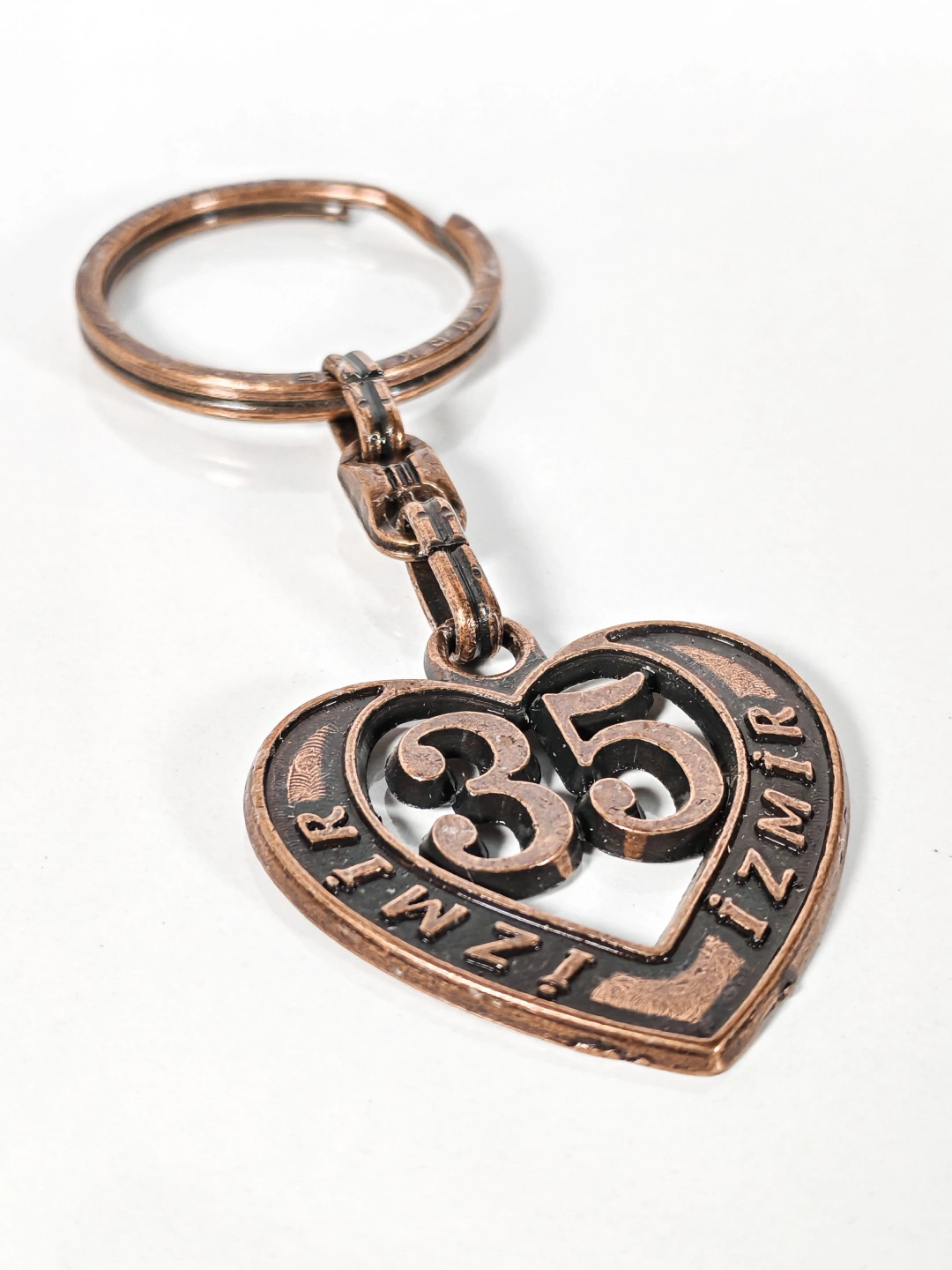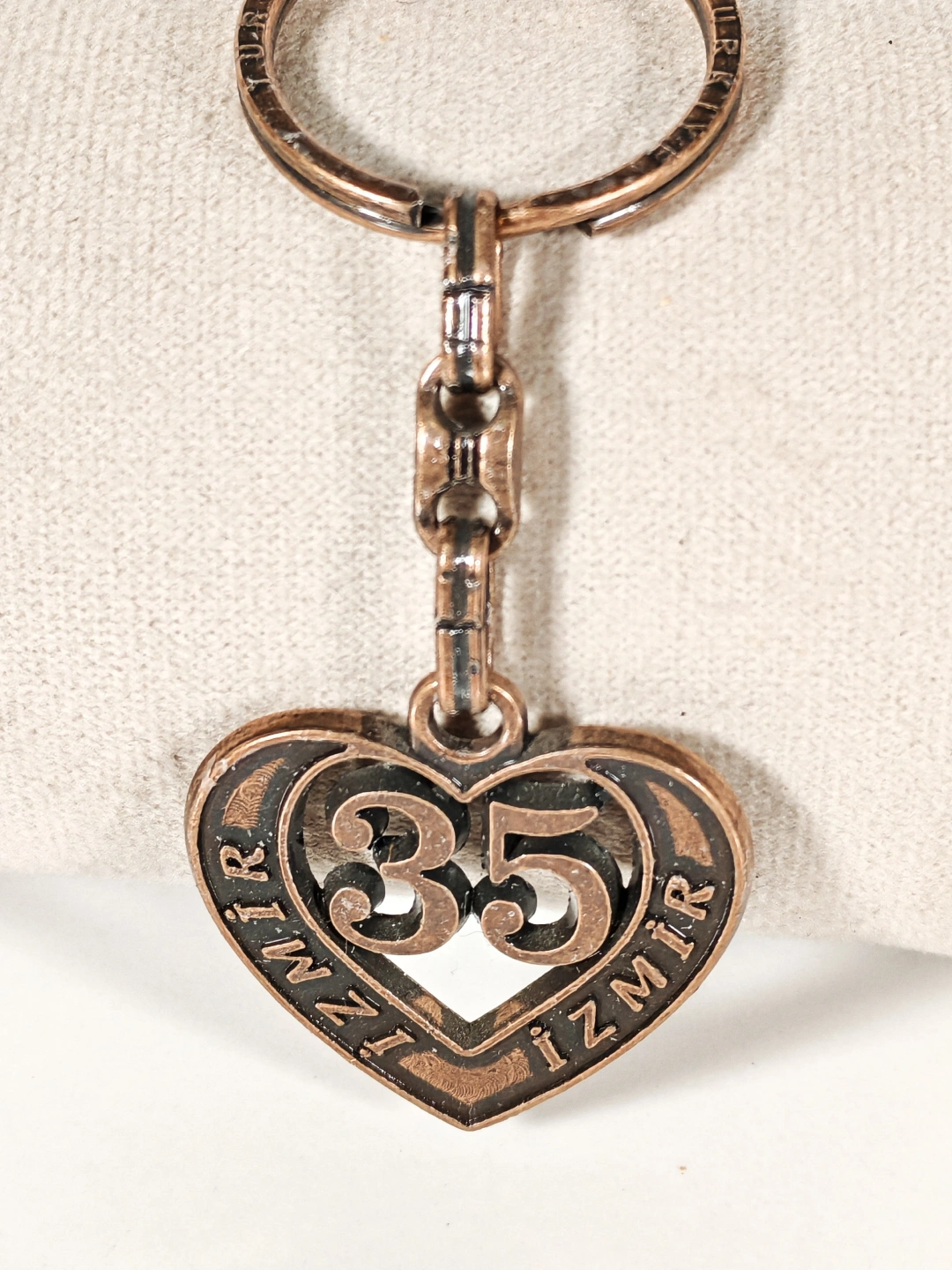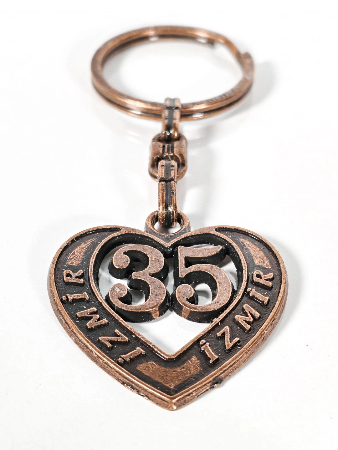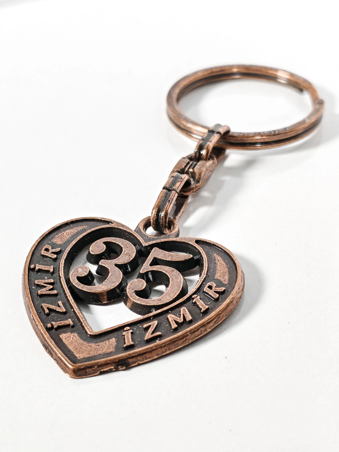 35 İzmir Plakalı Kalp Şeklinde Metal Anahtarlık – Özgür Ruh, Ege Zarafeti ve Memleket Sevgisi Bir Arada