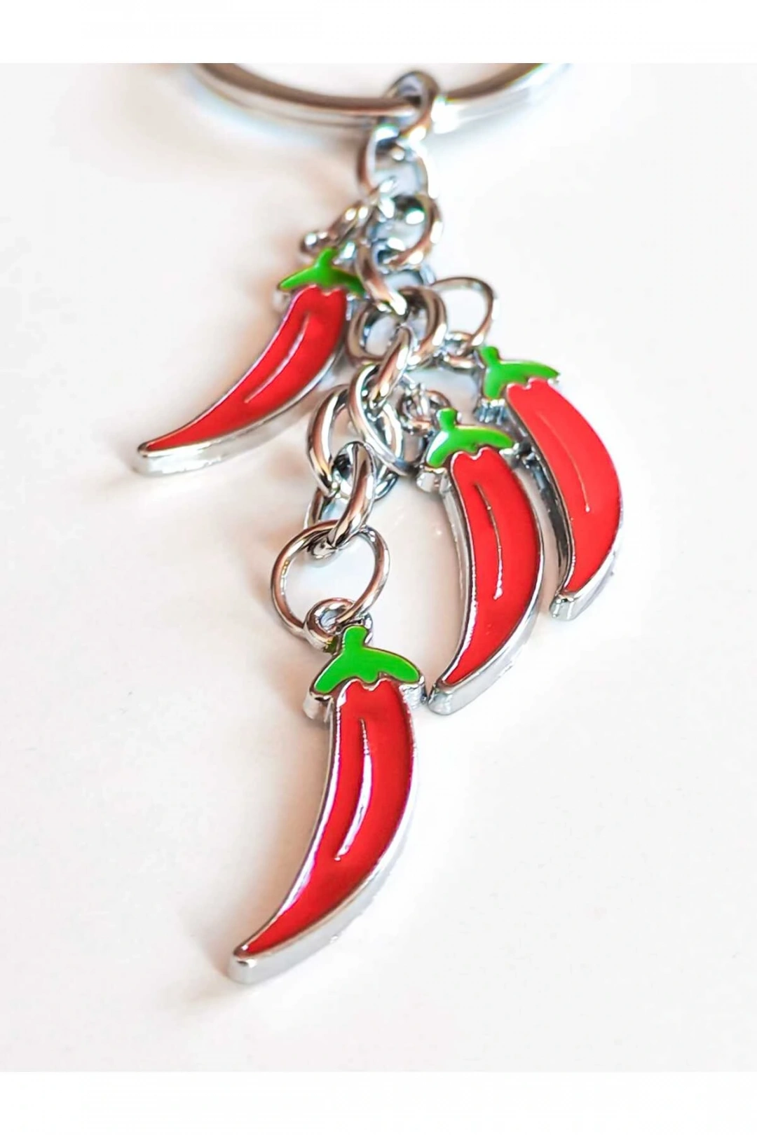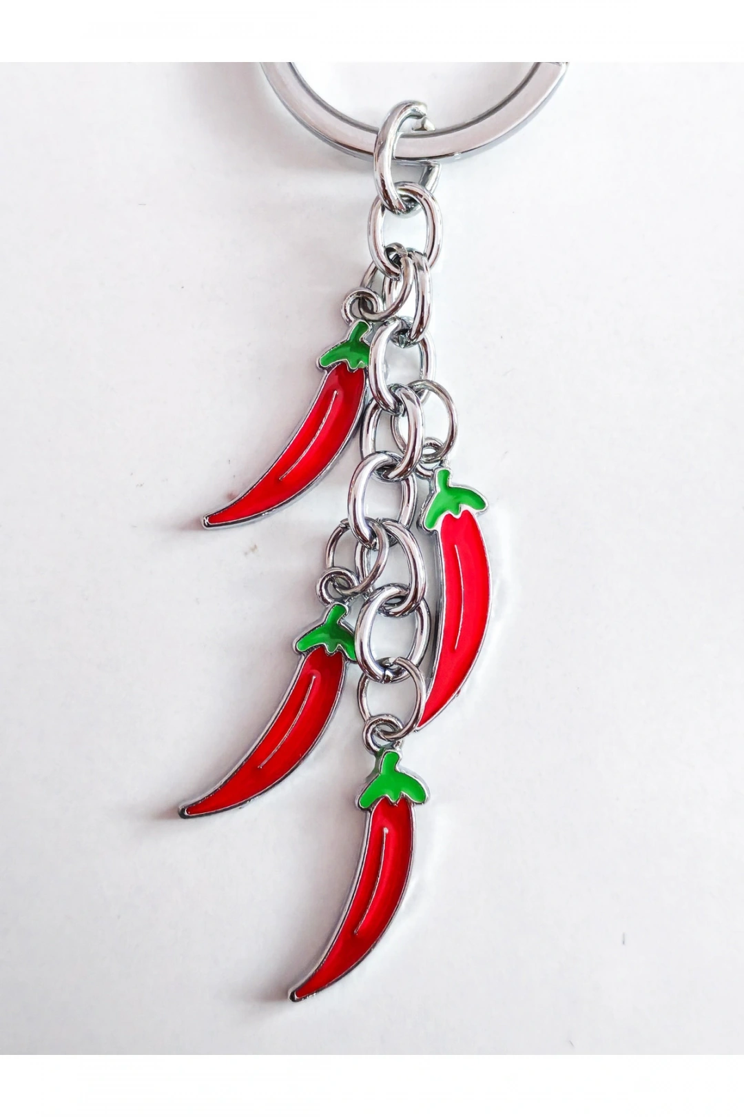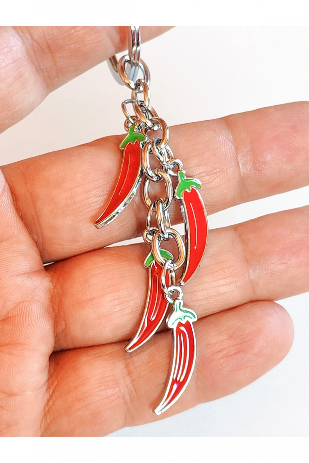 4 Kırmızı Biberden Oluşan Metal Anahtarlık – Enerjik ve Dikkat Çekici Tasarım