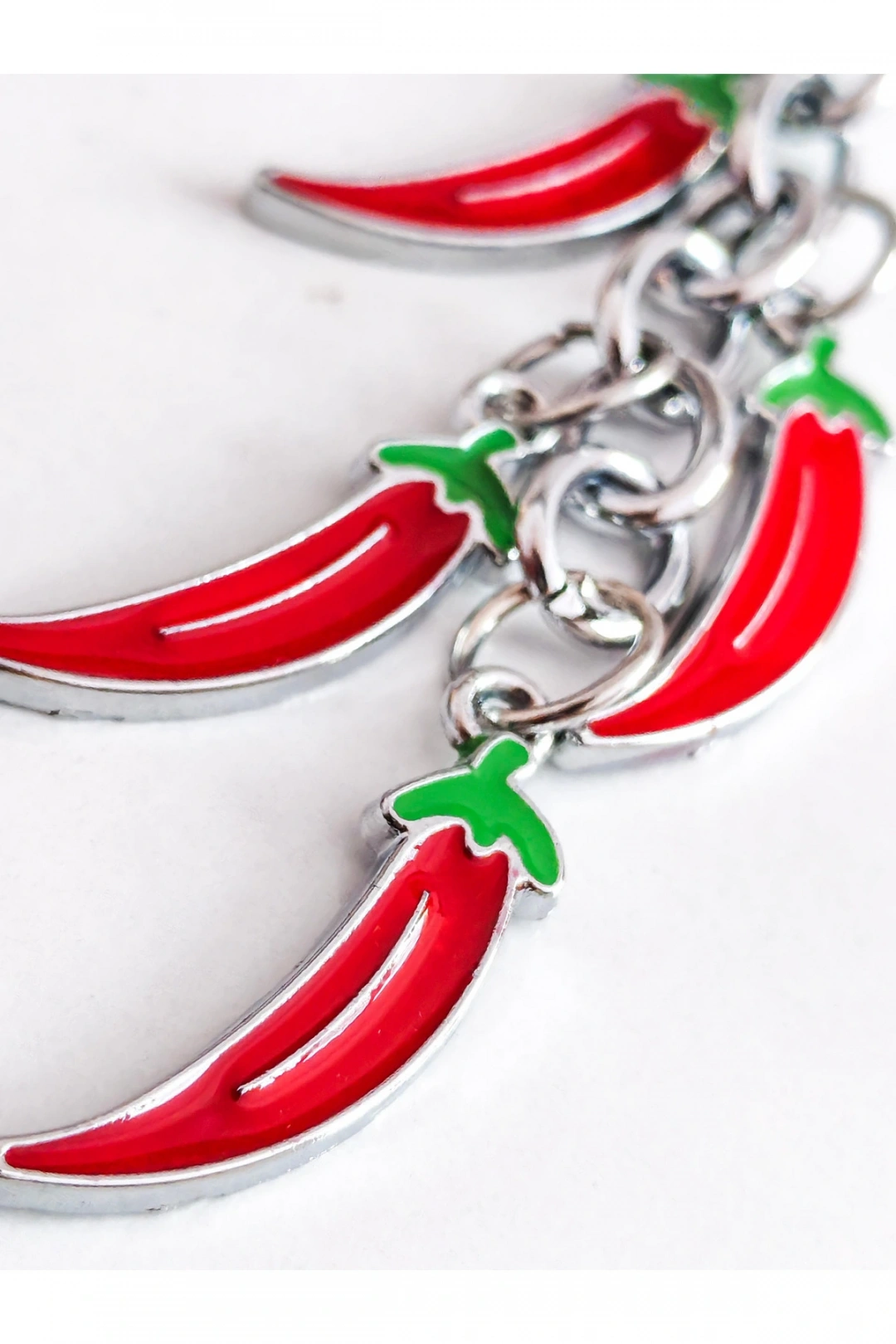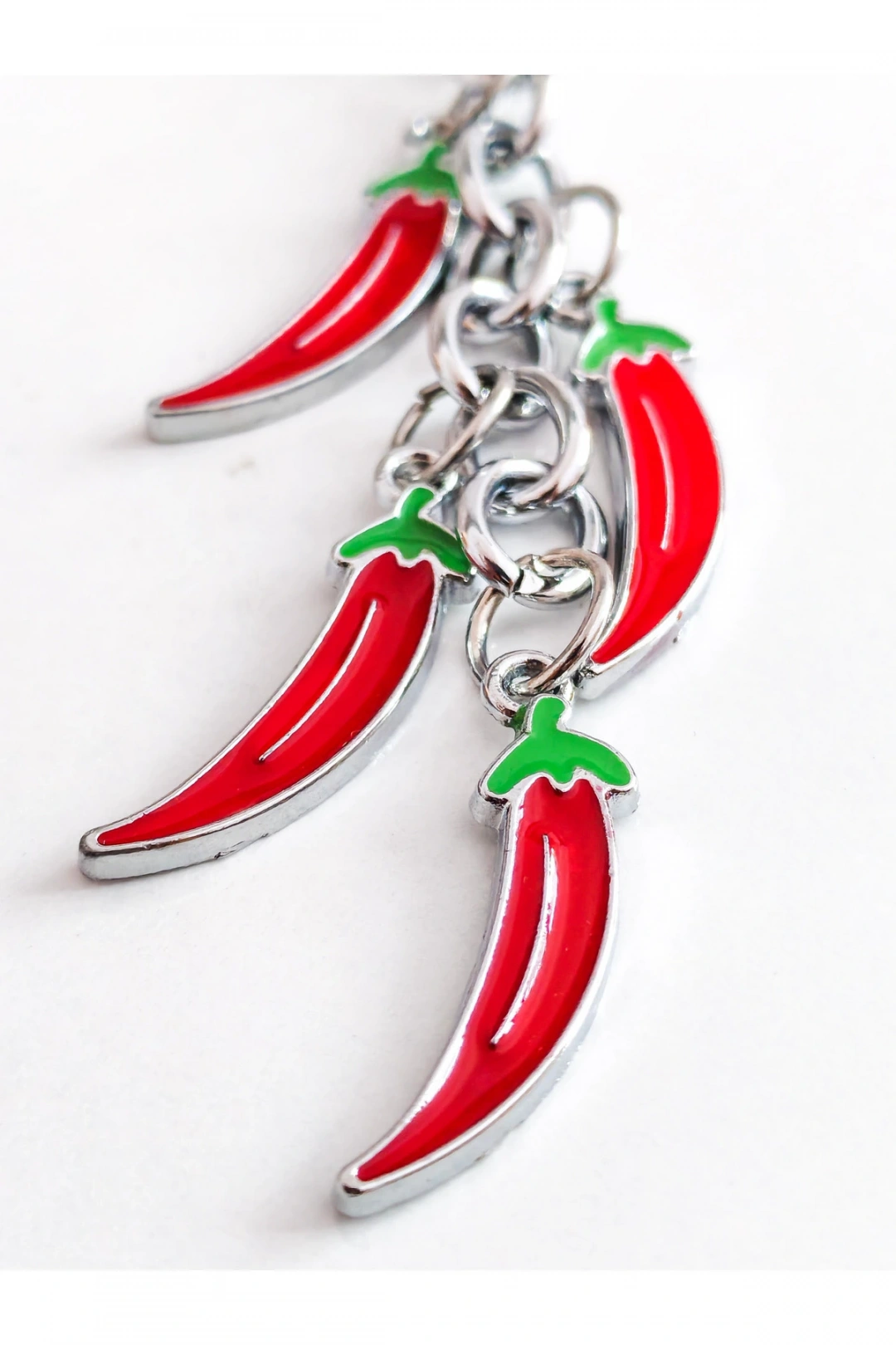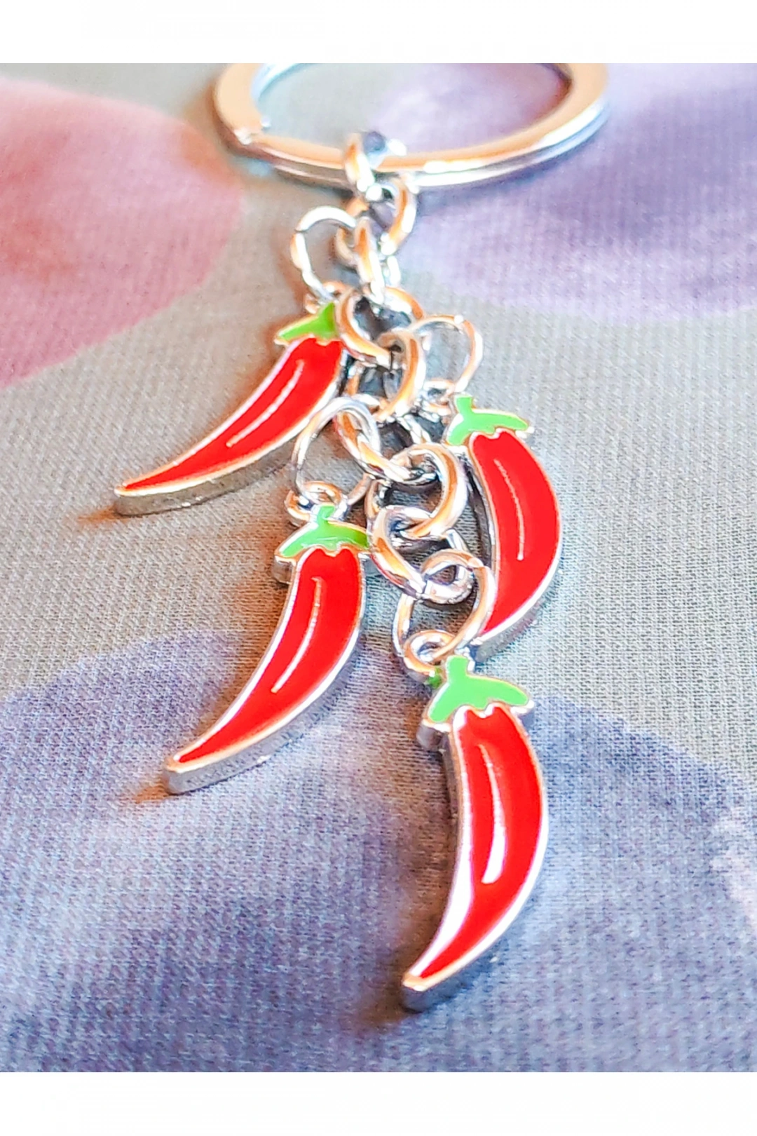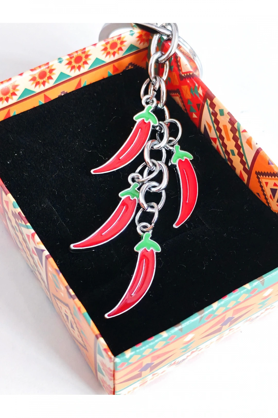4 Kırmızı Biberden Oluşan Metal Anahtarlık – Enerjik ve Dikkat Çekici Tasarım