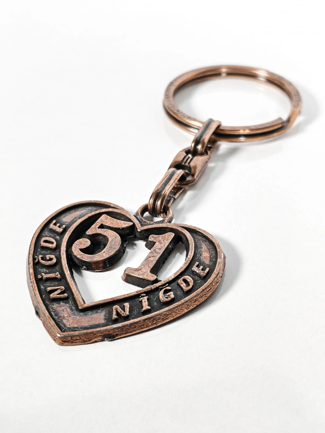 51 Niğde Plakalı Kalp Şeklinde Metal Anahtarlık – Anadolu’nun Sade Gücü, Memleket Bağlılığı ve Duygusal Şıklık Bir Arada