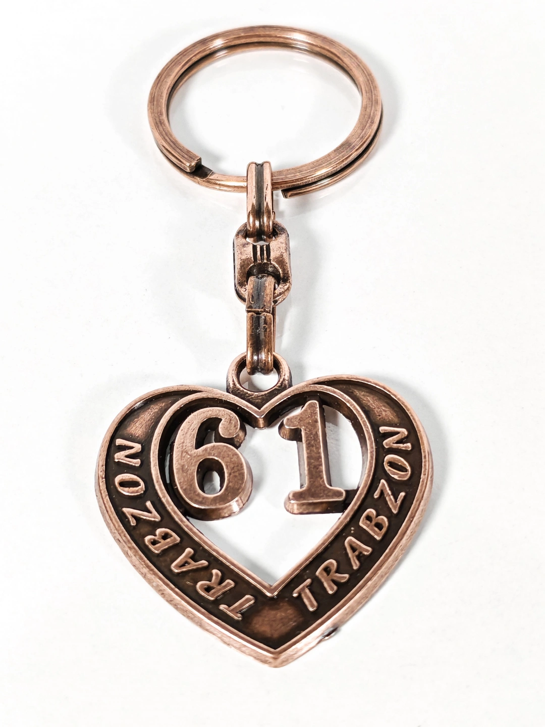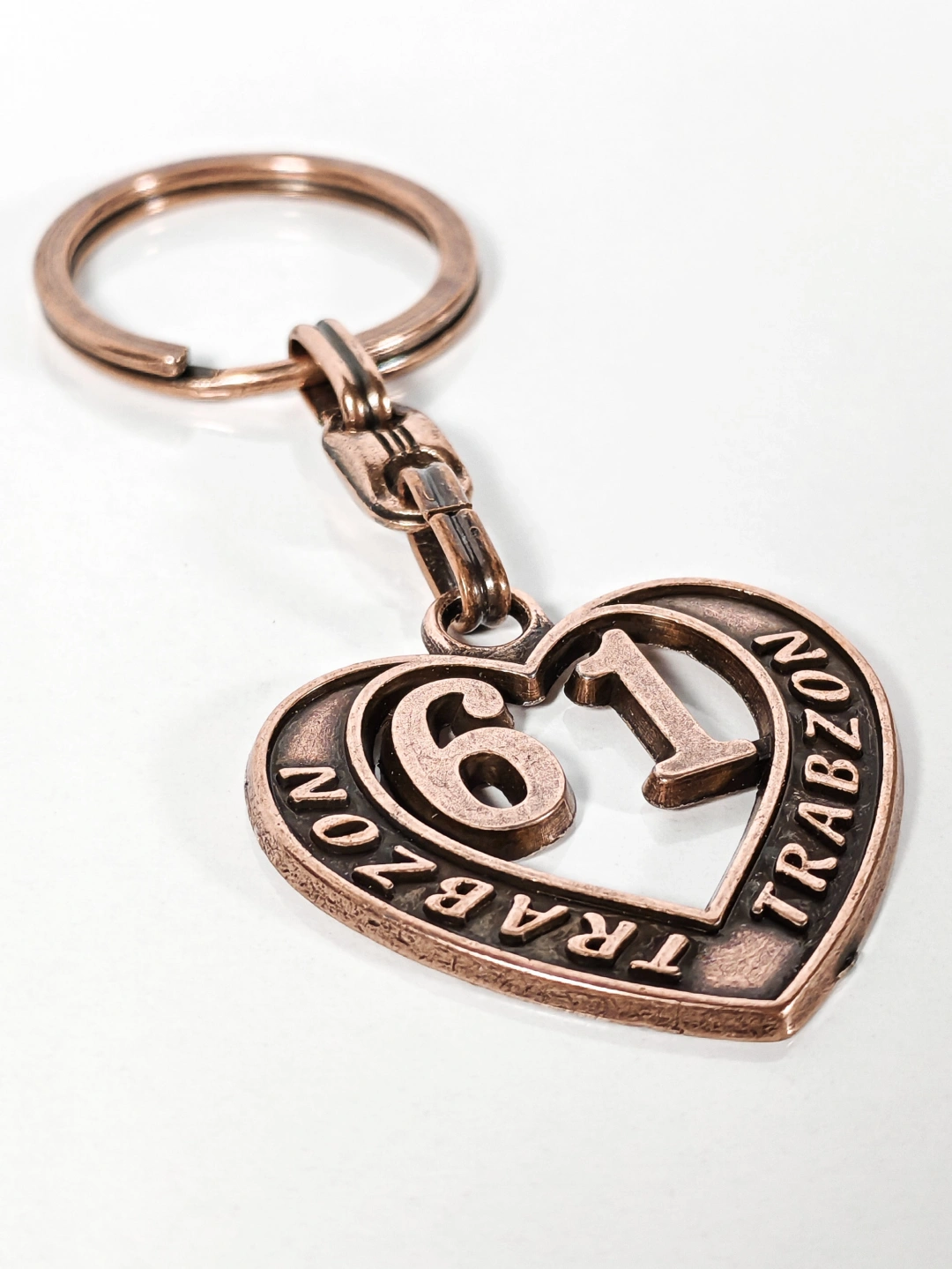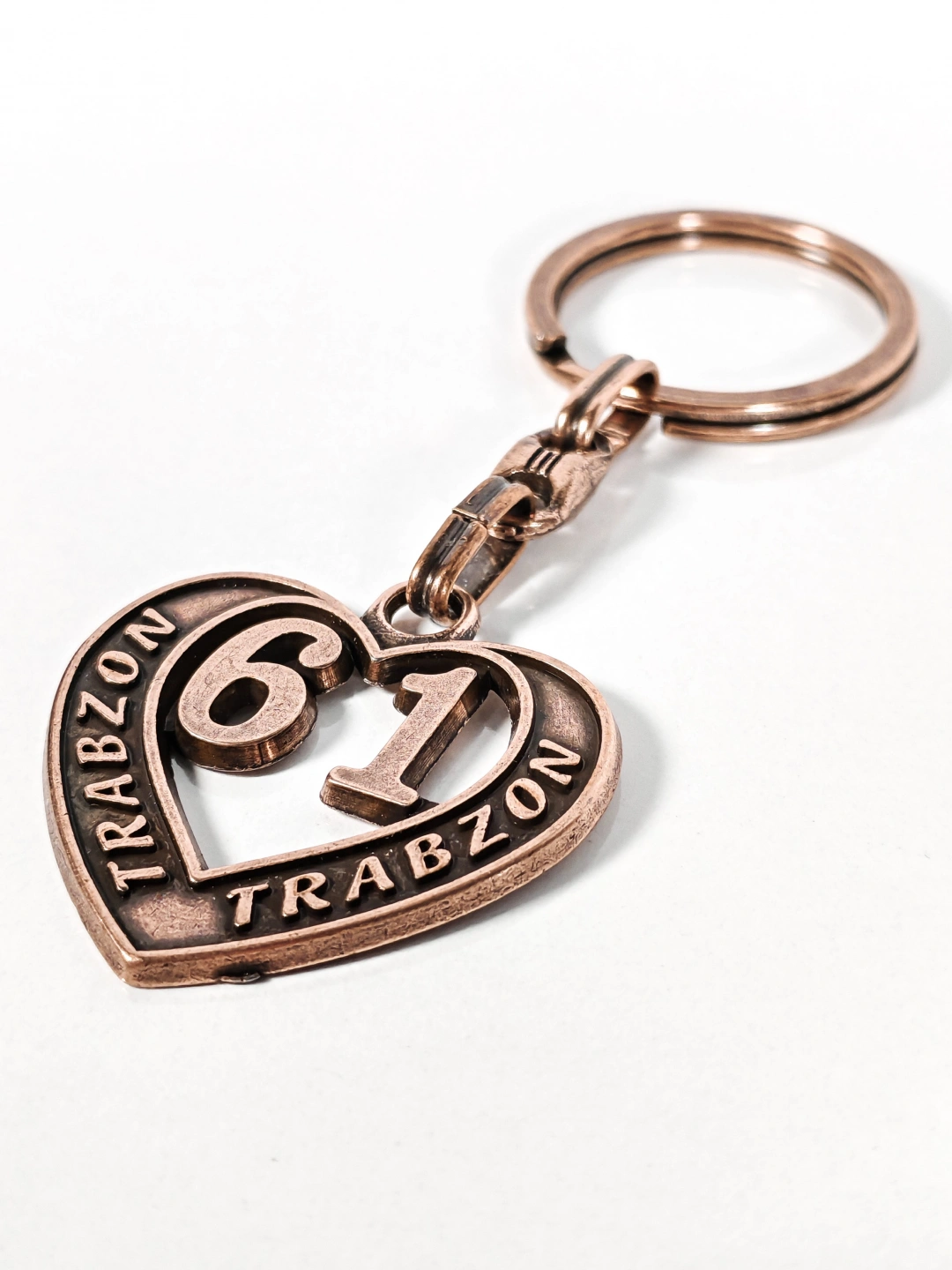 61 Trabzon Plakalı Kalp Şeklinde Metal Anahtarlık – Karadeniz’in Asi Ruhu, Güçlü Bağlar ve Memleket Sevgisi Bir Arada
