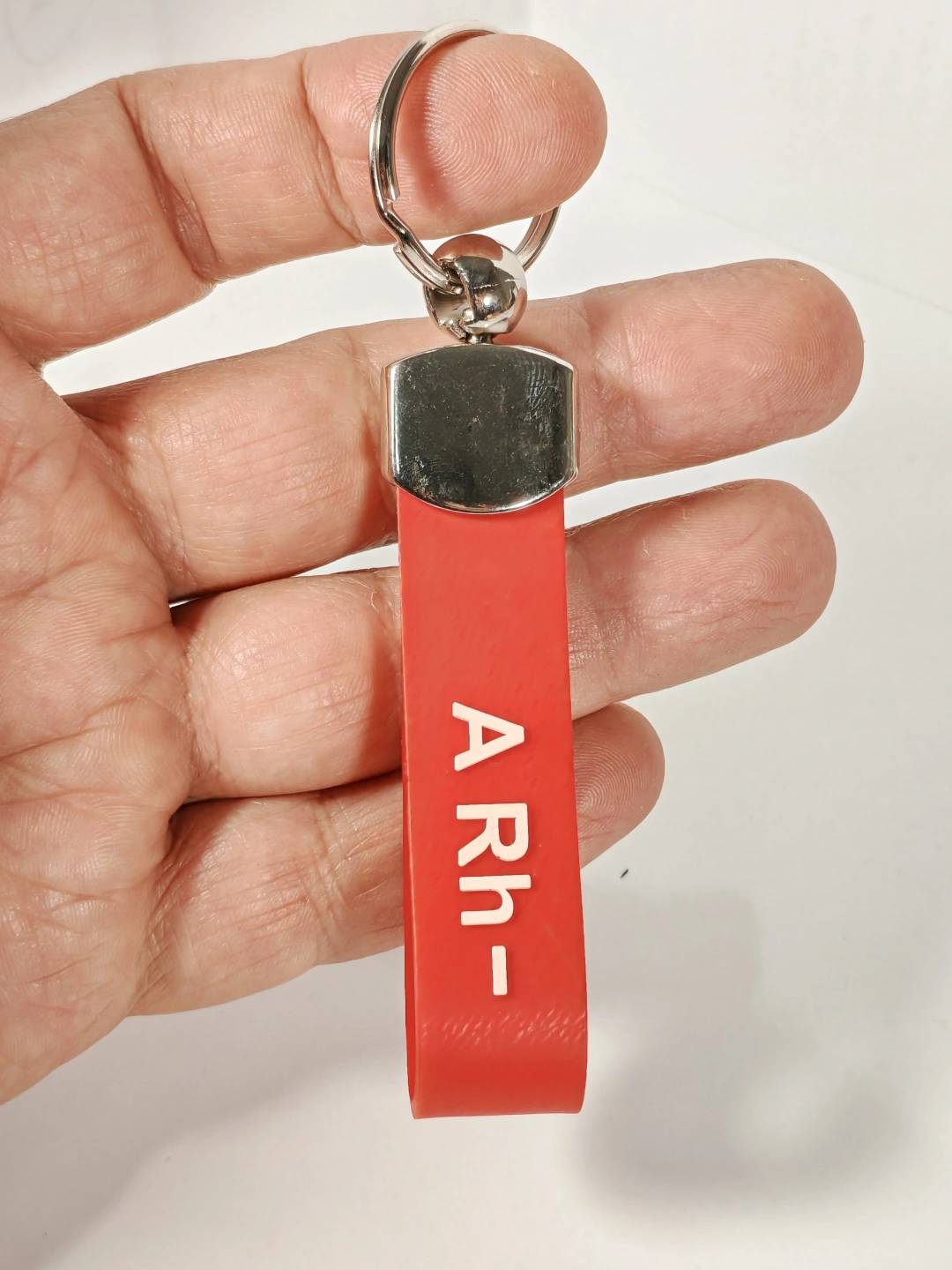 A Rh(-) Kan Grubu Silikon Anahtarlık – Acil Durumlar İçin Hayati Bilgi, Günlük Kullanımda Pratik Tasarım