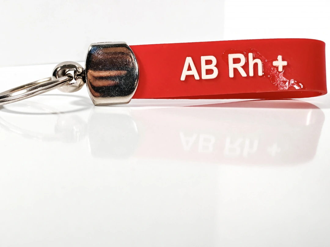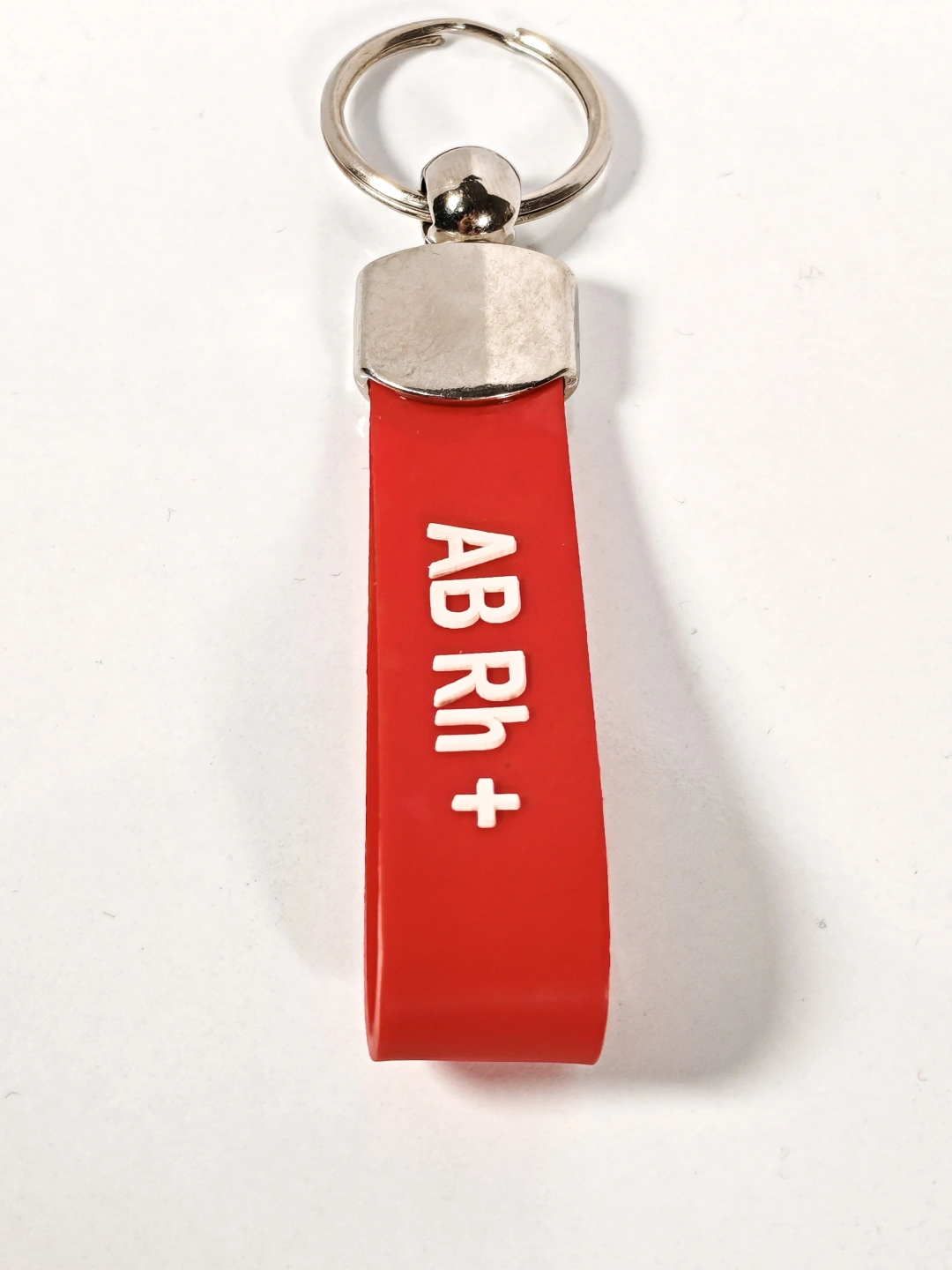 AB Rh(+) Kan Grubu Silikon Anahtarlık – Acil Durumlar İçin Hayati Bilgi, Günlük Kullanımda Pratik Tasarım