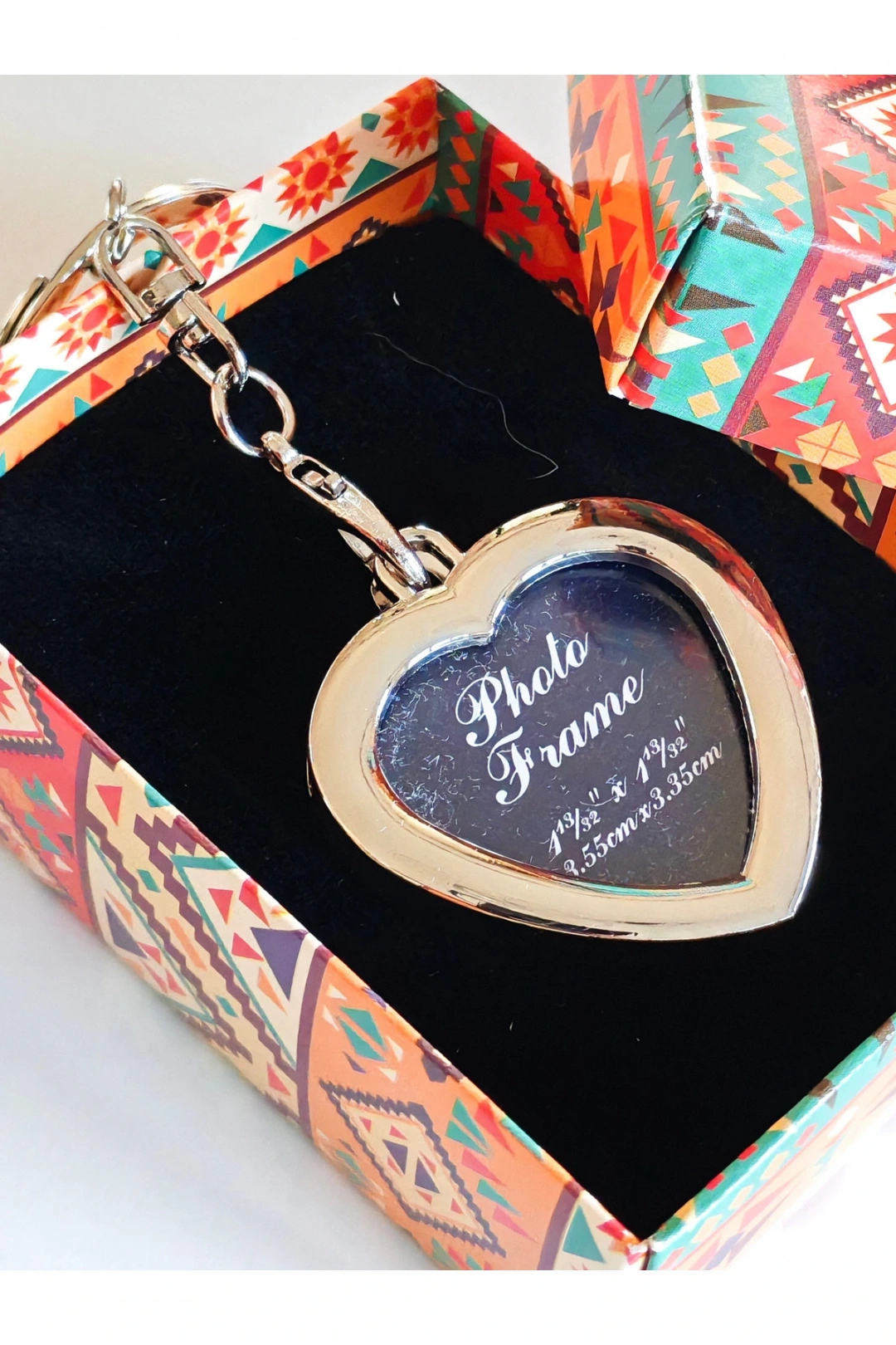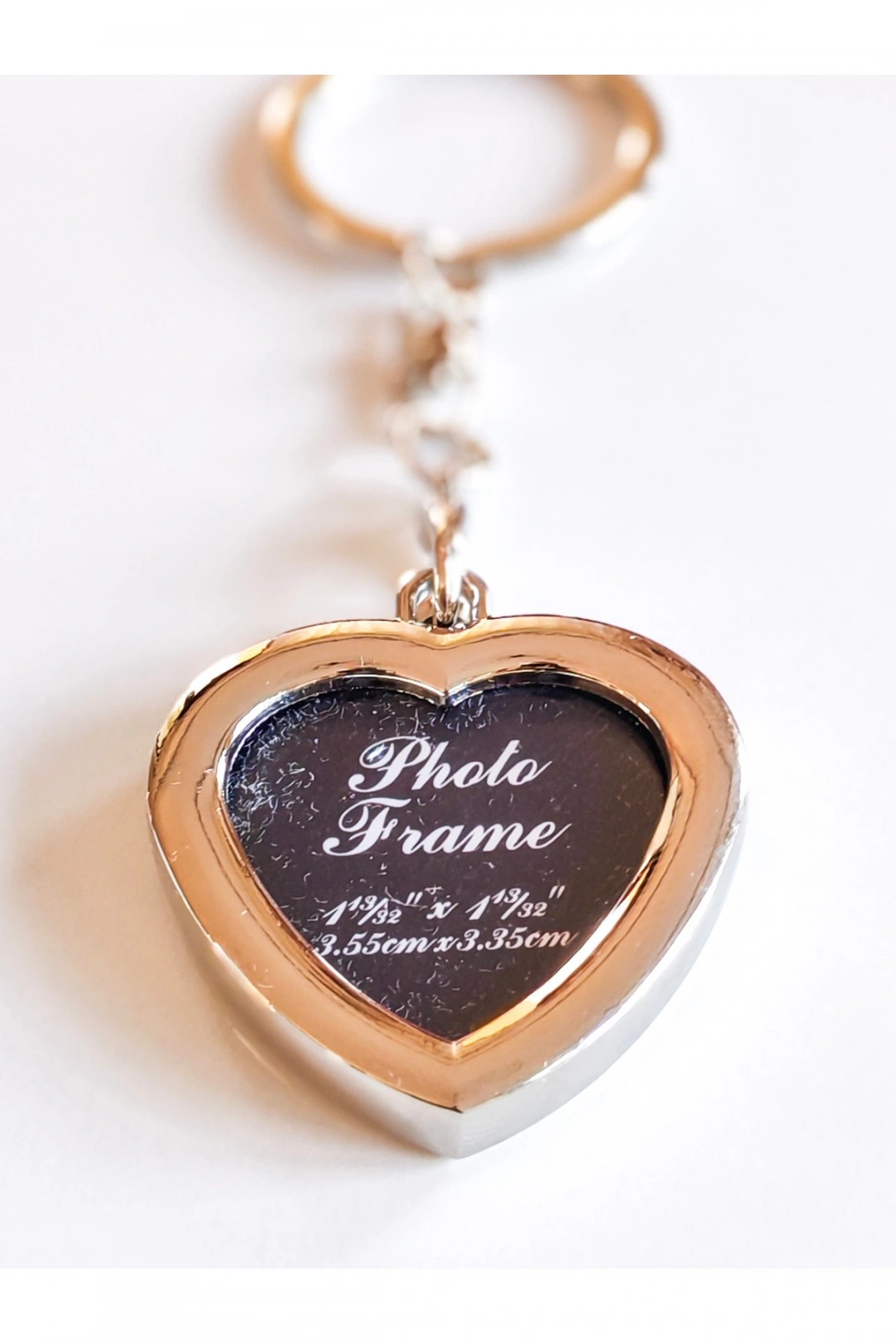 Altın sarısı kalp şeklindeki metal anahtarlık, fotoğraf çerçevesi özelliğiyle sevdiğiniz kişinin veya özel anılarınızın her zaman göz önünde olmasını sağlar.