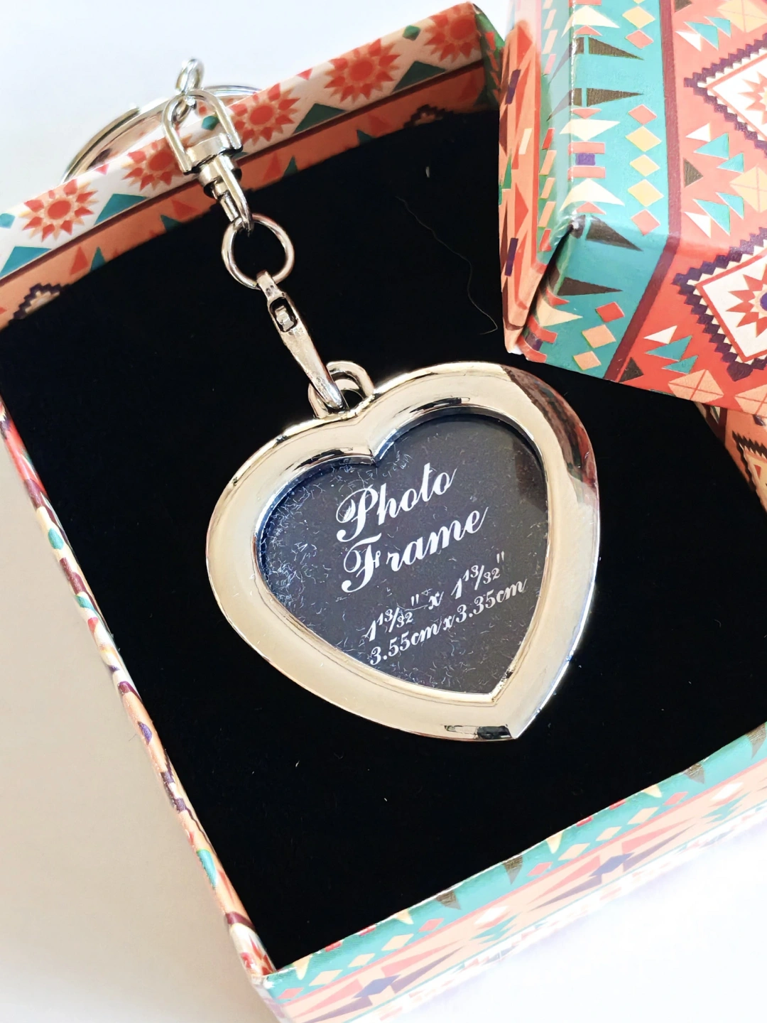 Altın Sarısı Kalp Şekilli Metal Fotoğraf Çerçeveli Anahtarlık – Sevgi ve Zarafetin Bir Araya Geldiği Tasarım