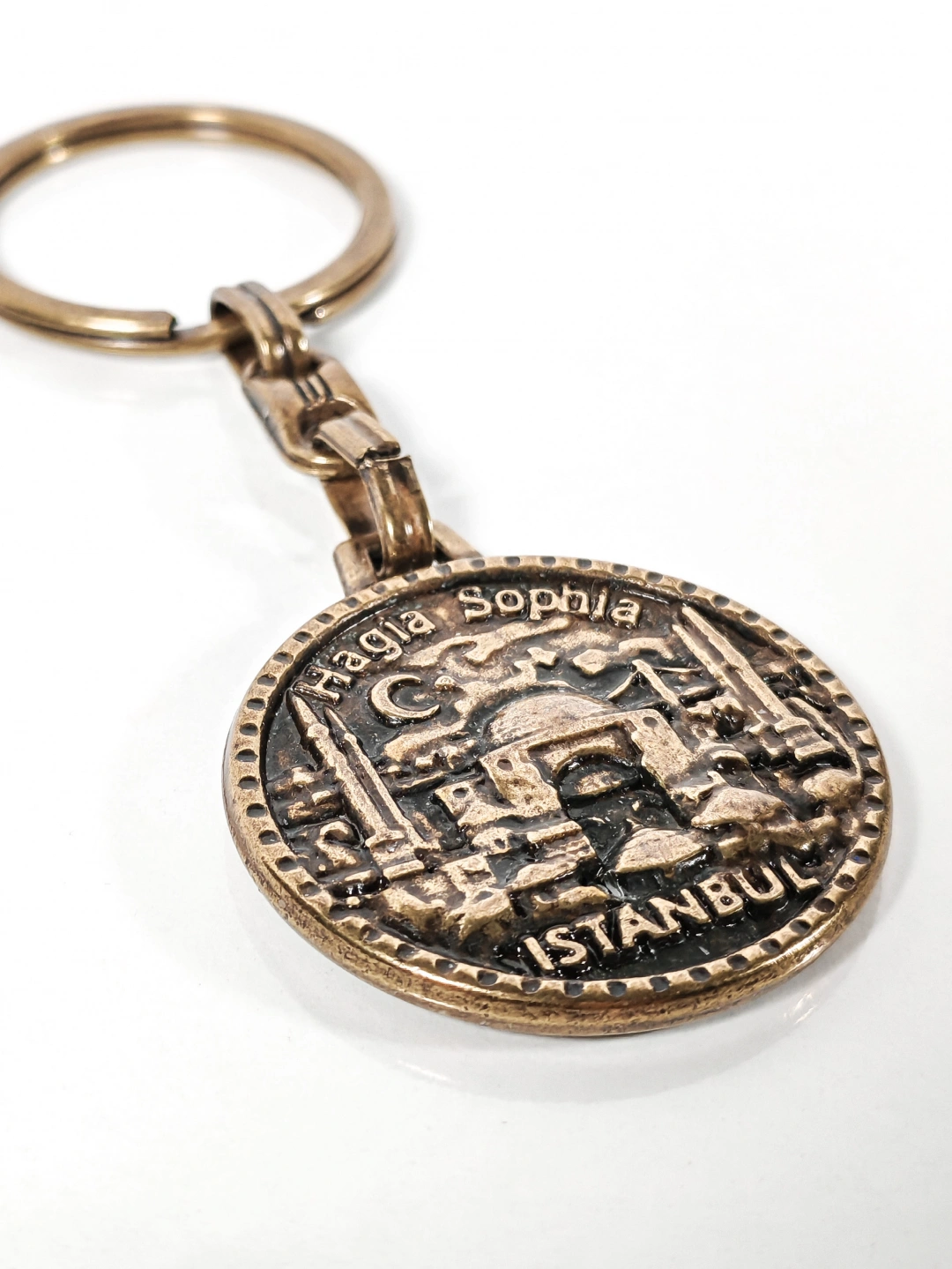 Şık tasarımı, sağlam yapısı ve taşıdığı tarihi anlamla antik bronz Ayasofya figürlü metal anahtarlık, kendiniz için olduğu kadar İstanbul tutkunu sevdikleriniz için de anlamlı ve özel bir hediye alternatifi olarak tercih edilebilir.