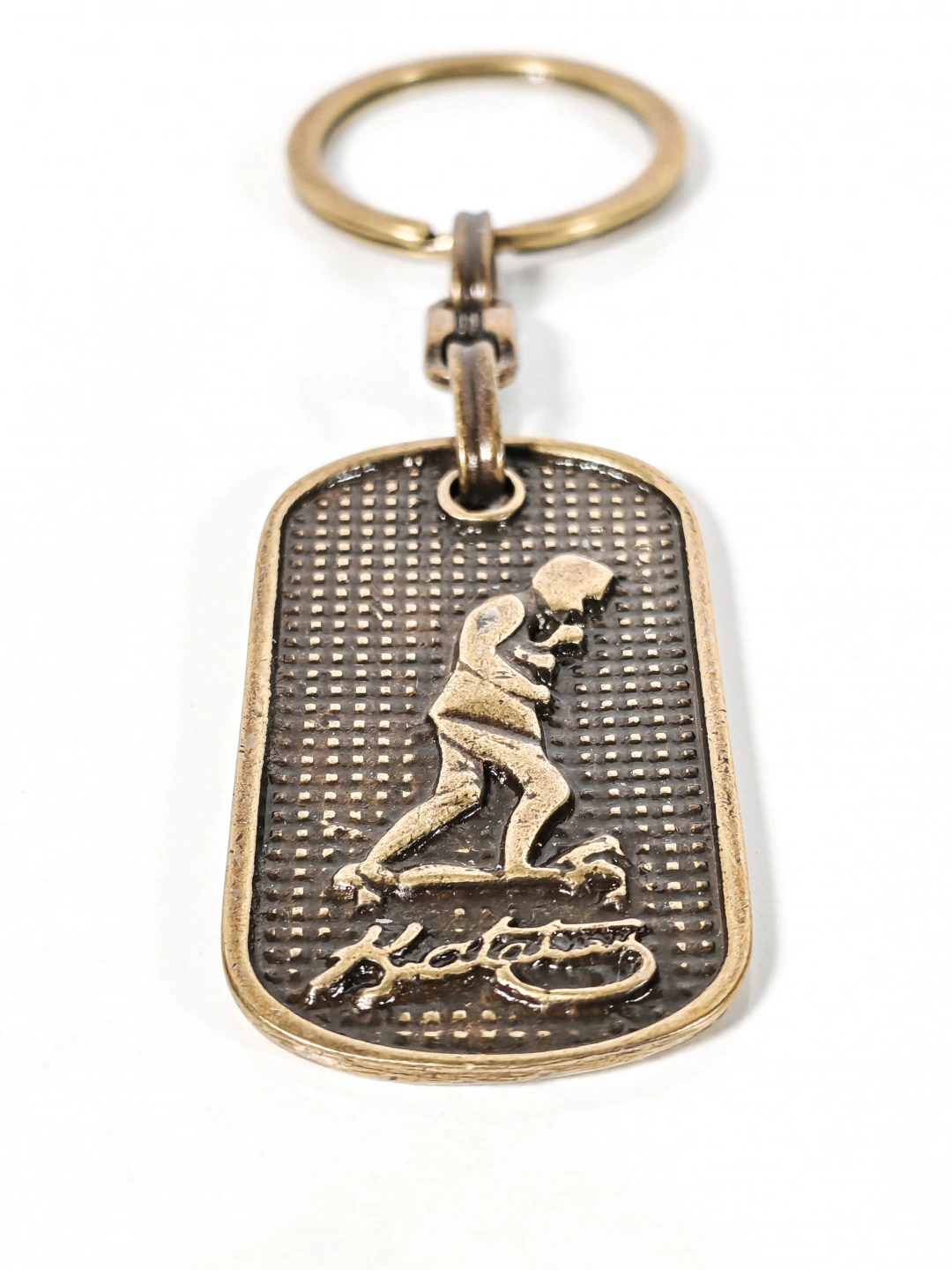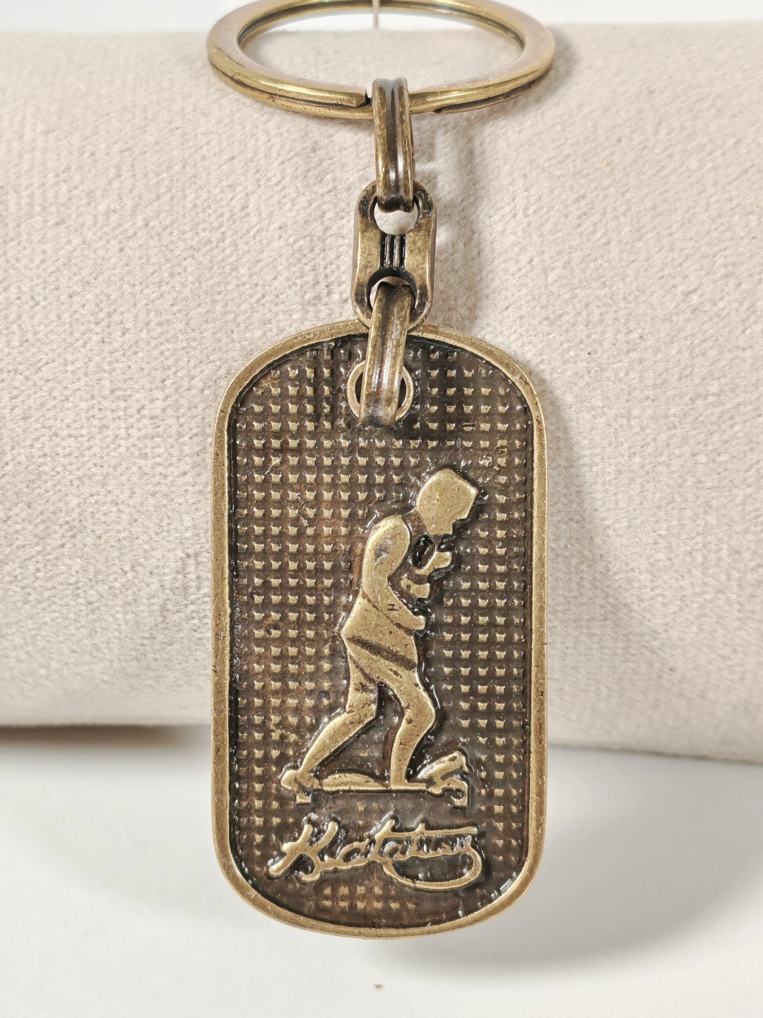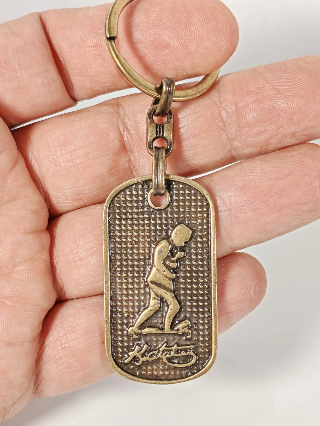 Dayanıklı metal malzemeden üretilmiştir. Eskitme antik bronz kaplaması sayesinde vintage bir görünüm sunar ve günlük kullanıma uygundur. Kabartmalı yüzey dokusu figür detaylarını ön plana çıkarırken, sağlam anahtarlık halkası ve bağlantı aparatı anahtarlarınızı güvenle taşımanızı sağlar. Dengeli yapısı sayesinde cepte veya çantada rahatlıkla kullanılabilir.