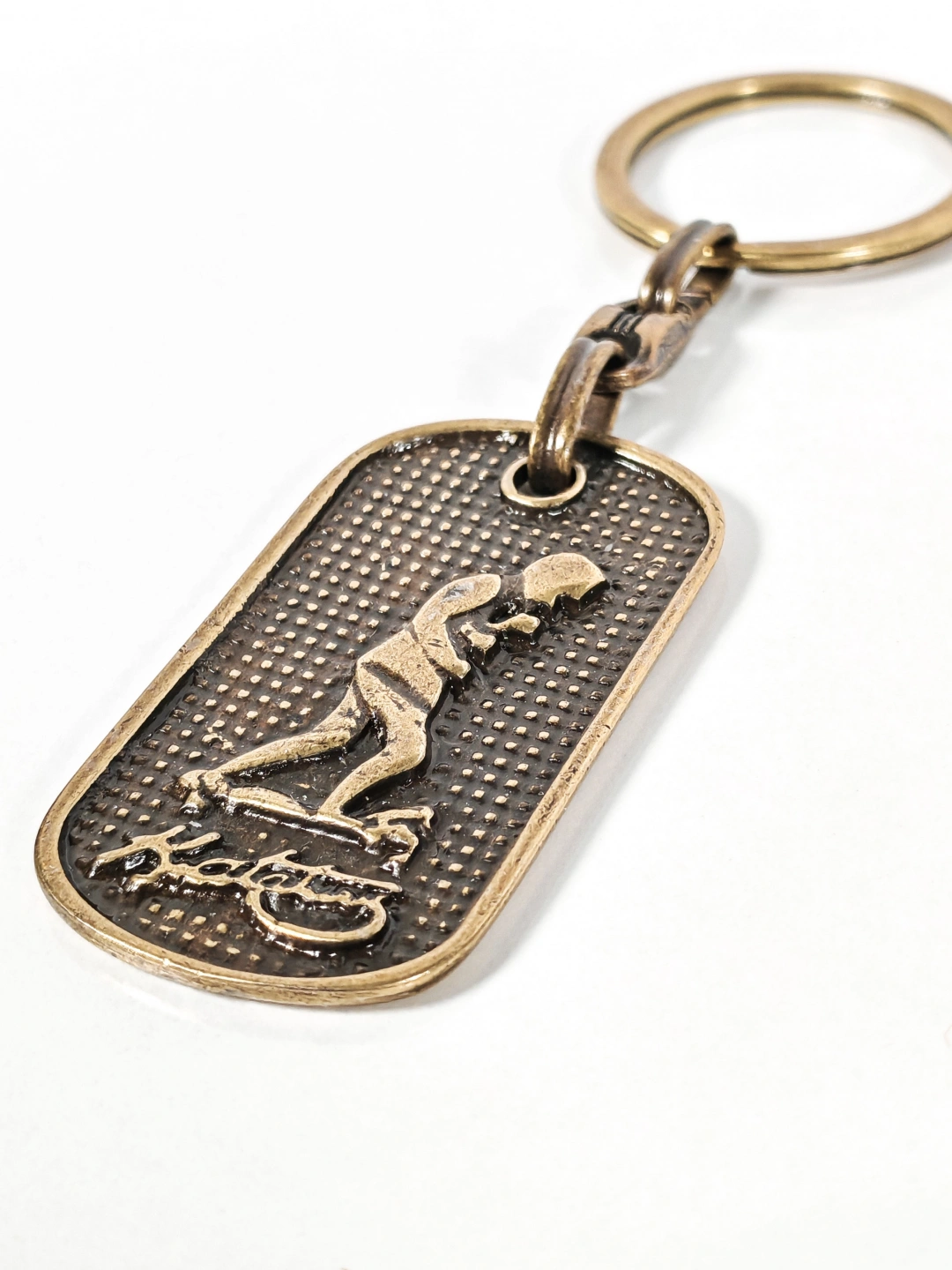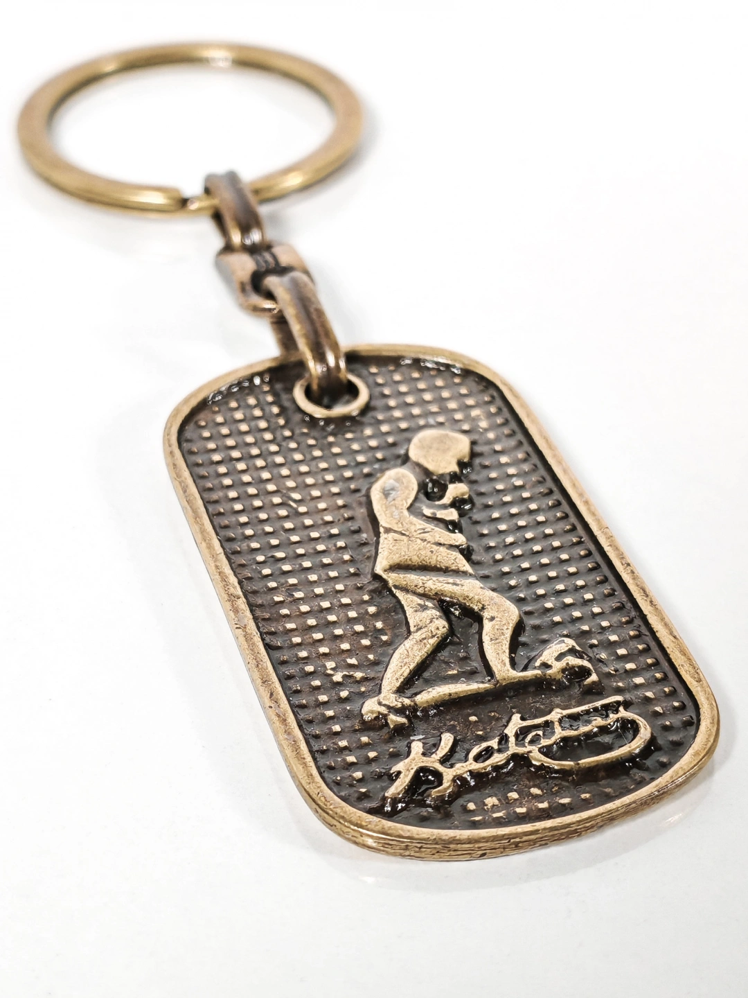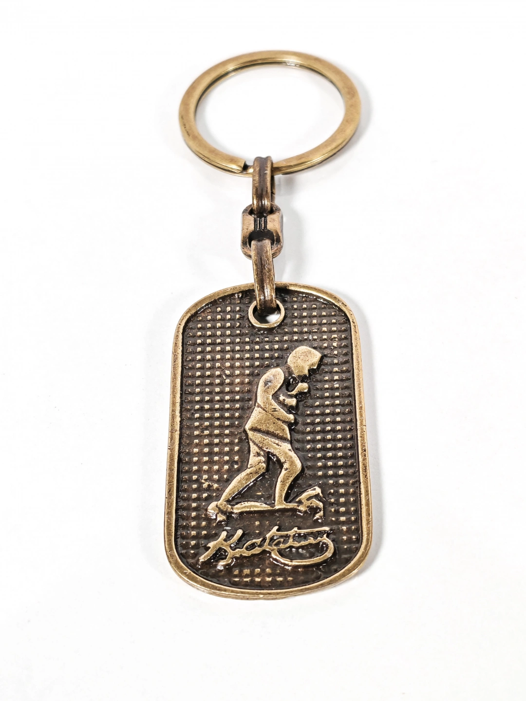 Dayanıklı metal malzemeden üretilmiştir. Eskitme antik bronz kaplaması sayesinde vintage bir görünüm sunar ve günlük kullanıma uygundur. Kabartmalı yüzey dokusu figür detaylarını ön plana çıkarırken, sağlam anahtarlık halkası ve bağlantı aparatı anahtarlarınızı güvenle taşımanızı sağlar. Dengeli yapısı sayesinde cepte veya çantada rahatlıkla kullanılabilir.