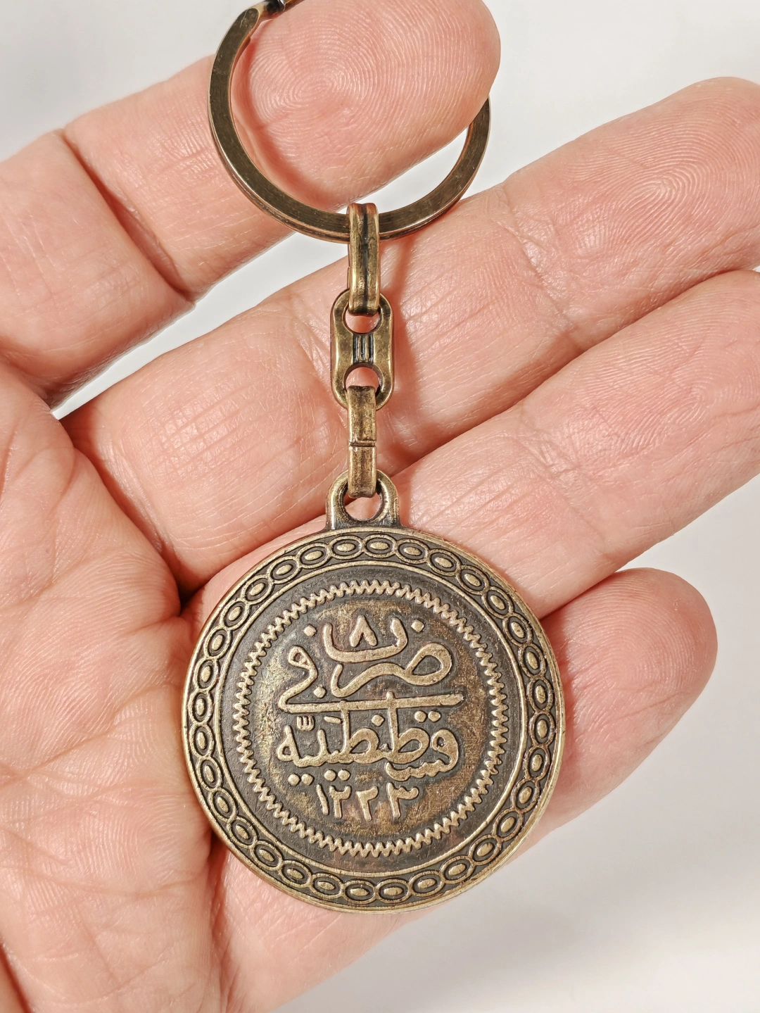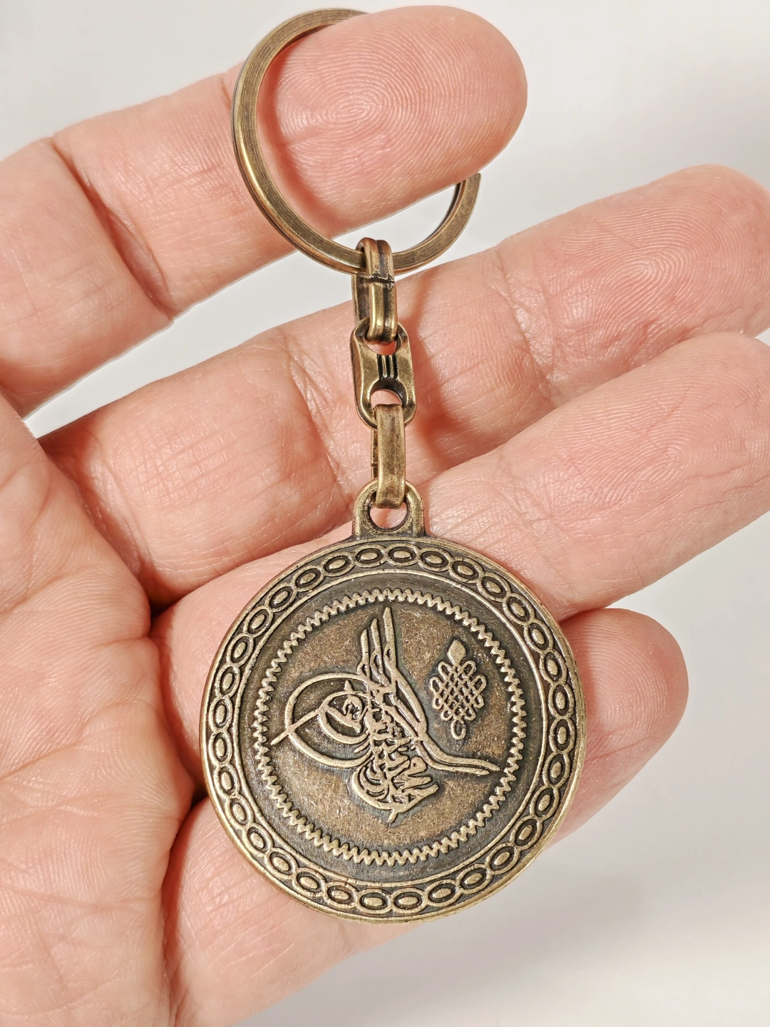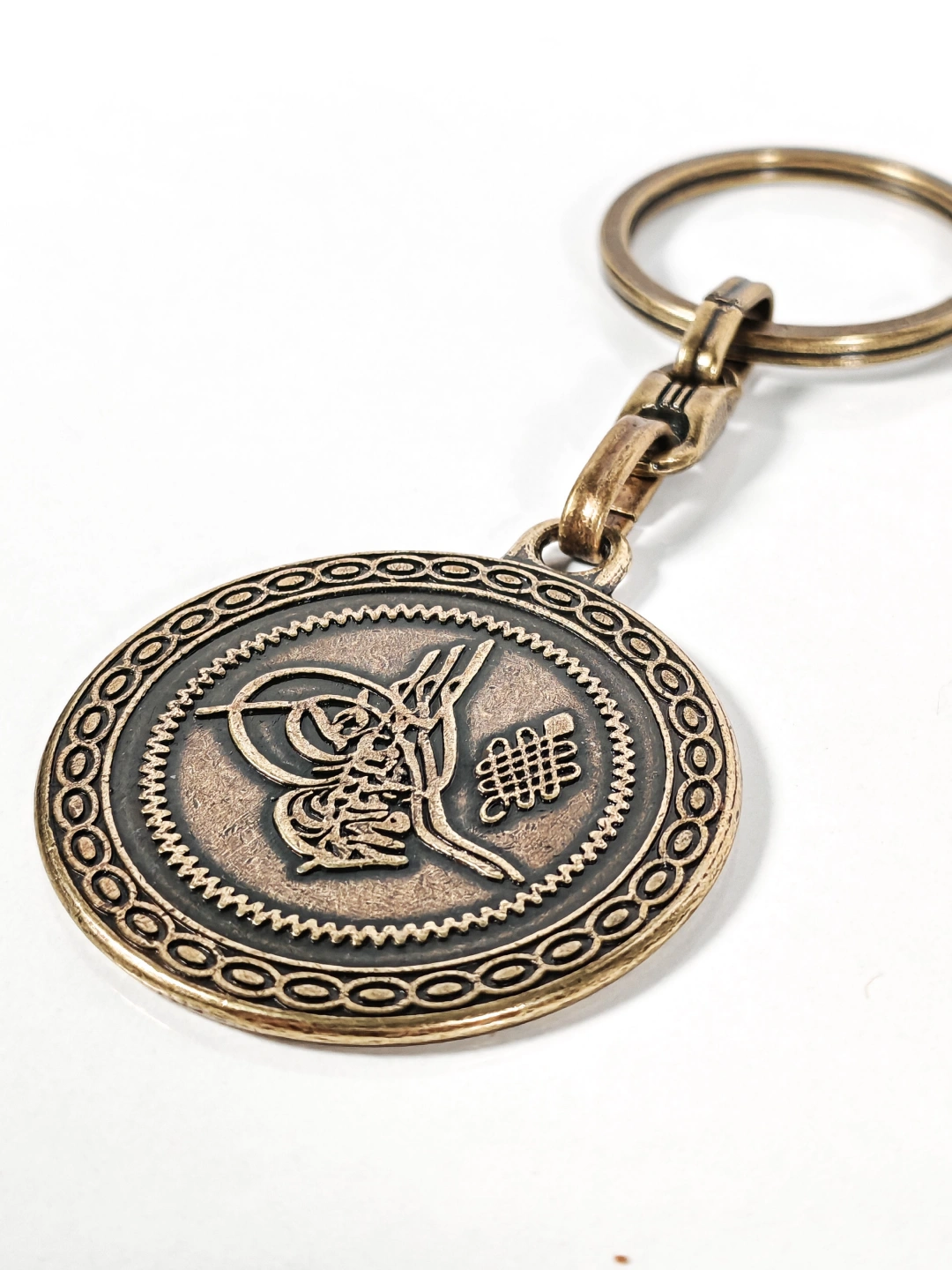 Antik Bronz Osmanlı Tuğralı Çift Yüzlü Metal Anahtarlık – Tarihi Asalet ve Manevi Anlamın Buluşması