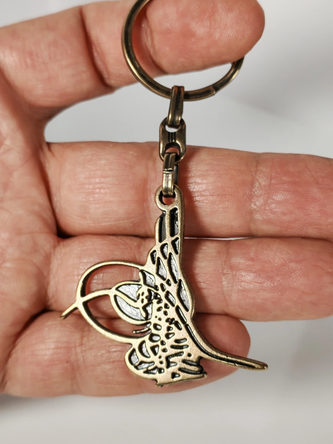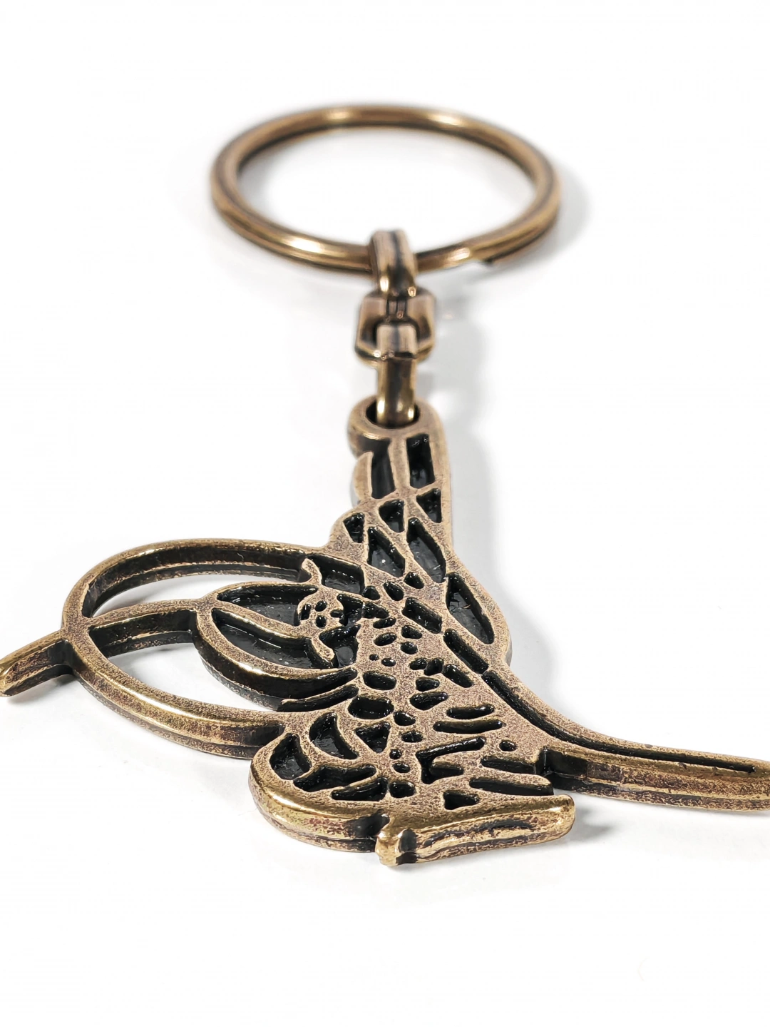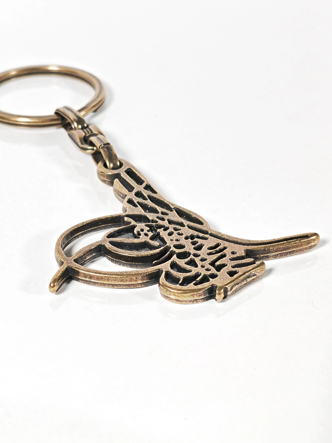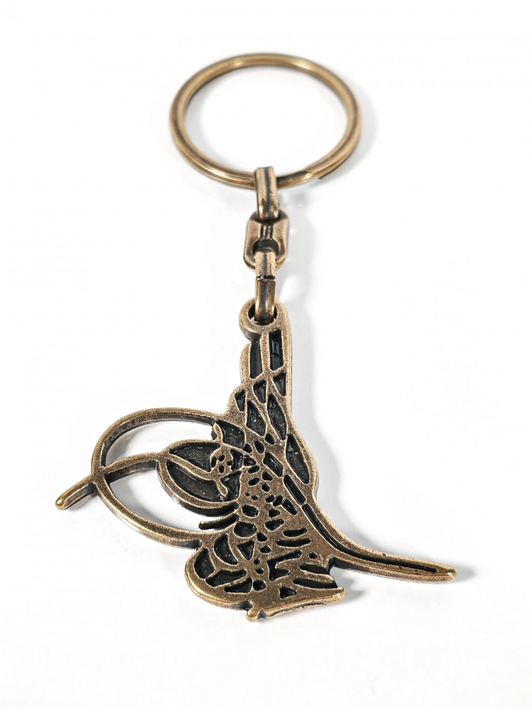 Antik Bronz Osmanlı Tuğrası Figürlü Metal Anahtarlık – Tarihi Asalet ve Manevi Derinlik