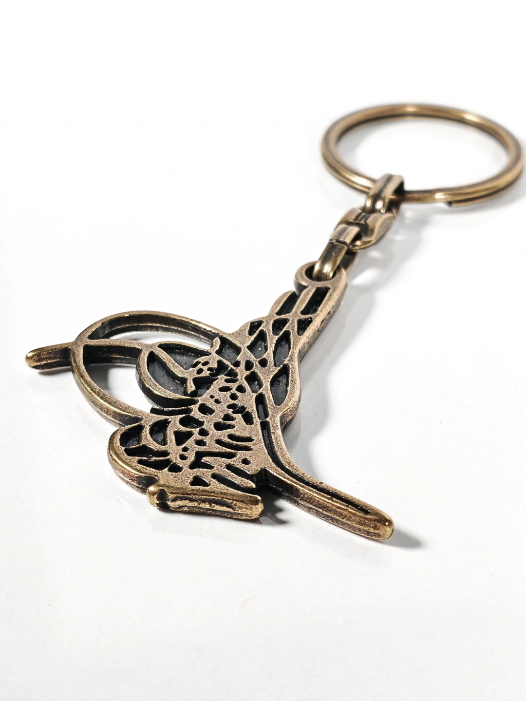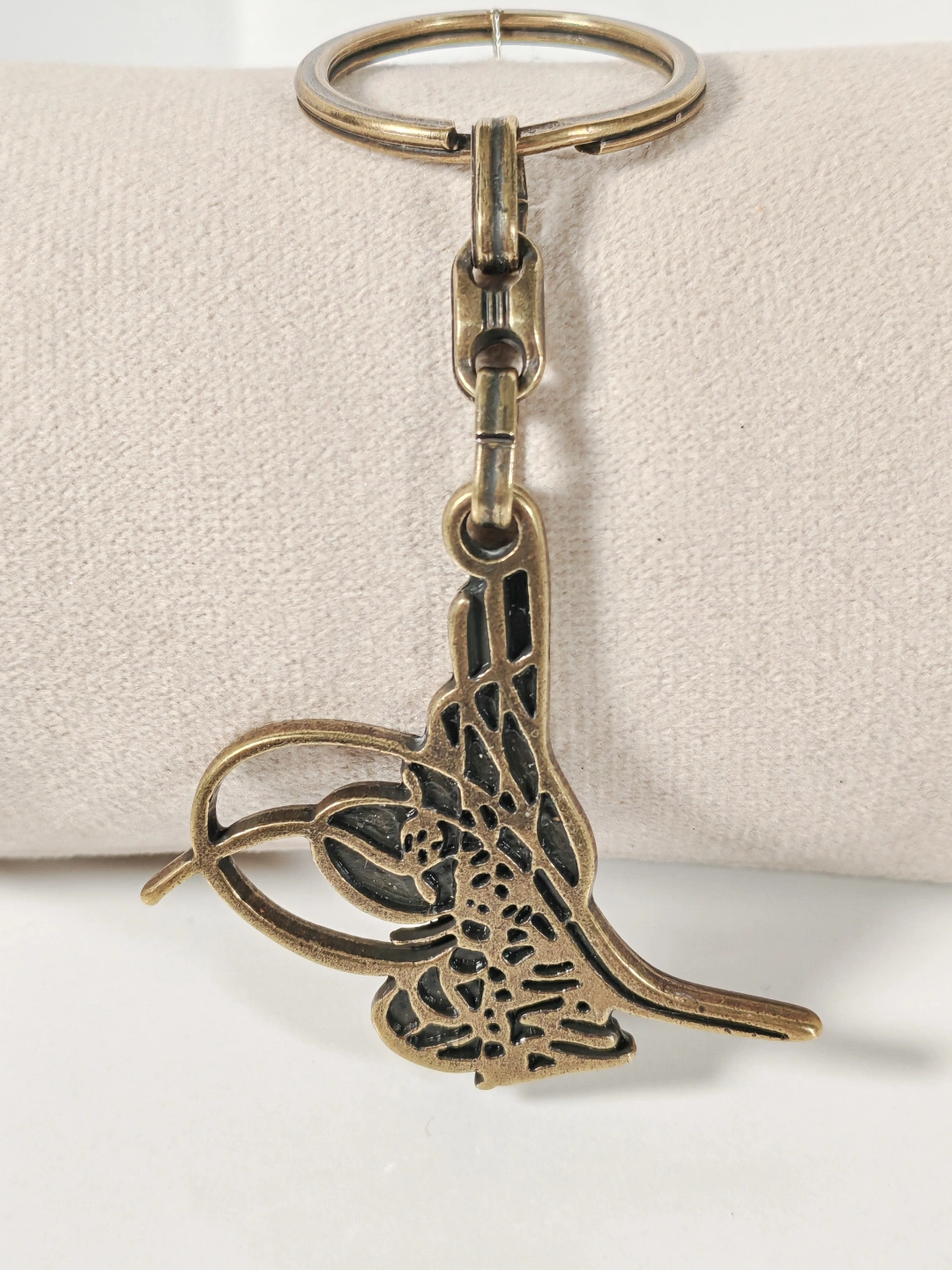 Antik bronz tonuyla tasarlanan Osmanlı tuğrası figürlü bu metal anahtarlık, tarih ve maneviyatı zarif bir formda taşımak isteyenler için özel olarak üretilmiştir. Açık formda işlenmiş tuğra detayı, Osmanlı’nın köklü devlet geleneğini ve estetik anlayışını yansıtırken anahtarlığa özgün ve karakterli bir görünüm kazandırır.