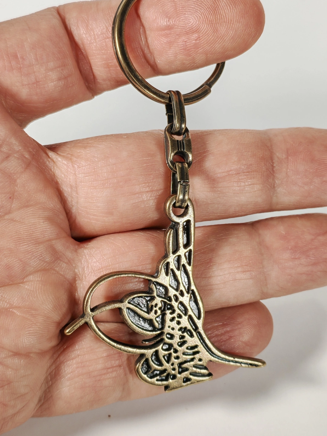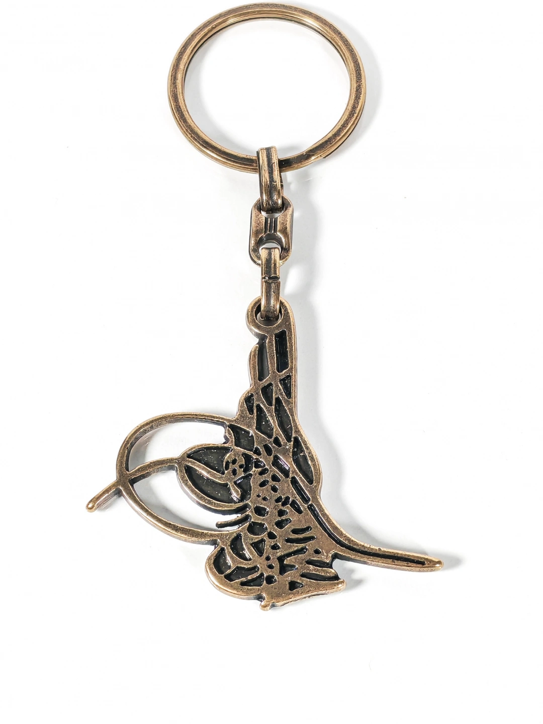 Dayanıklı metal malzemeden üretilmiştir. Eskitme antik bronz kaplaması sayesinde vintage bir stil sunar ve günlük kullanıma uygundur. İnce detaylı tuğra formu ve sağlam anahtarlık halkası, anahtarlarınızı güvenle taşımanızı sağlar. Dengeli yapısı sayesinde cepte veya çantada rahatlıkla kullanılabilir.