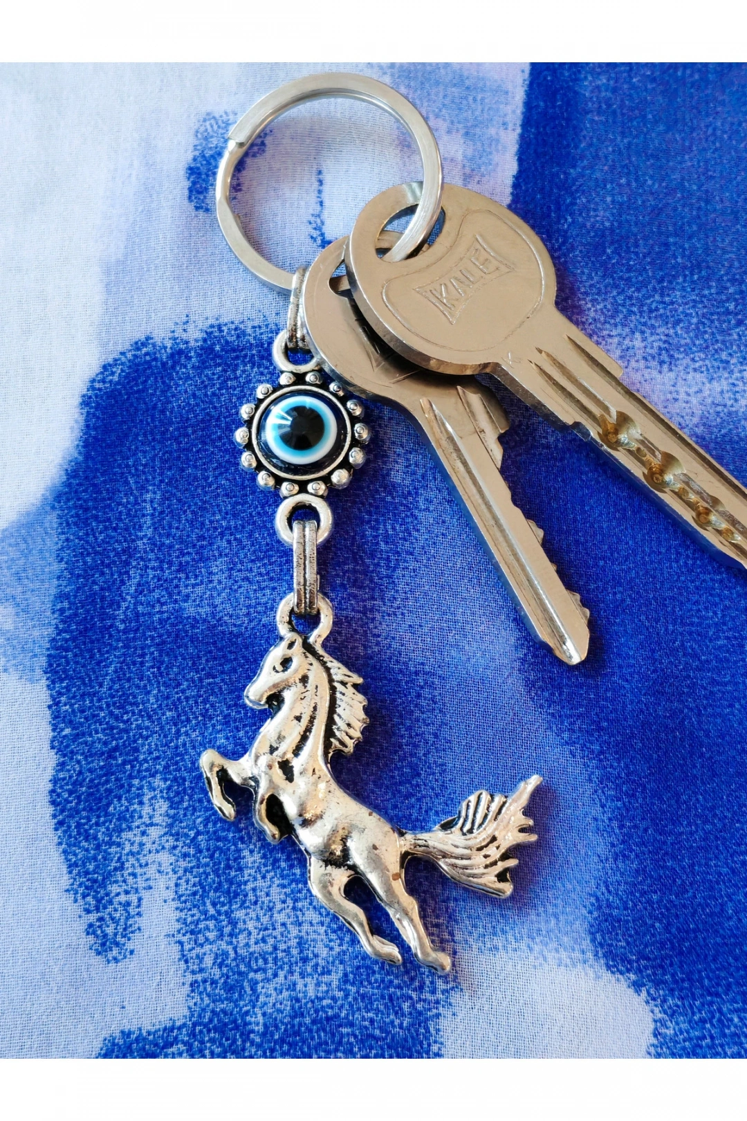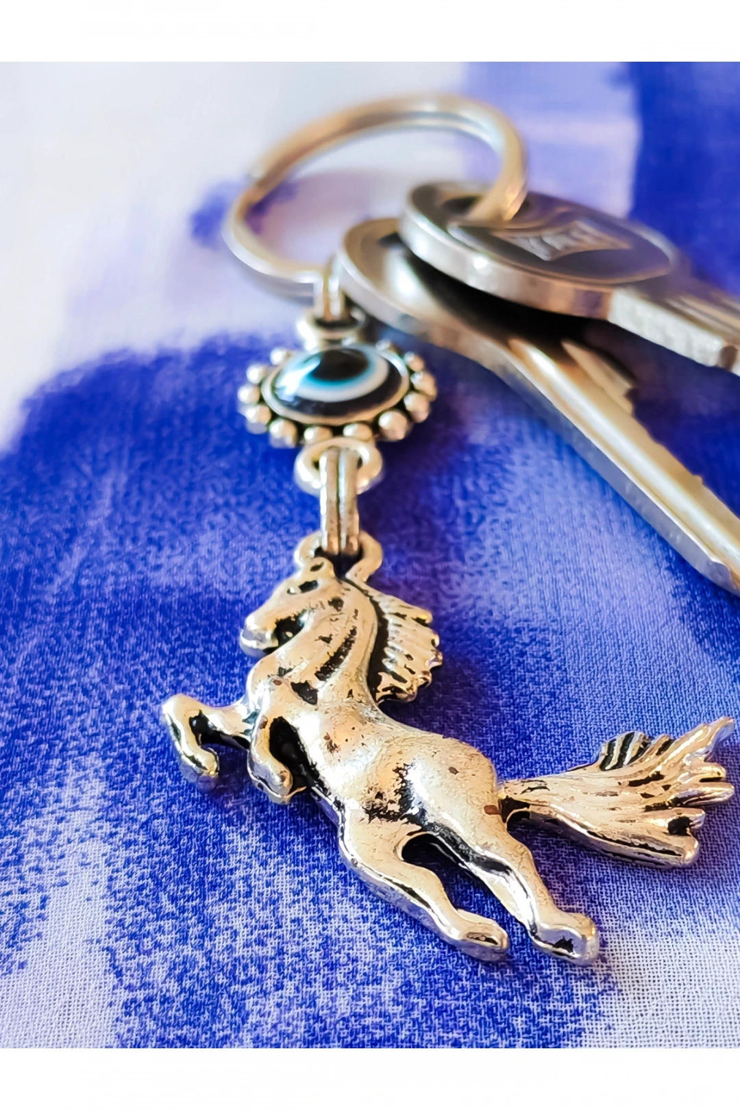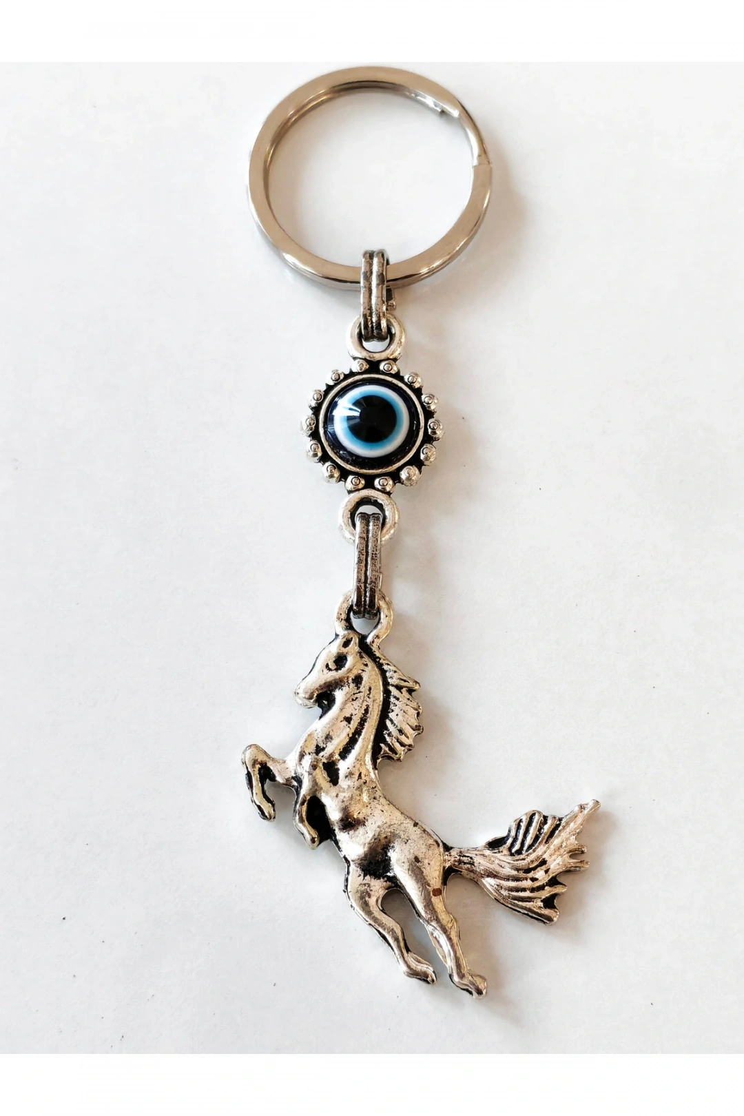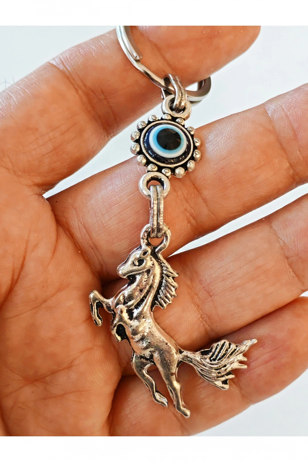 At Figürlü ve Nazar Boncuklu Metal Anahtarlık – Zarif ve Koruyucu Tasarım