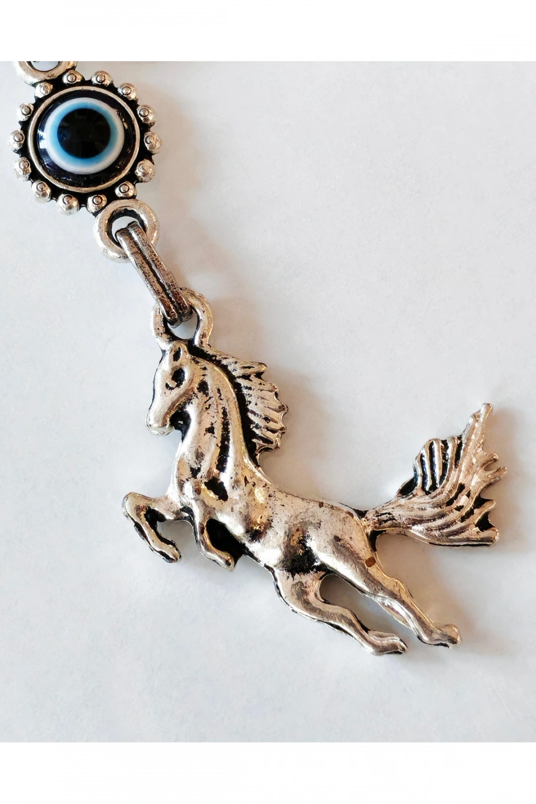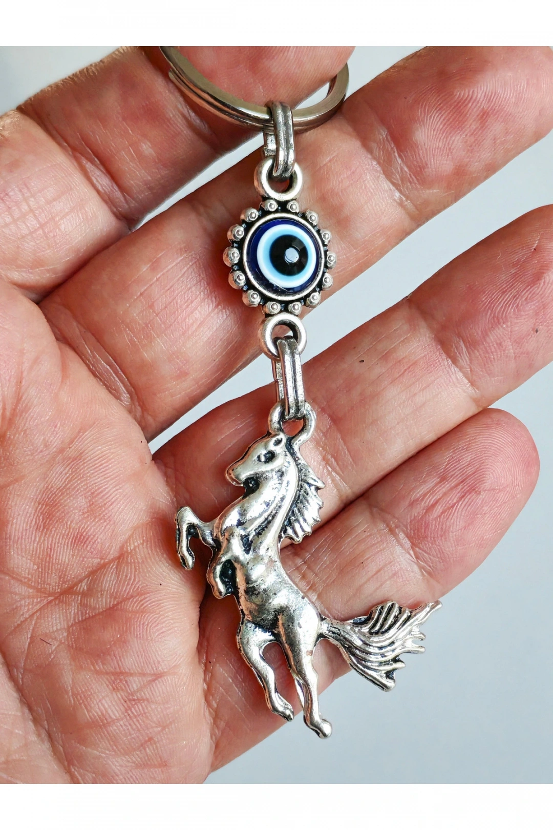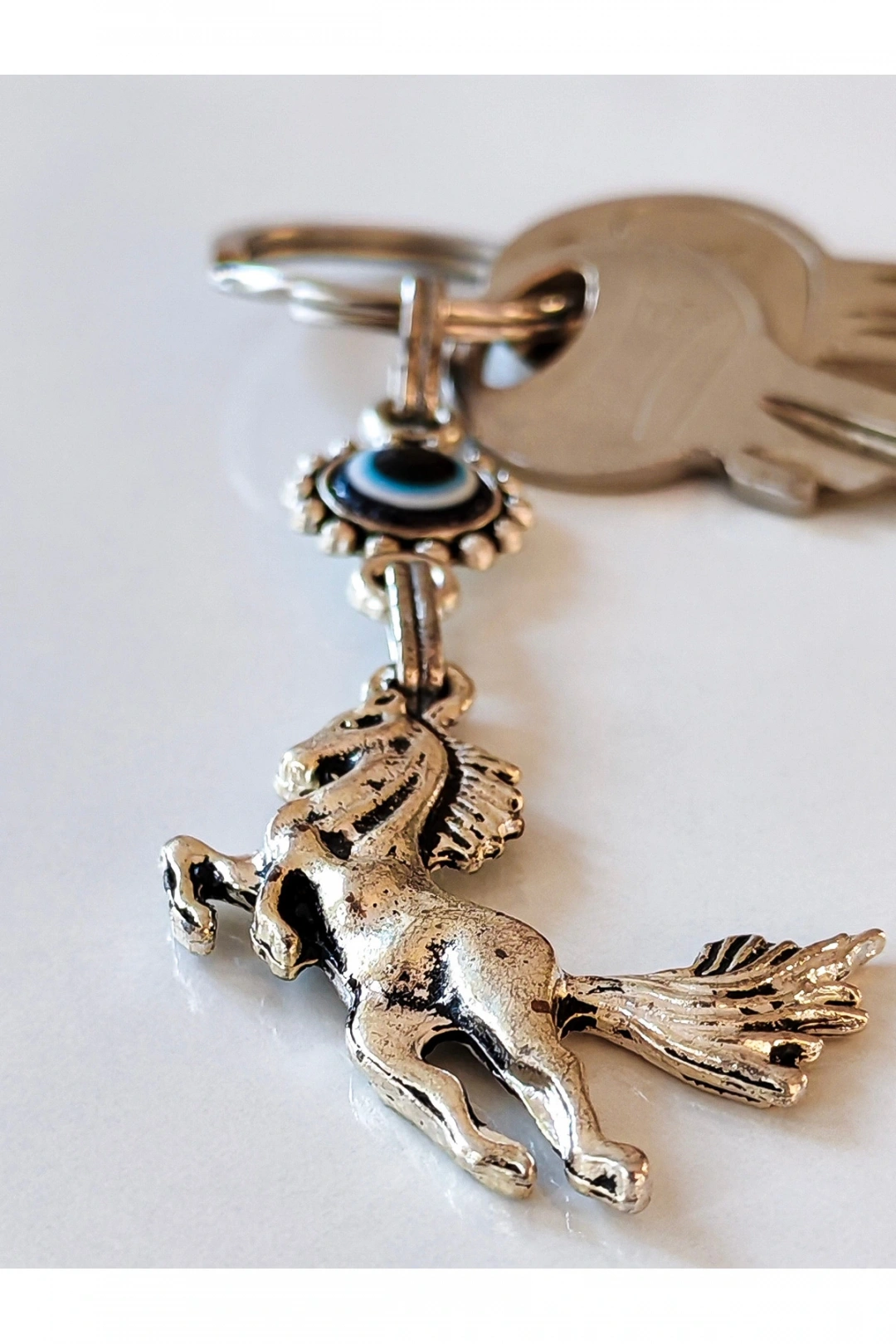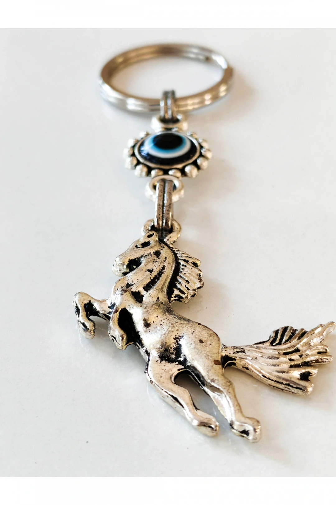 At Figürlü ve Nazar Boncuklu Metal Anahtarlık – Zarif ve Koruyucu Tasarım