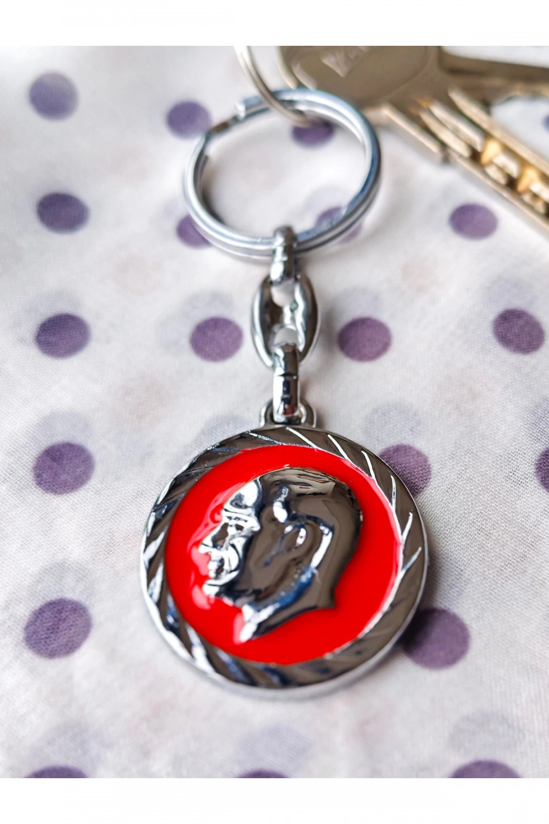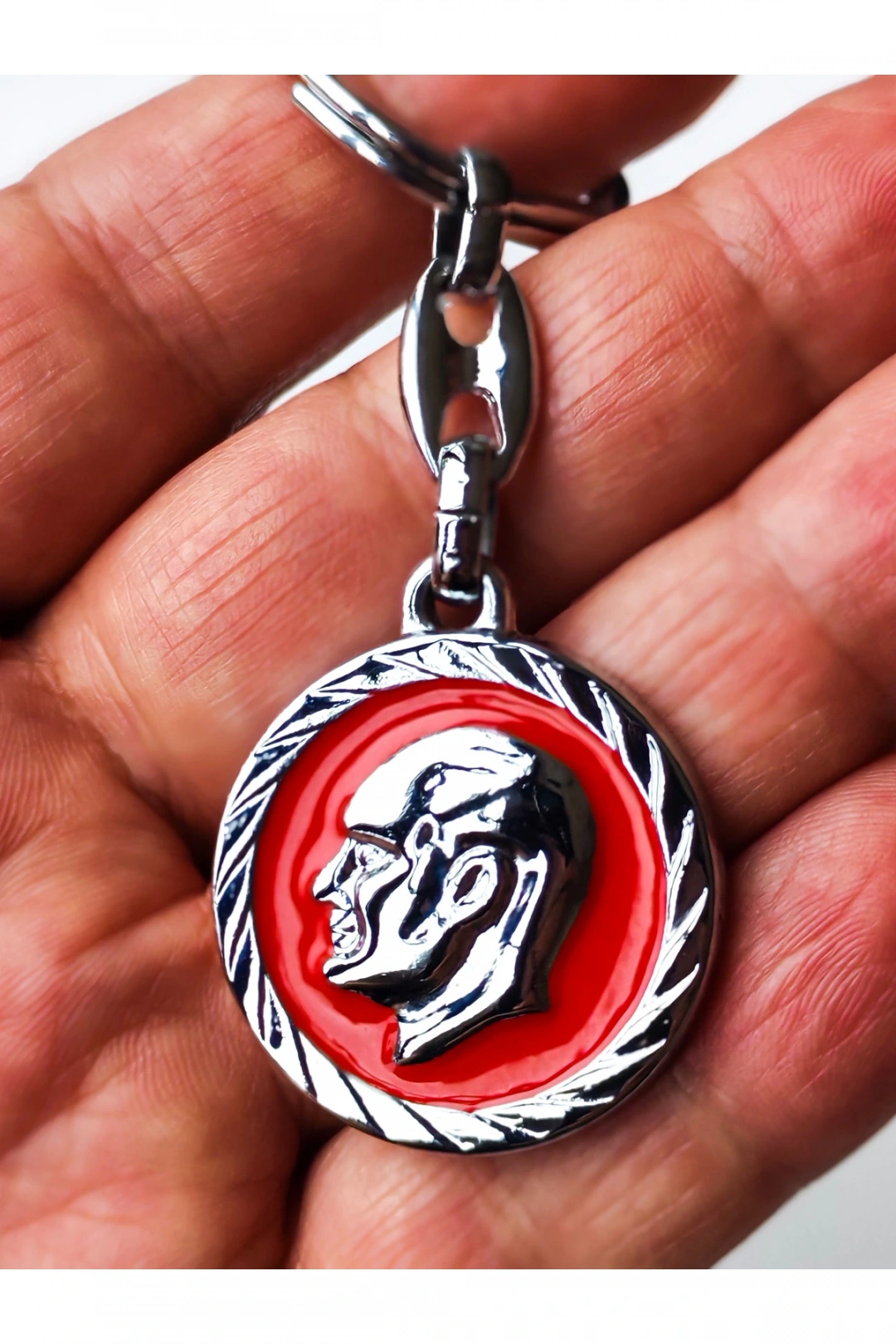 Atatürk Kabartmalı Kırmızı Metal Anahtarlık – Minnetle Taşınan Bir Değer