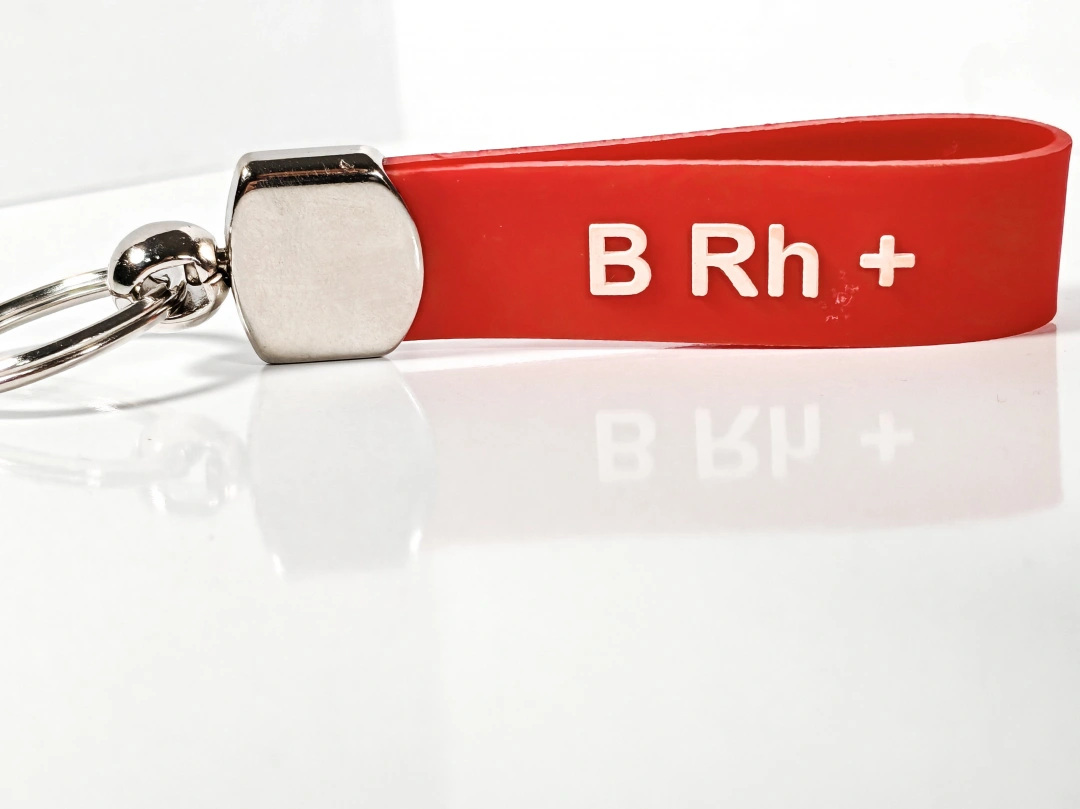 B Rh(+) Kan Grubu Silikon Anahtarlık – Acil Durumlar İçin Hayati Bilgi, Günlük Kullanımda Pratik Çözüm
