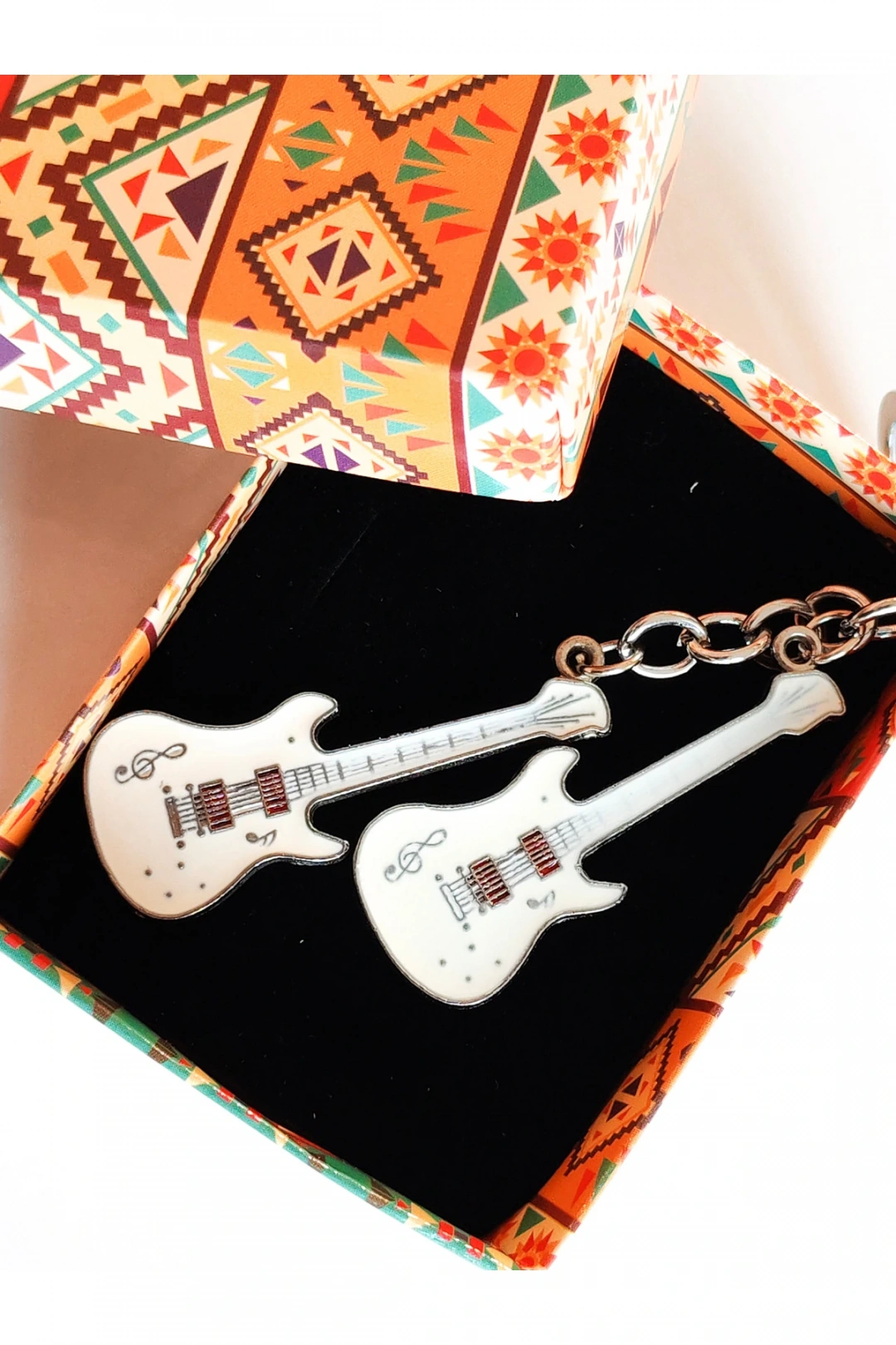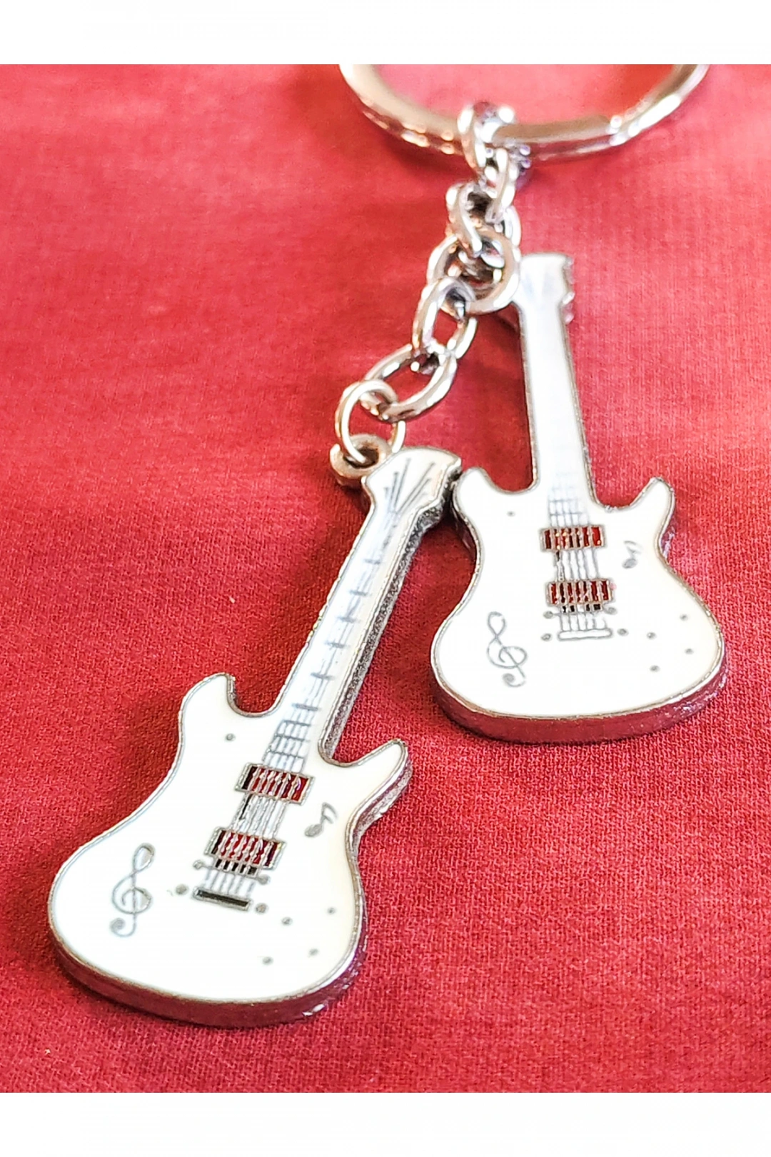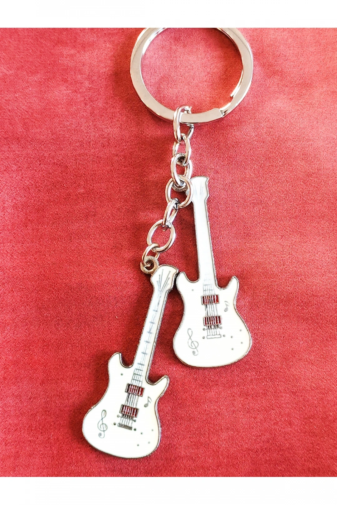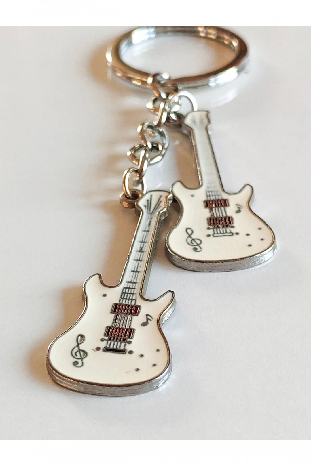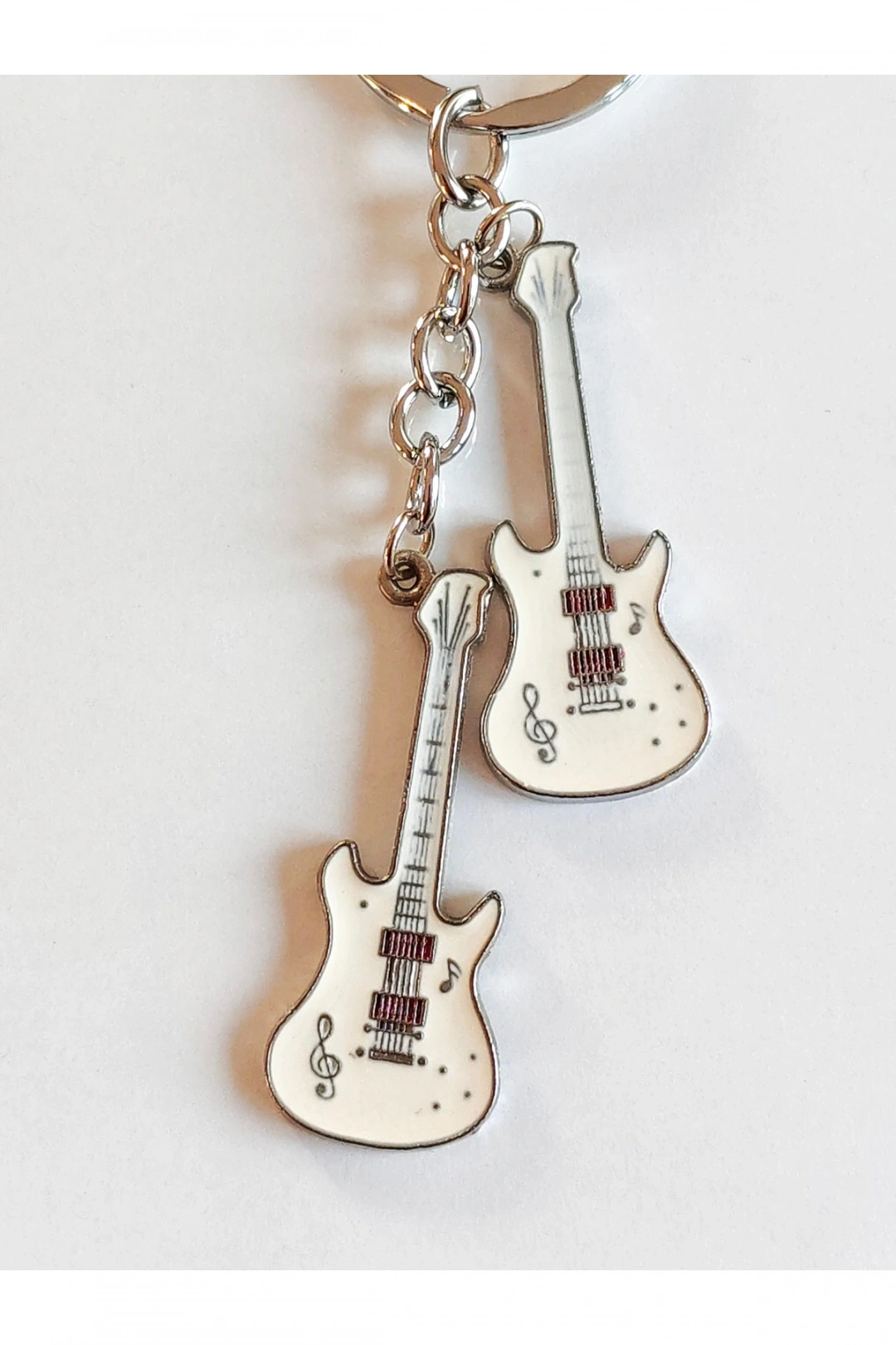 Beyaz İki Gitarlı Metal Anahtarlık – Müziğin Saf ve Zarif Dokunuşu