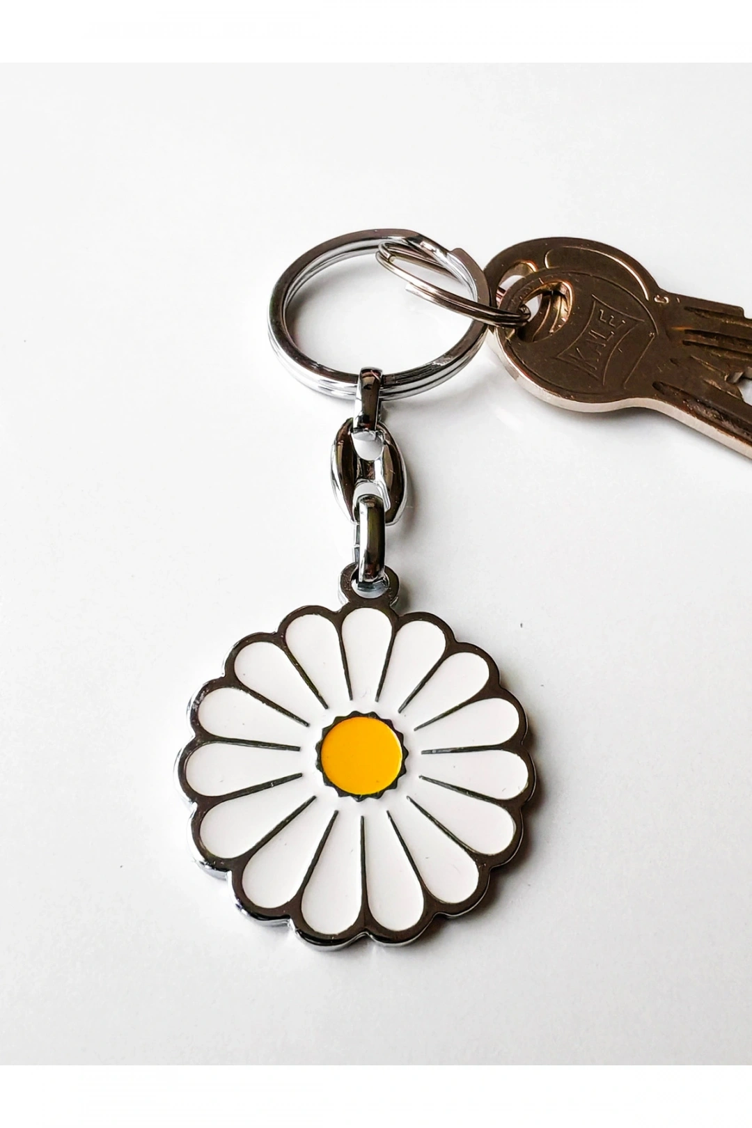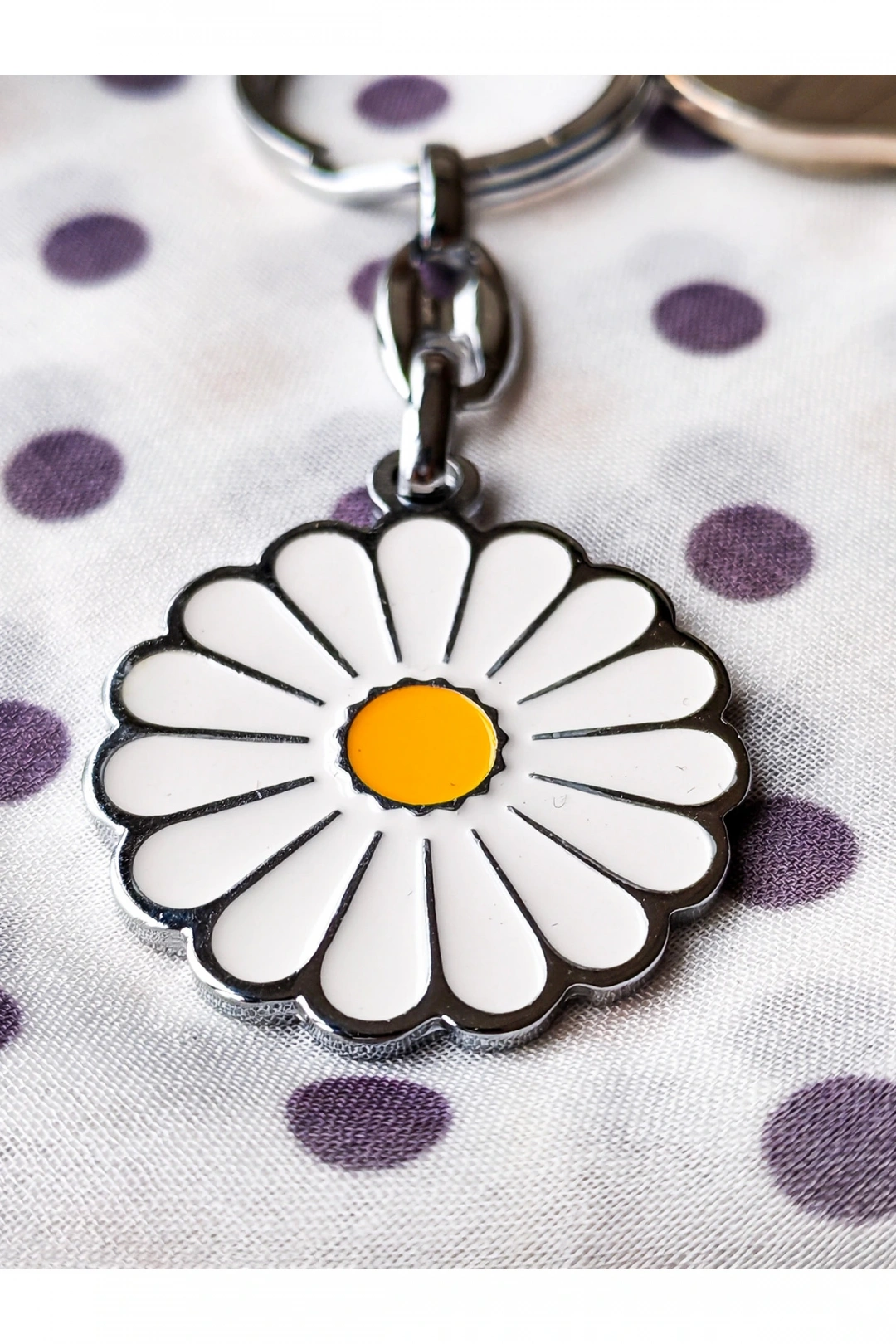 Beyaz Papatya metal anahtarlık ; Kaliteli ve hacimli; Aynı zamanda harika bir hediye olarak düşünülebilir ;