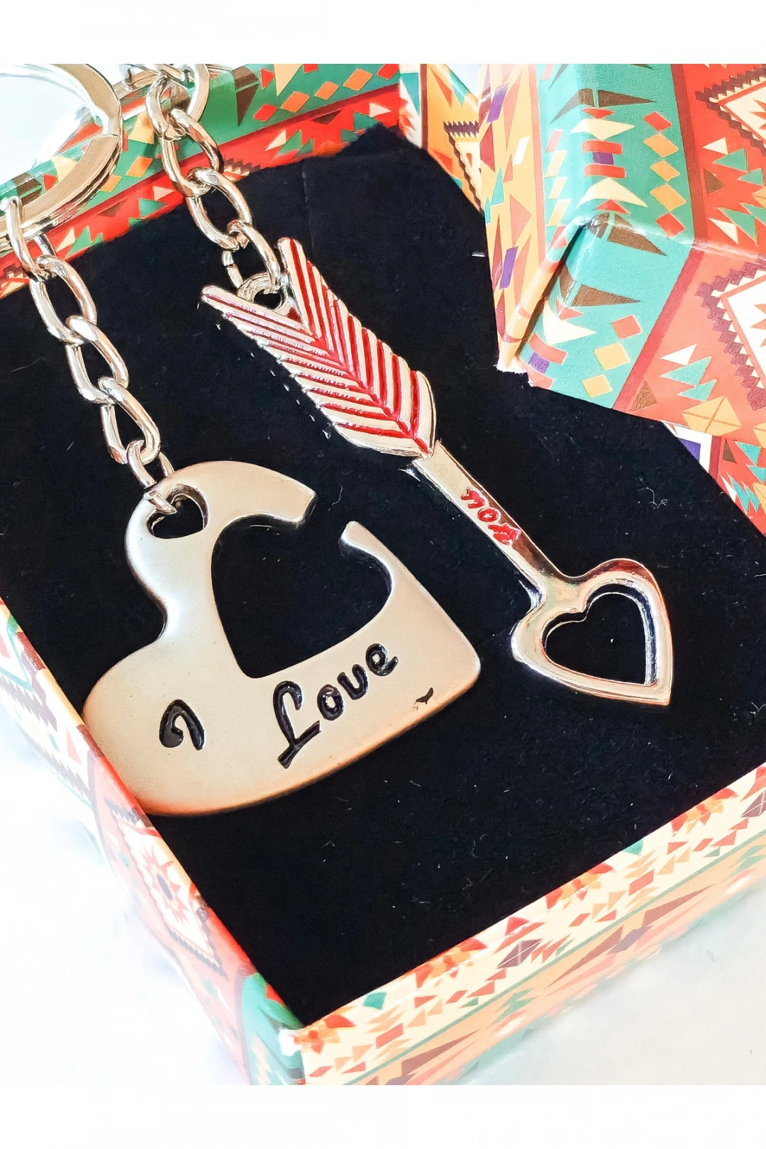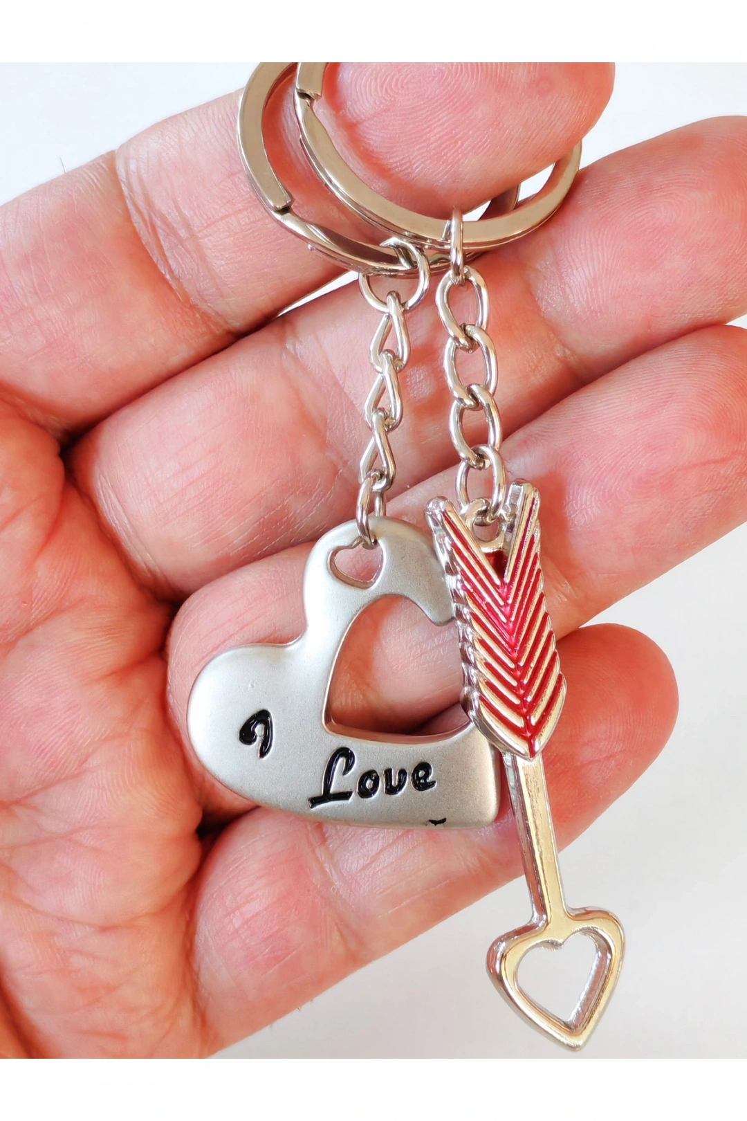 Çiftler İçin Kalp ve Ok İkili Metal Anahtarlık – Aşkı Simgeleyen İkili