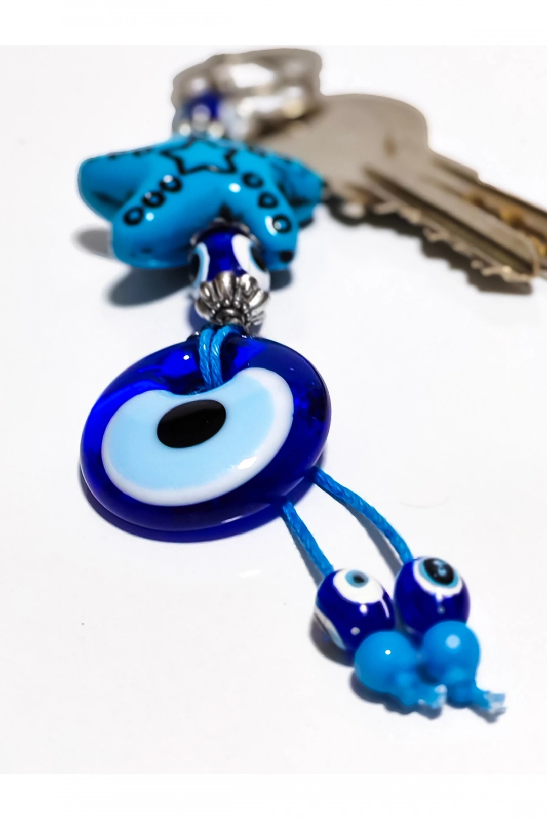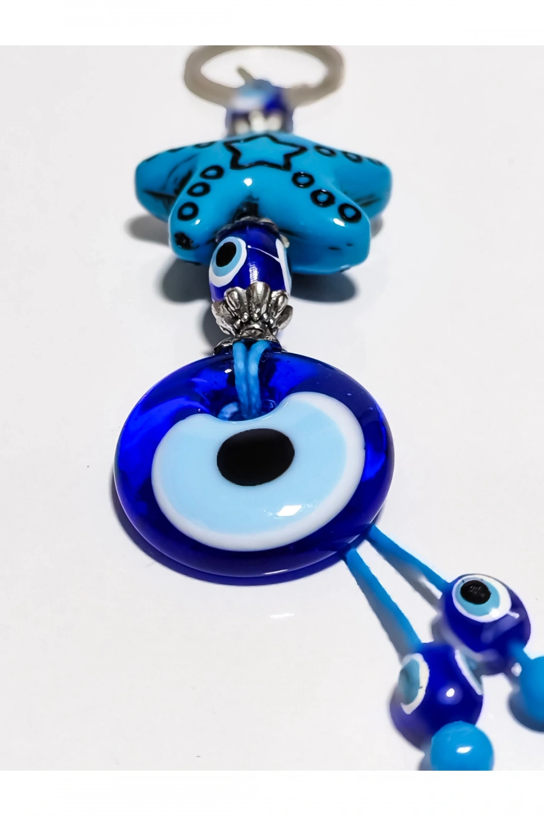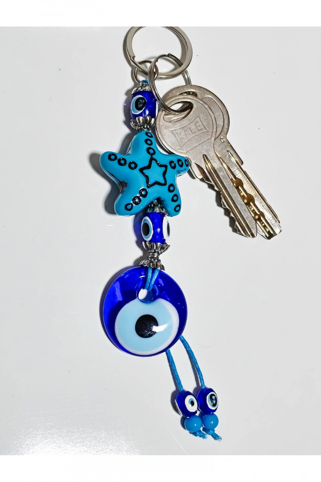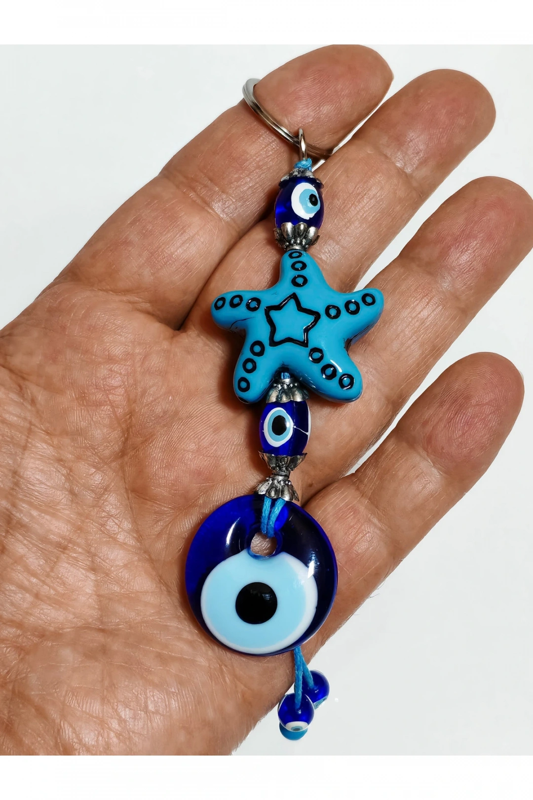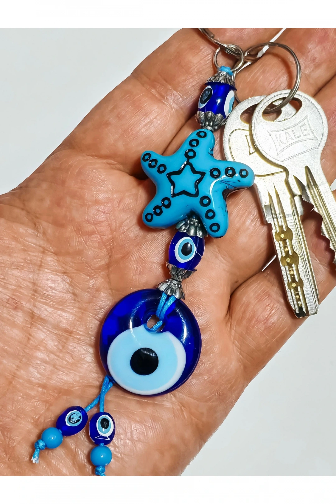 Deniz Yıldızlı Cam Nazar Boncuklu Anahtarlık – Şans, Zarafet ve Deniz Esintisi Bir Arada