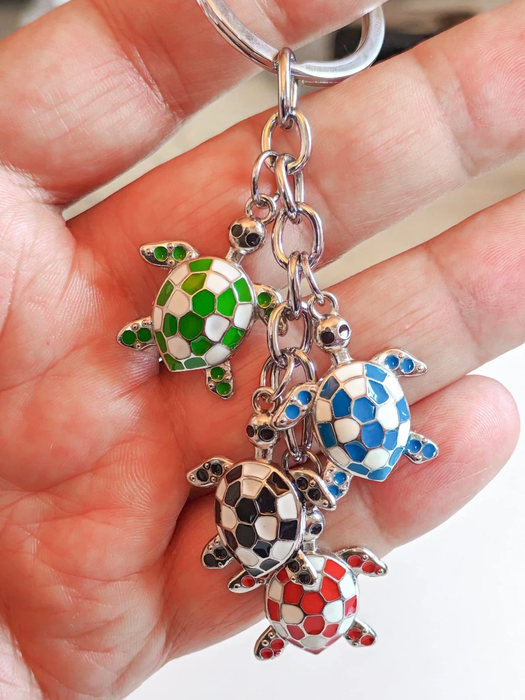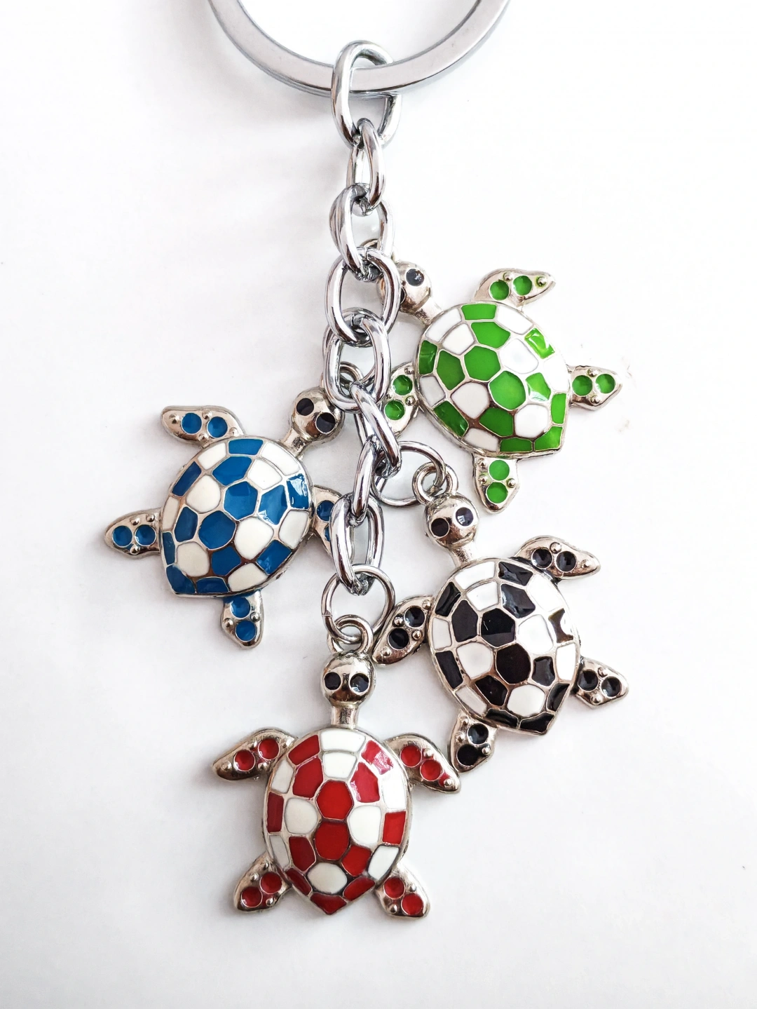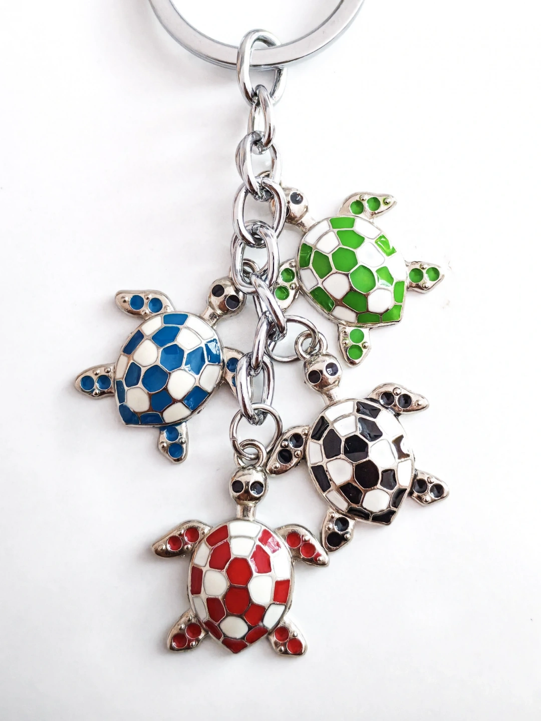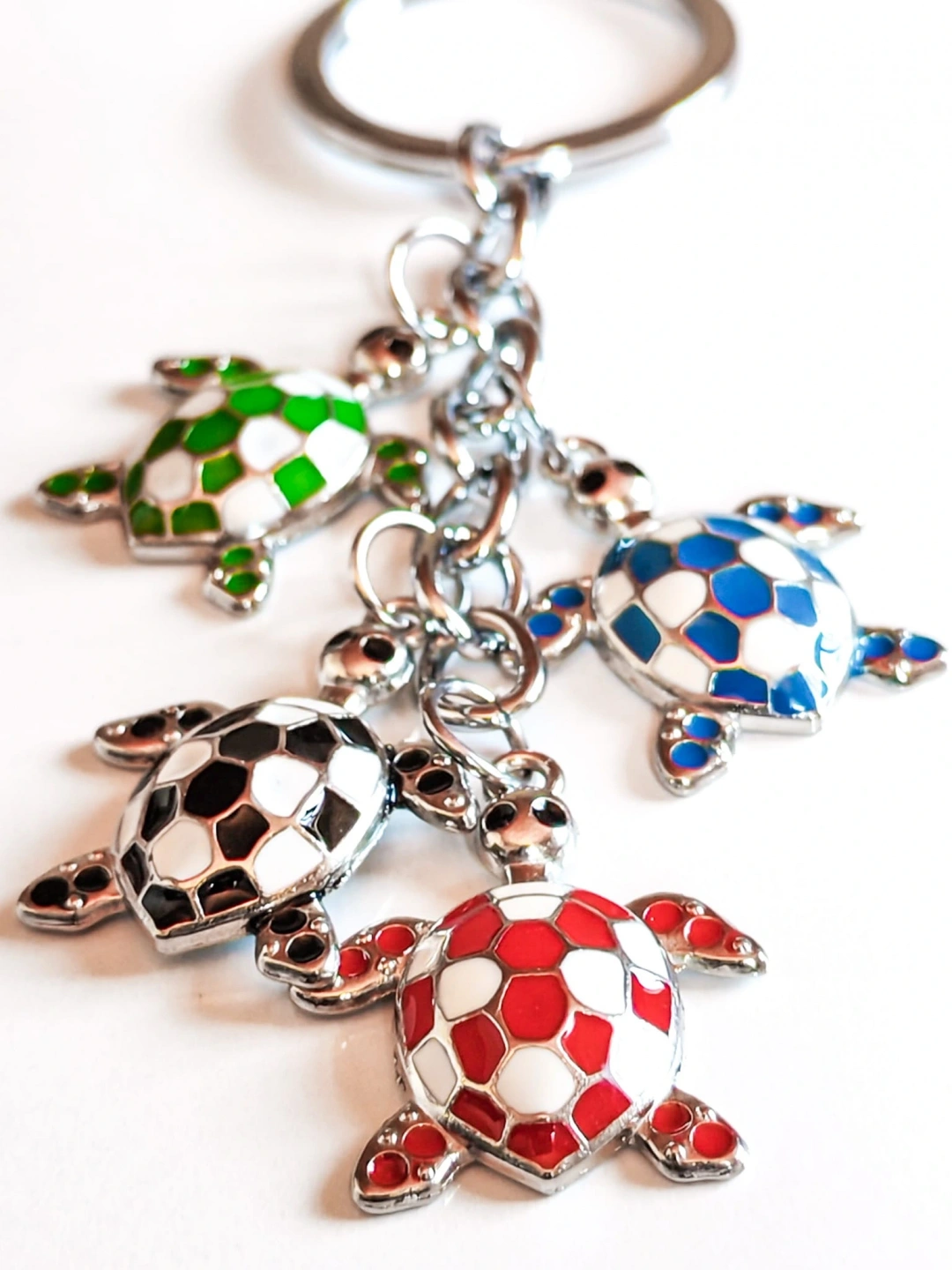 Farklı Renklerde Zincirli Kaplumbağalardan Oluşan Metal Anahtarlık – Renkli ve Sevimli Tasarım