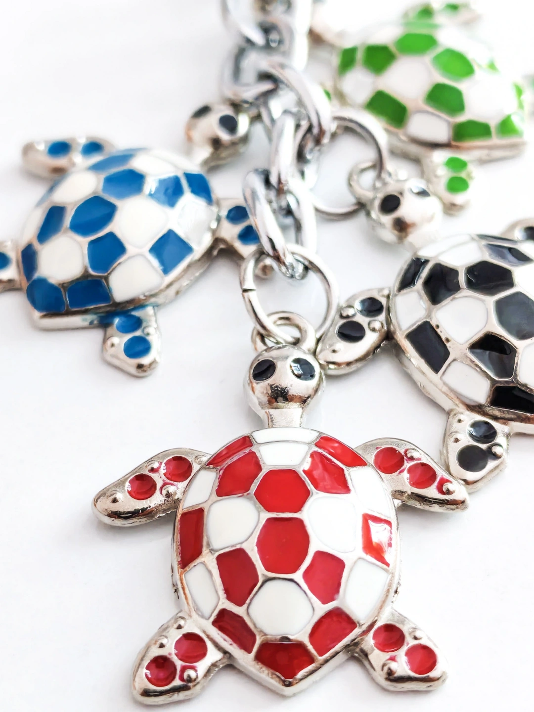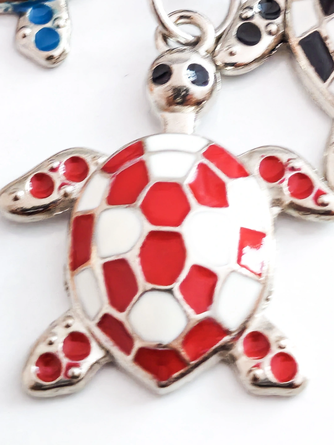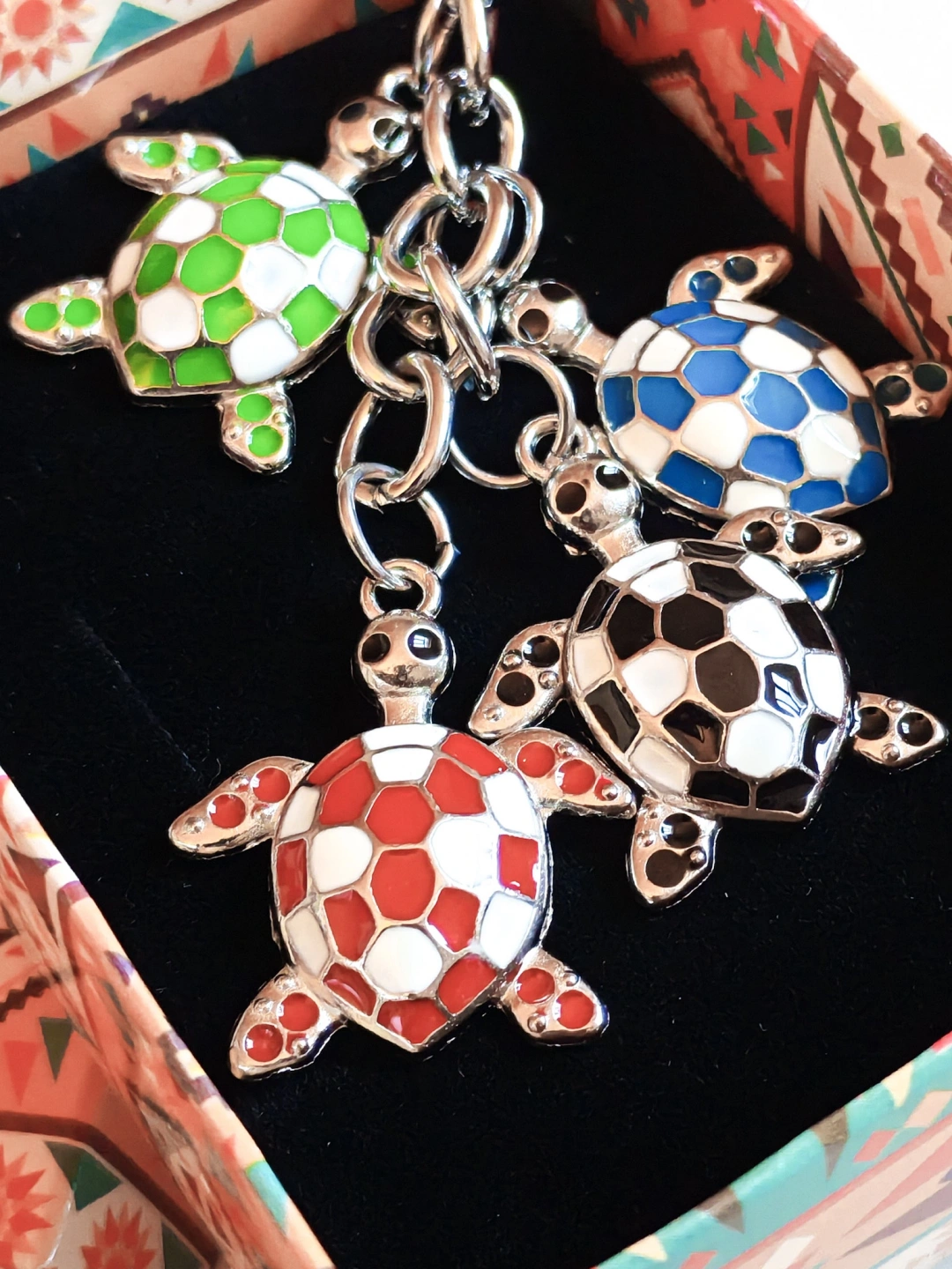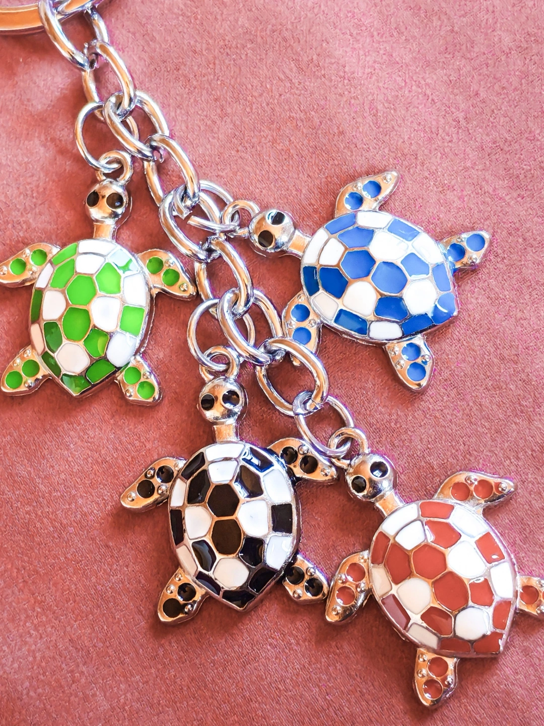 Farklı Renklerde Zincirli Kaplumbağalardan Oluşan Metal Anahtarlık – Renkli ve Sevimli Tasarım