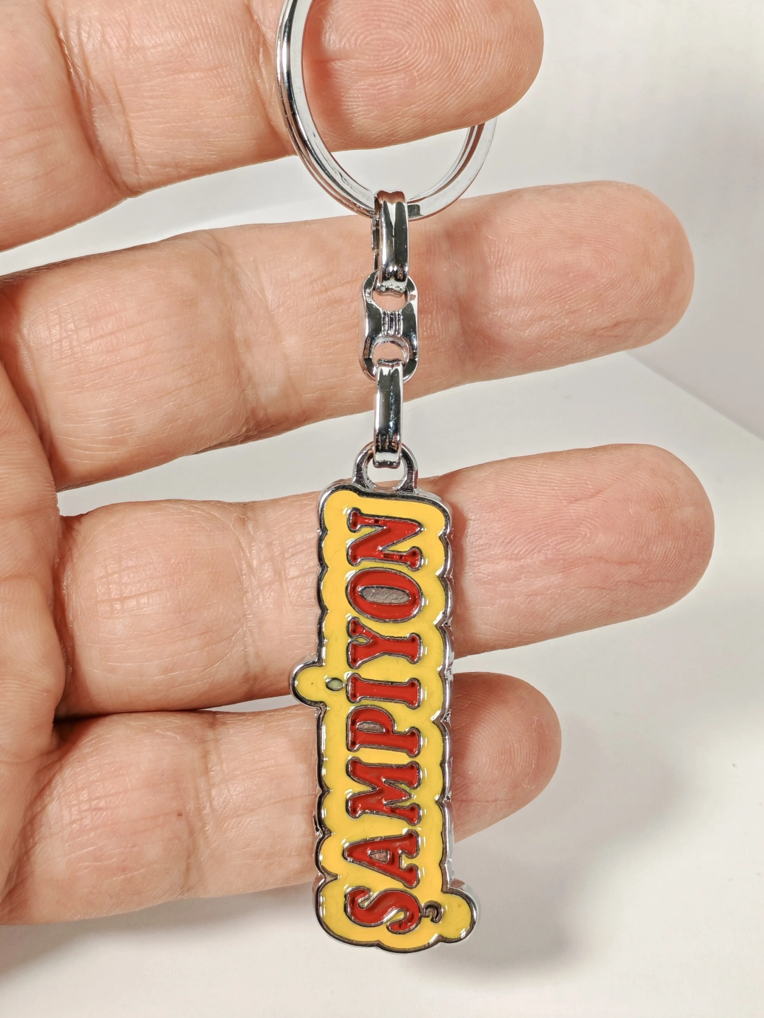 Dikkat çekici sarı zemin üzerine kırmızı Şampiyon yazısıyla tasarlanan bu anahtarlık, enerjik ve iddialı tarzı sevenler için özel olarak hazırlanmıştır. Eğlenceli formu ve canlı renk kontrastı sayesinde anahtarlarınız arasında kolayca fark edilir, güçlü ve pozitif bir mesaj taşır.