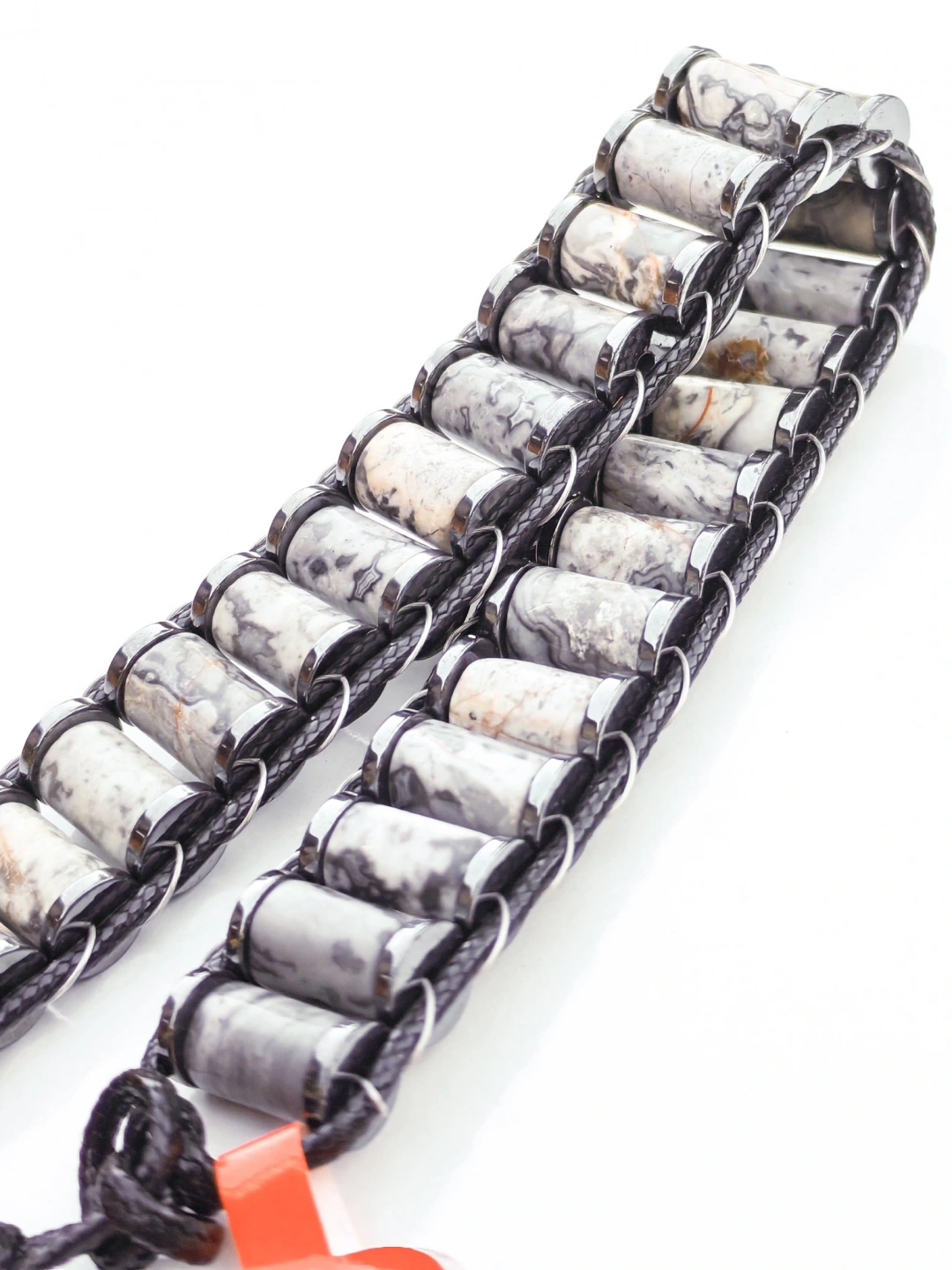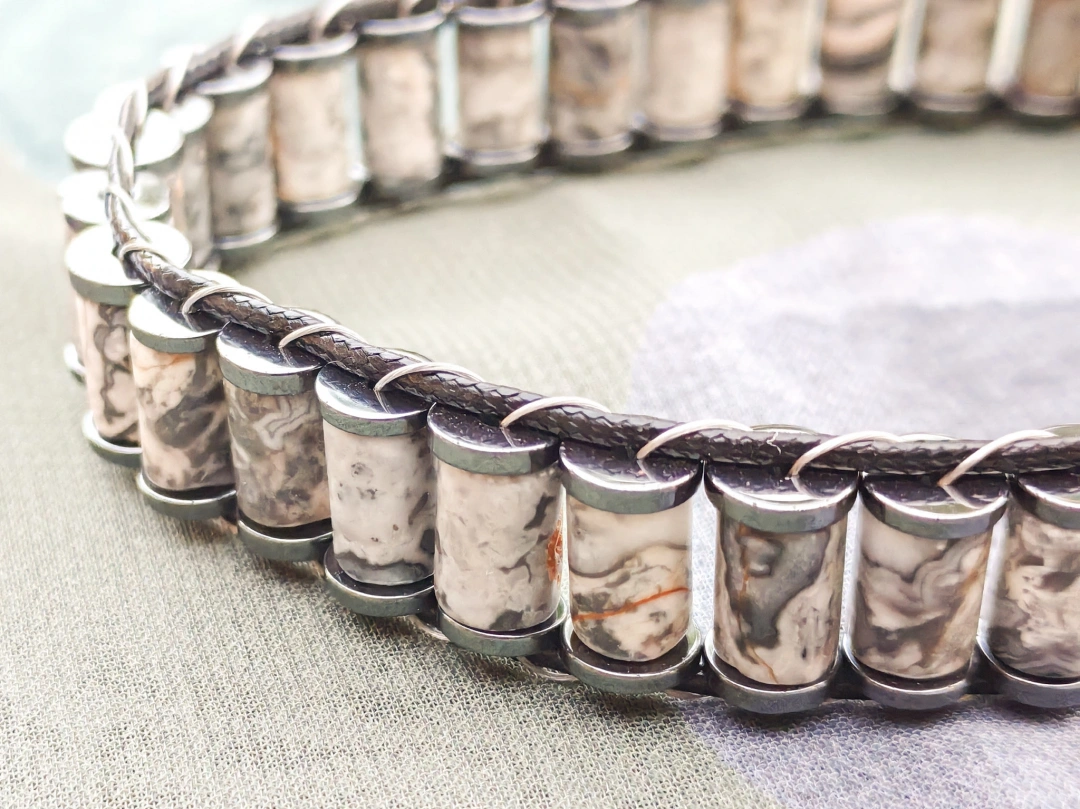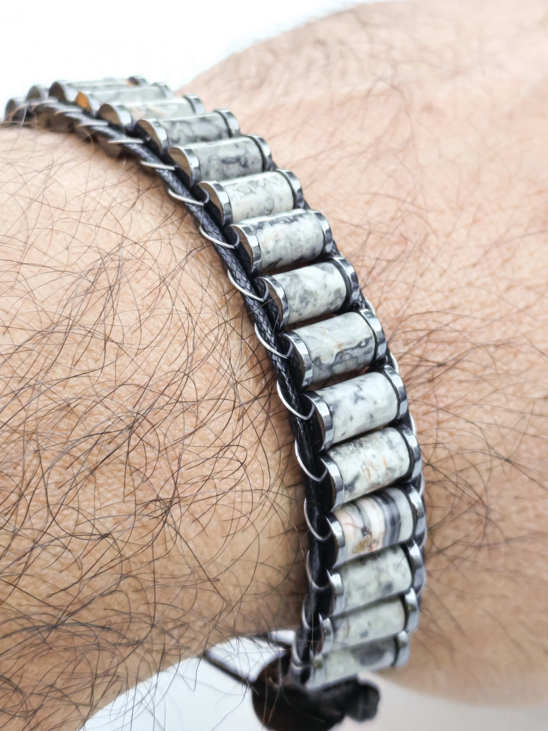 Gri Jespar Doğal Taş Örme Erkek Bilekliği – Doğallığın Şıklıkla Buluştuğu Maskülen Tasarım