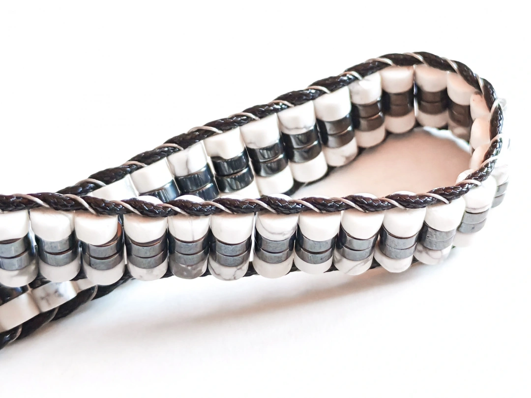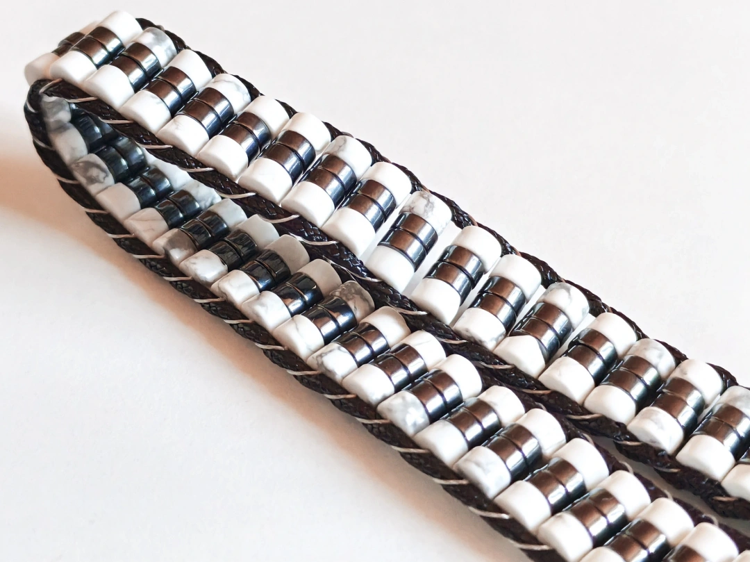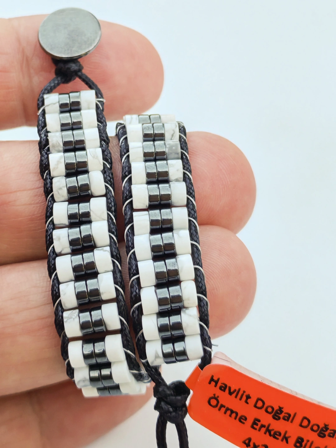 Havlit Siyah ve Beyaz Doğal Taş Örme Erkek Bilekliği – Kontrastın Gücüyle Şık ve Doğal Bir Stil