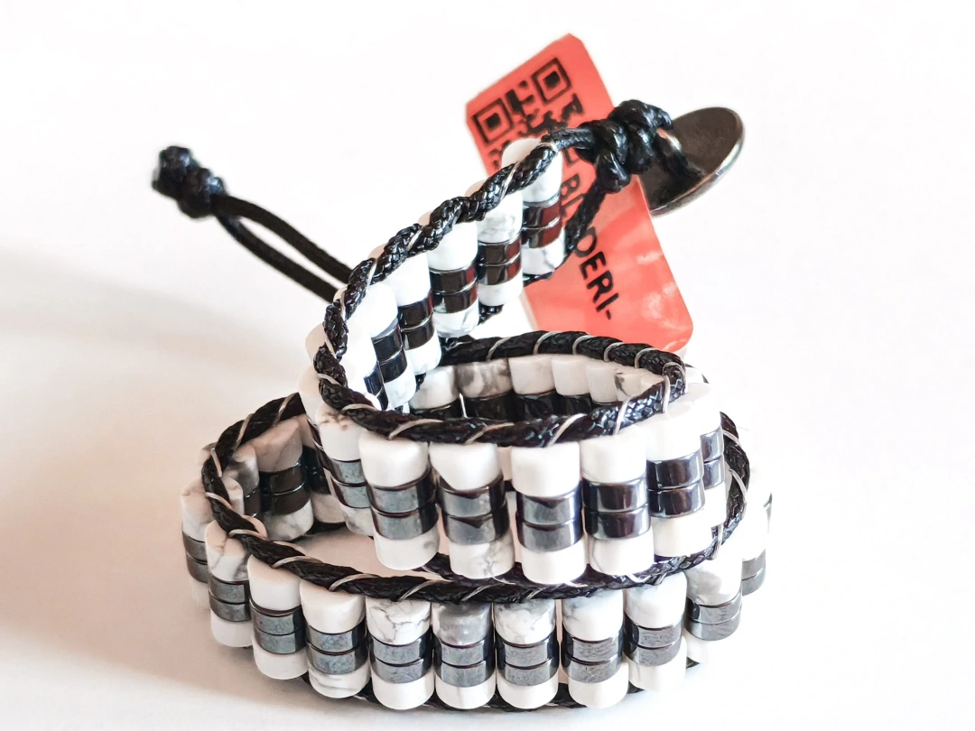 Siyah ve beyazın zamansız kontrastını doğal taşların özel dokusuyla buluşturan Havlit Siyah ve Beyaz Doğal Taş Örme Erkek Bilekliği, sade ama dikkat çekici bir tarz arayan erkekler için mükemmel bir aksesuardır. Havlit taşlarının doğal desenleri ve mat dokusu, bileklikte hem modern hem de dengeli bir görünüm oluşturur. Siyah-beyaz uyumu ise her stile rahatça adapte olabilen güçlü bir şıklık sunar.