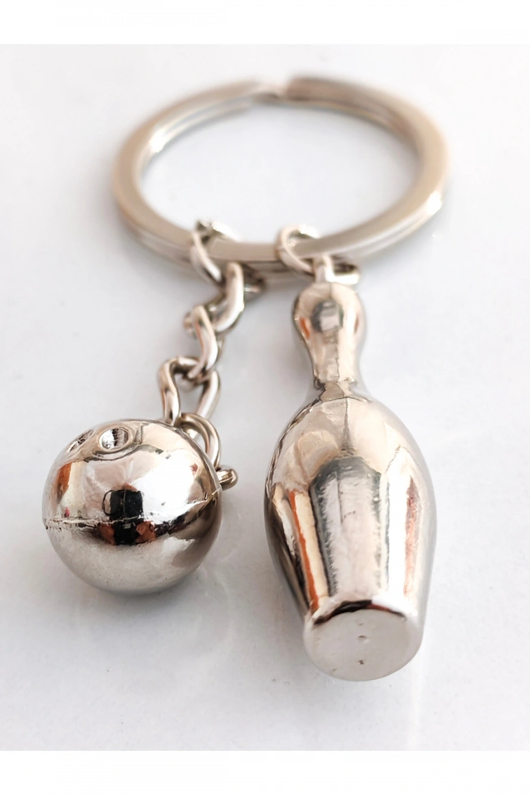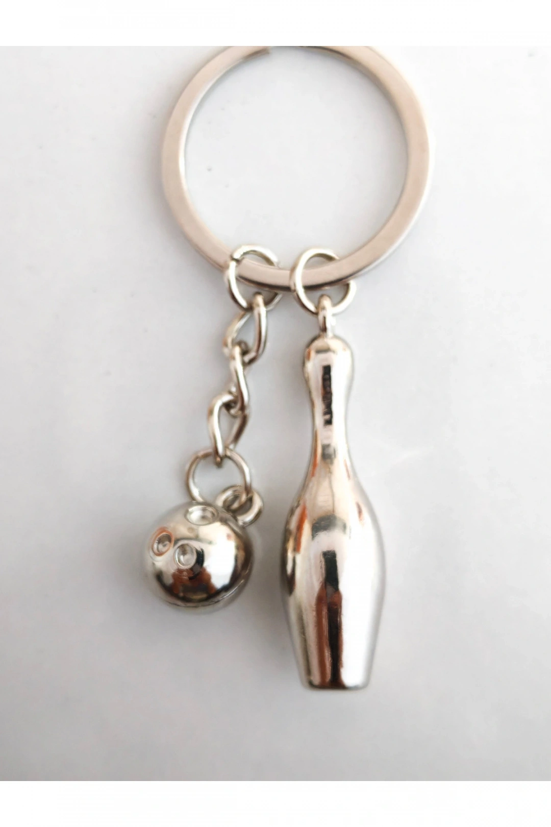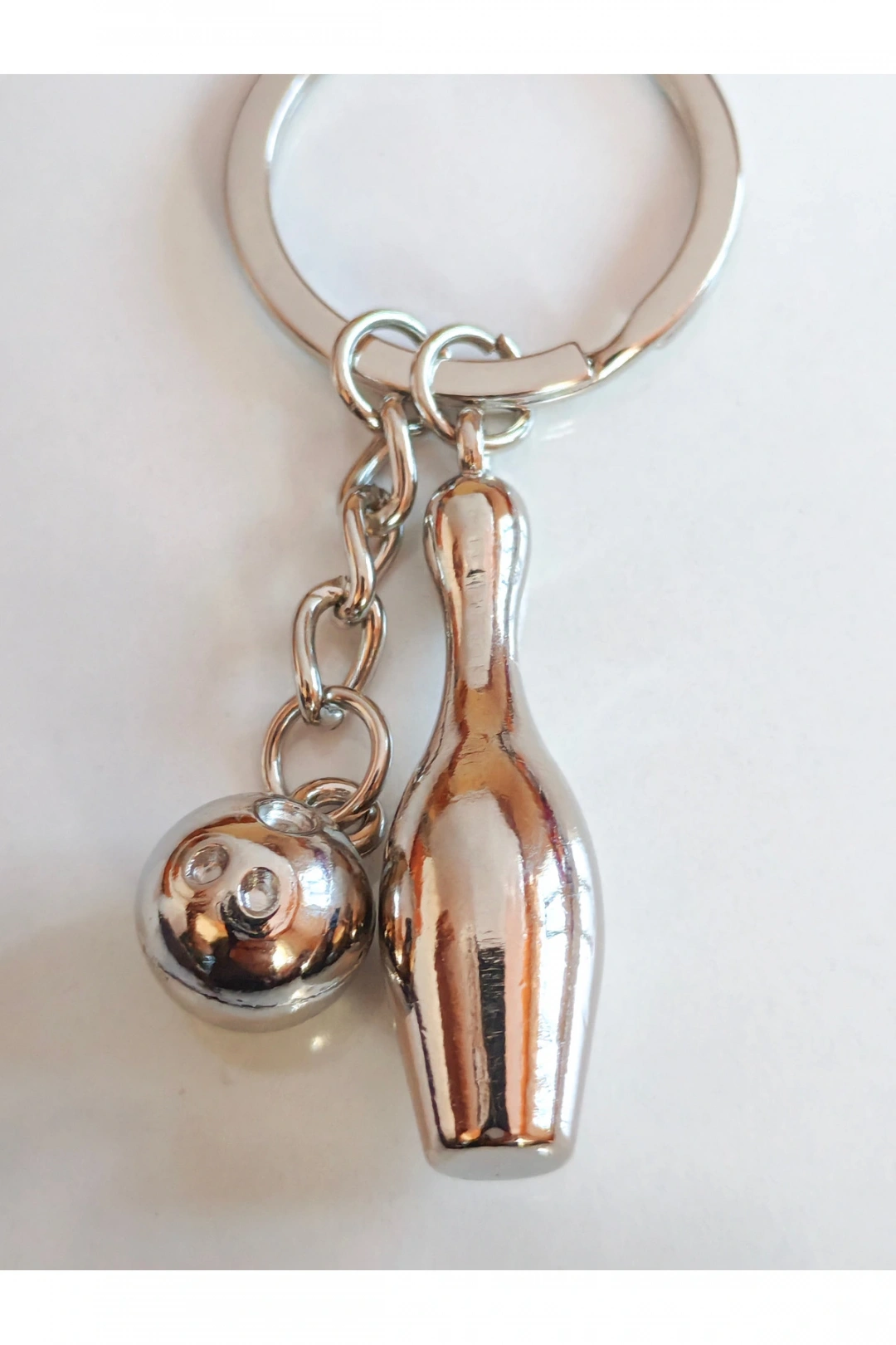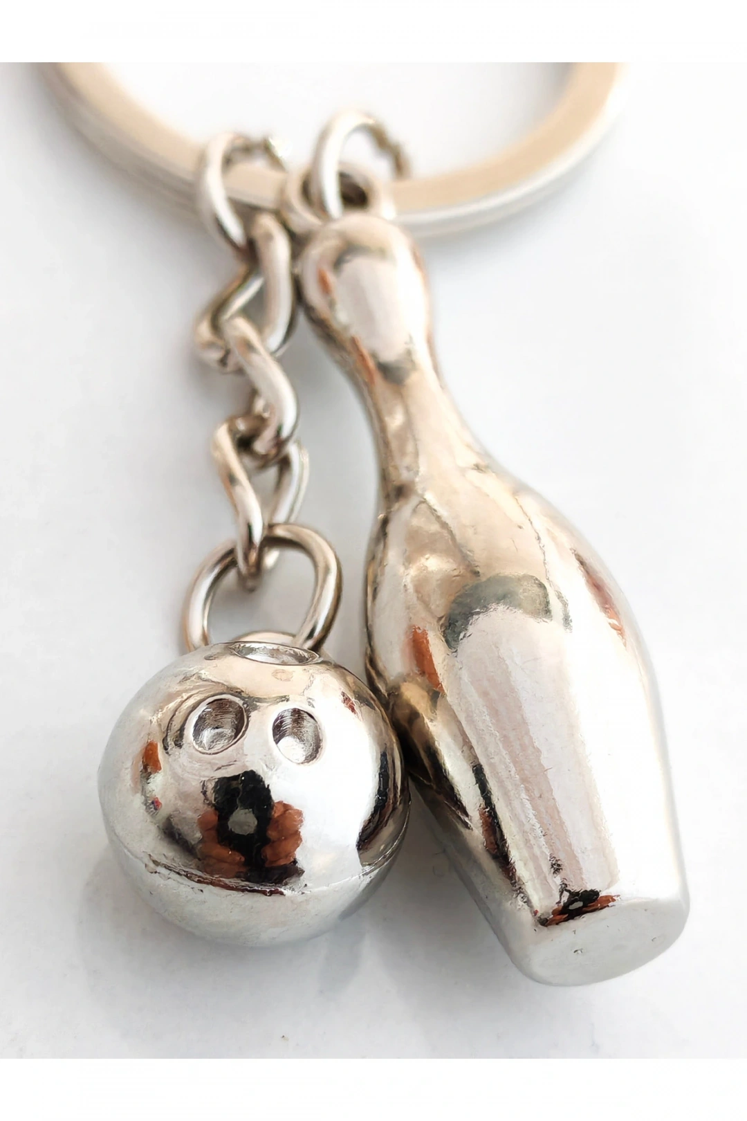 Gümüş Renkli Bowling Topu ve Labut Metal Anahtarlık – Spor Tutkunlarına Özel Şık Aksesuar