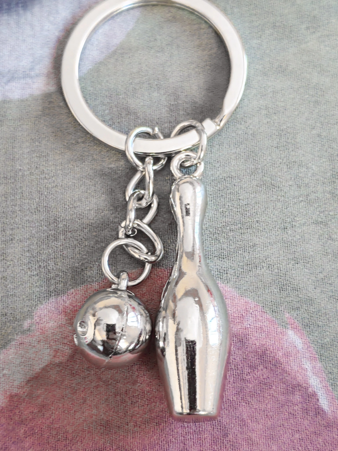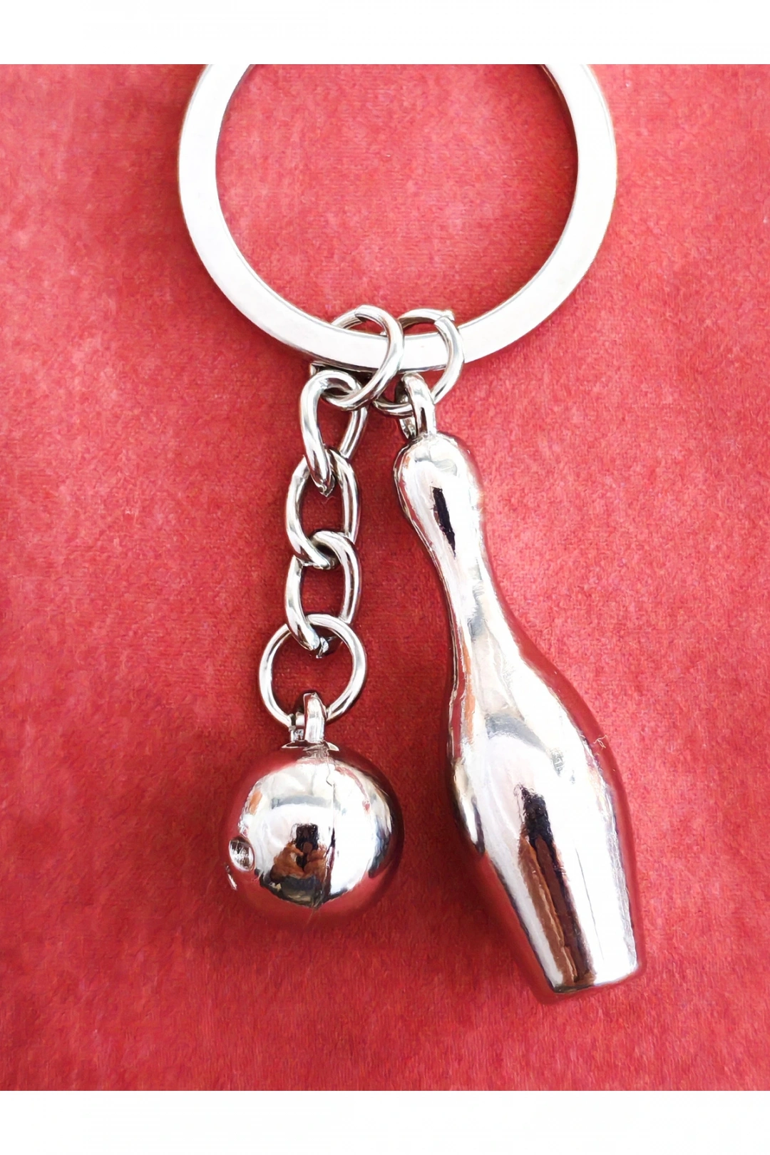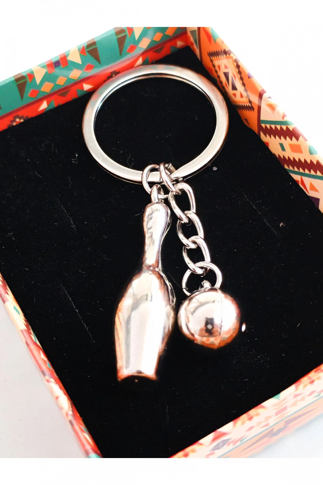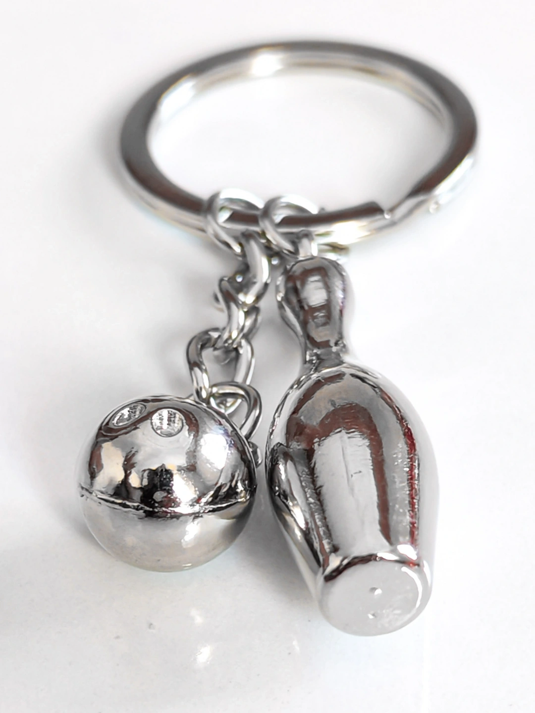 Gümüş Renkli Bowling Topu ve Labut Metal Anahtarlık – Spor Tutkunlarına Özel Şık Aksesuar