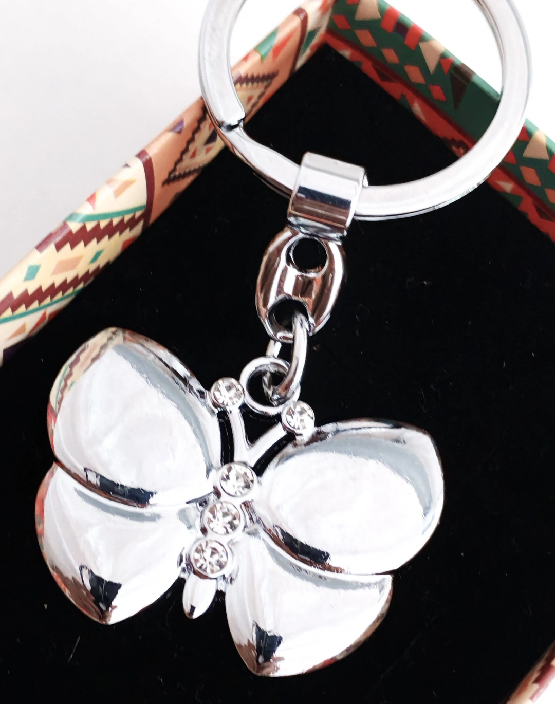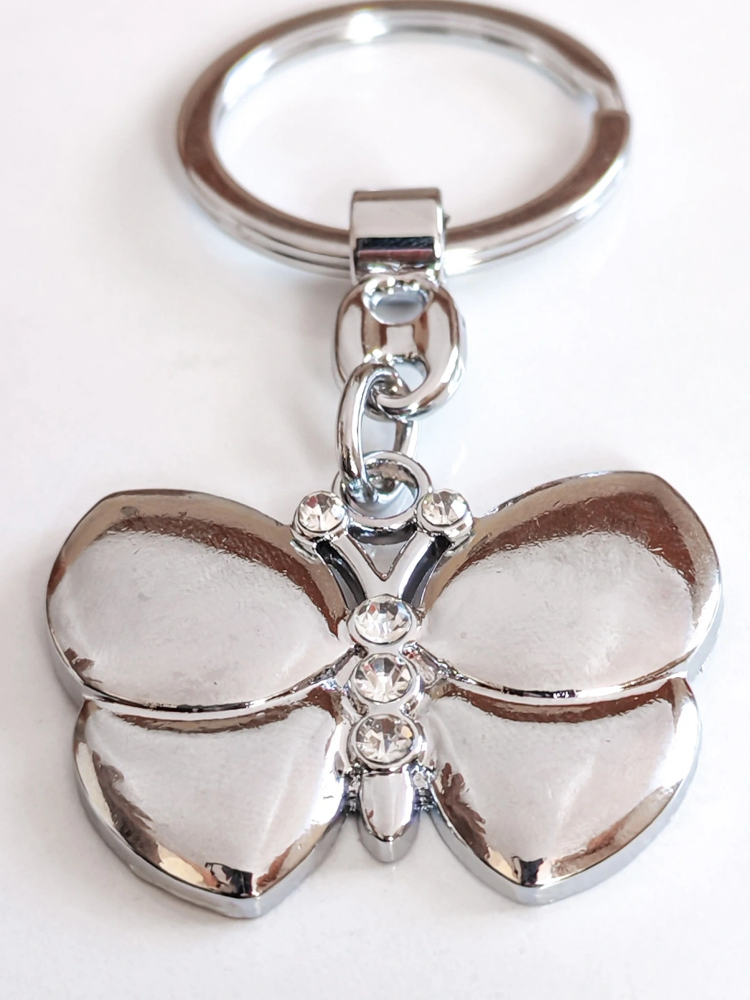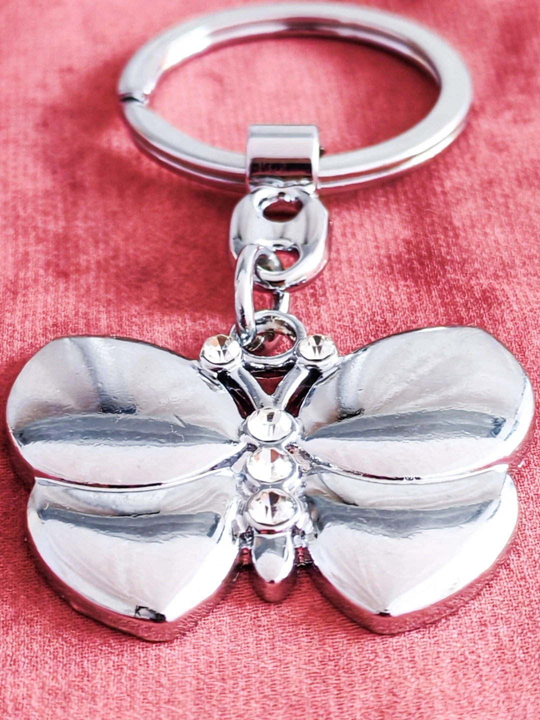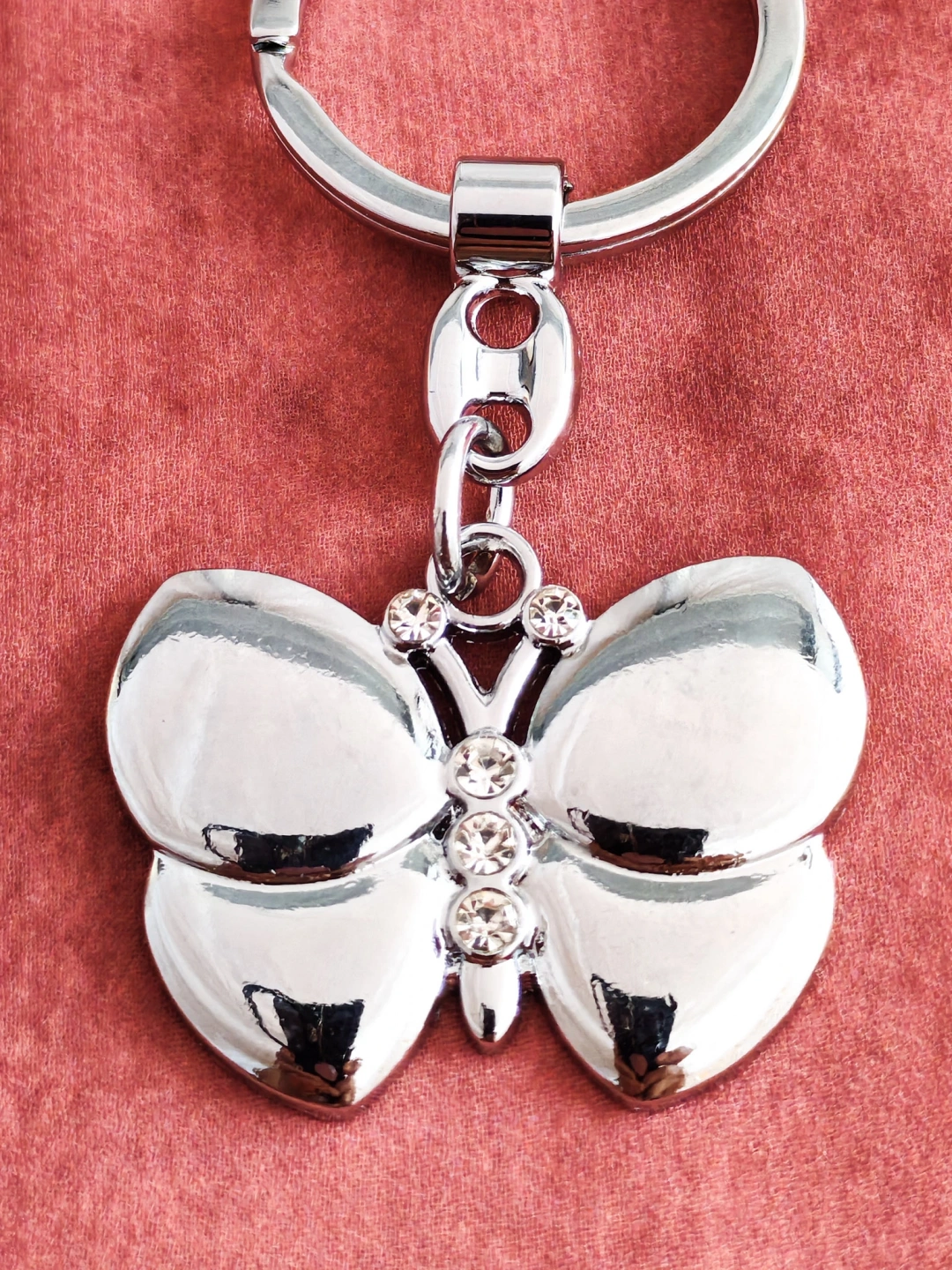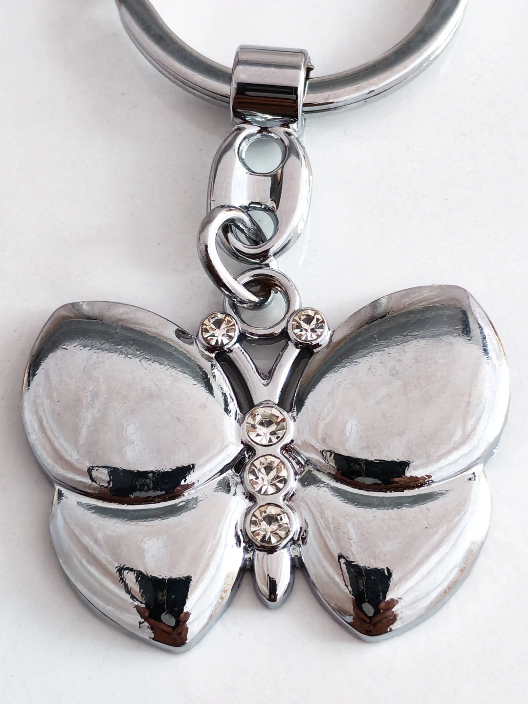 Gümüş Renkli Üç Boyutlu Kelebek Metal Anahtarlık – Zarif ve Estetik Tasarım