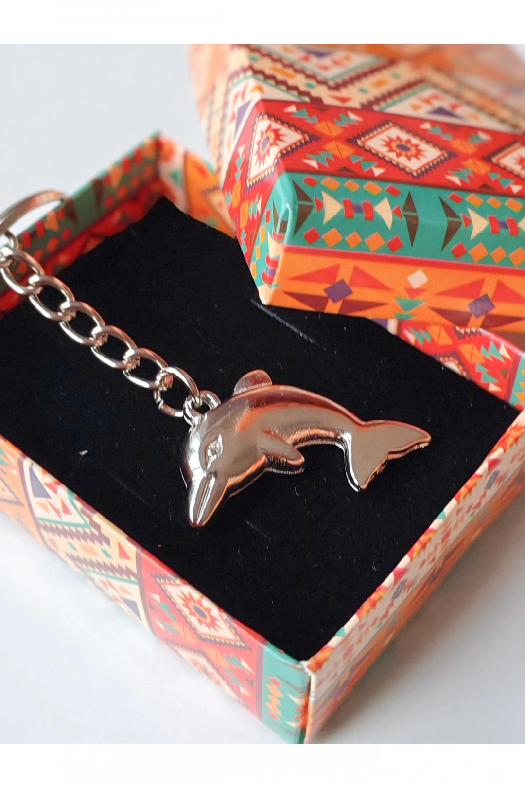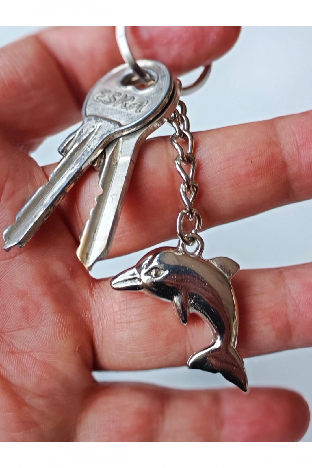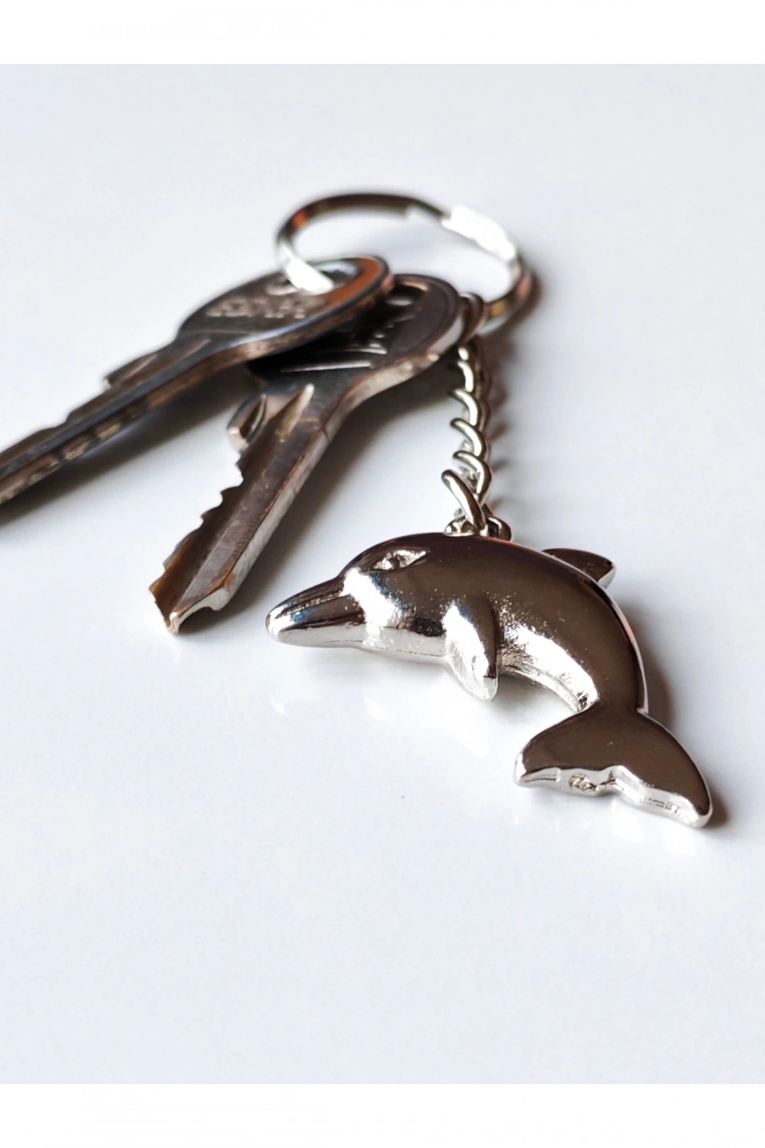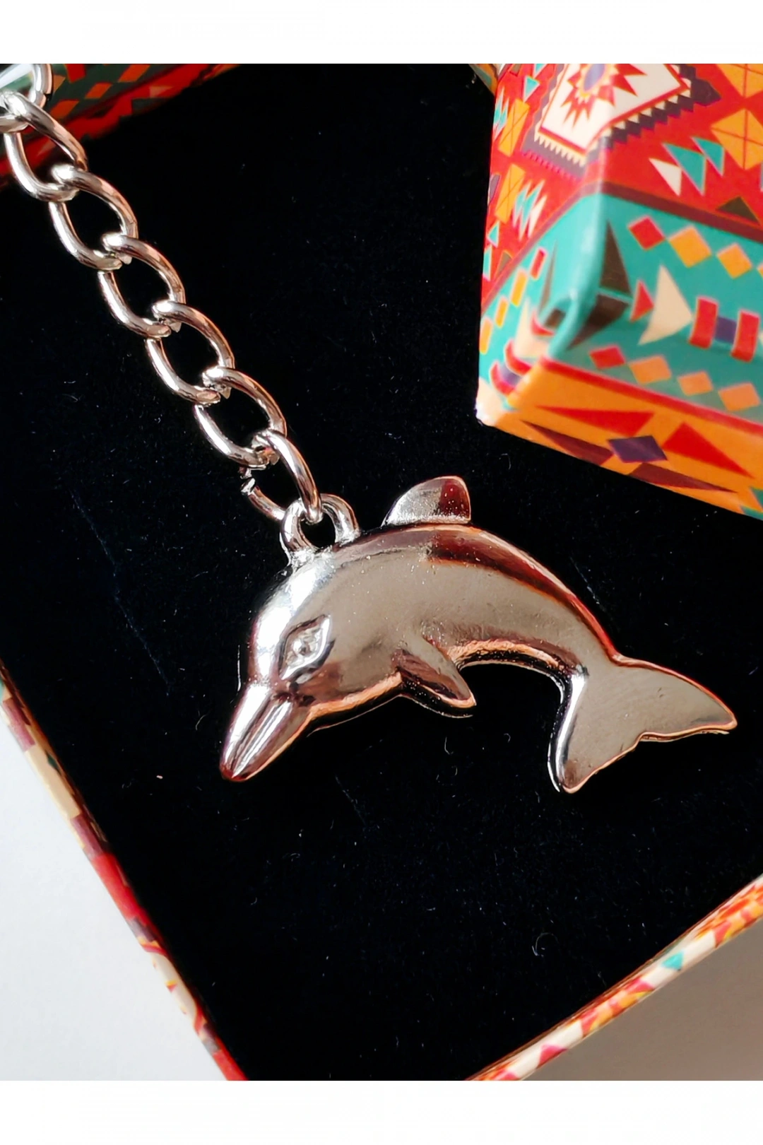 Gümüş Renkli Yunus Balığı Metal Anahtarlık – Zarafet ve Anlamın Simgesi