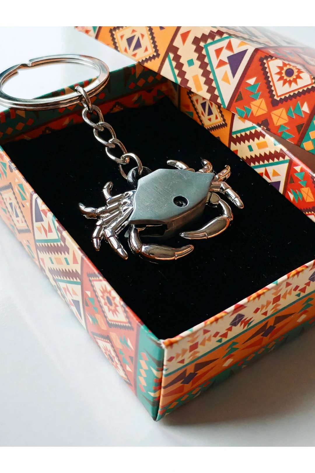 Deniz yaşamından ilham alan bu şirin yengeç figürlü metal anahtarlık, hareketli ayak detaylarıyla fark yaratıyor. Parlak metalik yüzeyi sayesinde göz alıcı bir görünüme sahip olan bu anahtarlık, hem eğlenceli tasarımı hem de sağlam yapısıyla dikkat çekiyor.