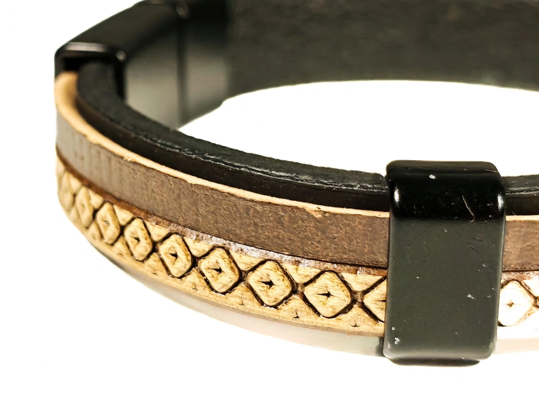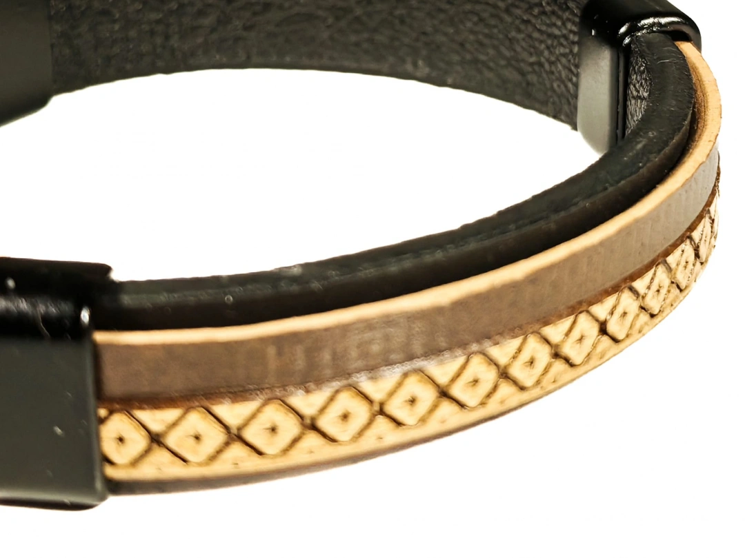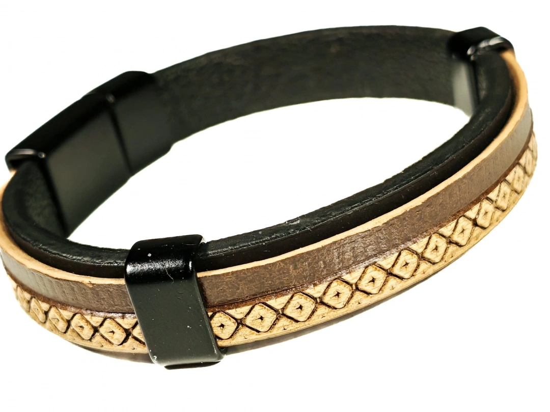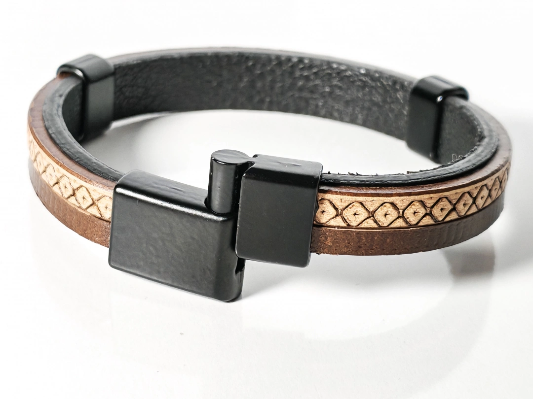 Kaliteli deri malzemeden üretilen bu bileklik, yumuşak ama dayanıklı yapısıyla konforlu bir kullanım sunar. Derinin doğal dokusu bilekte hoş bir his bırakırken, sade tasarımı sayesinde abartıdan uzak ama etkileyici bir görünüm sağlar. Günlük kullanımda bilekte ağırlık yapmaz ve gün boyu rahatlıkla taşınabilir.