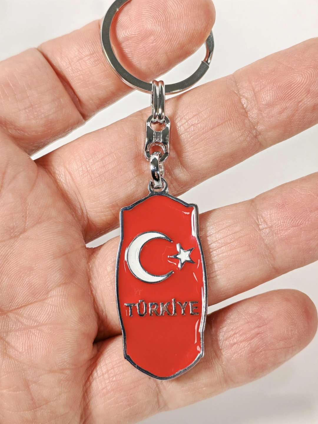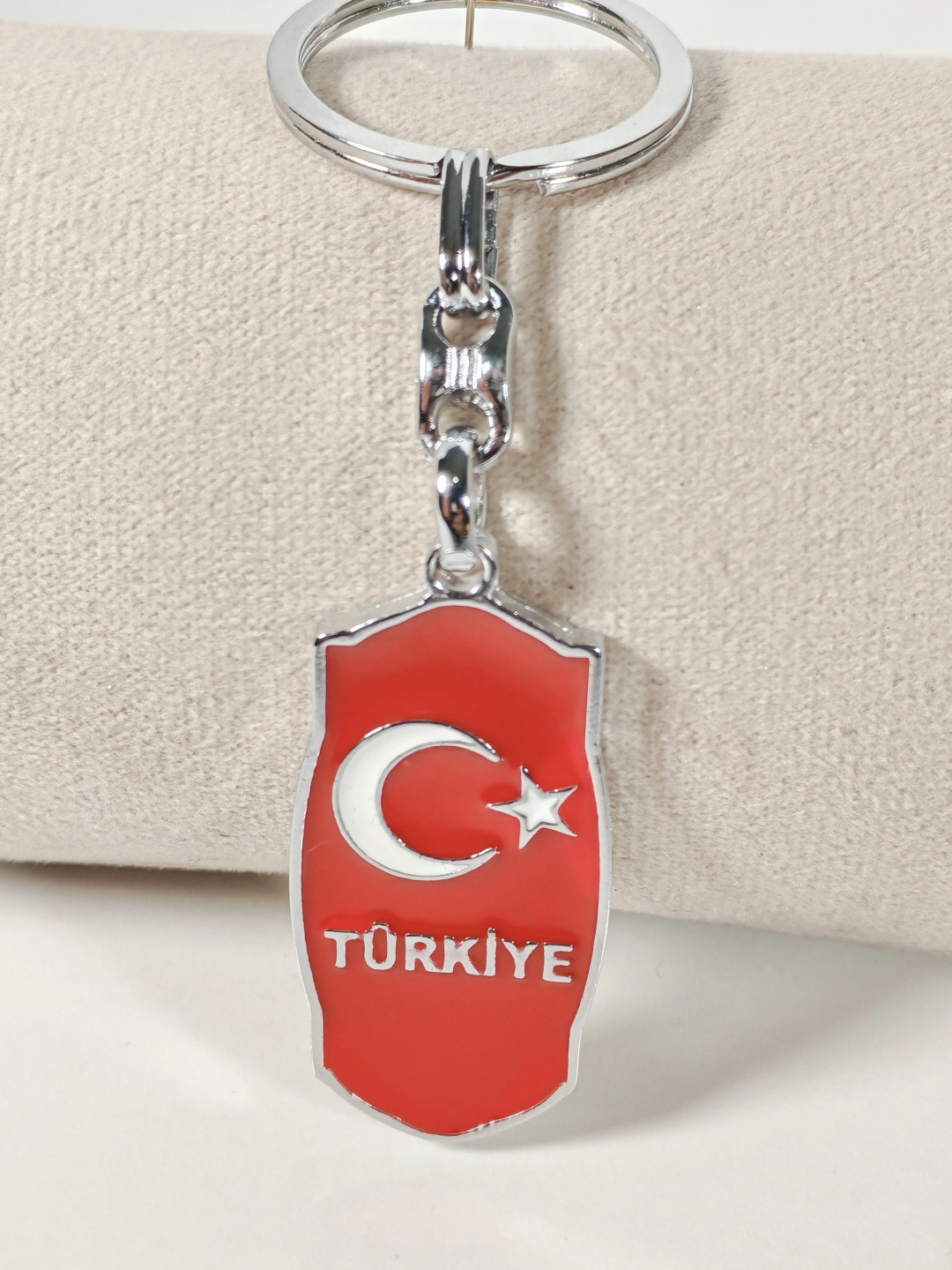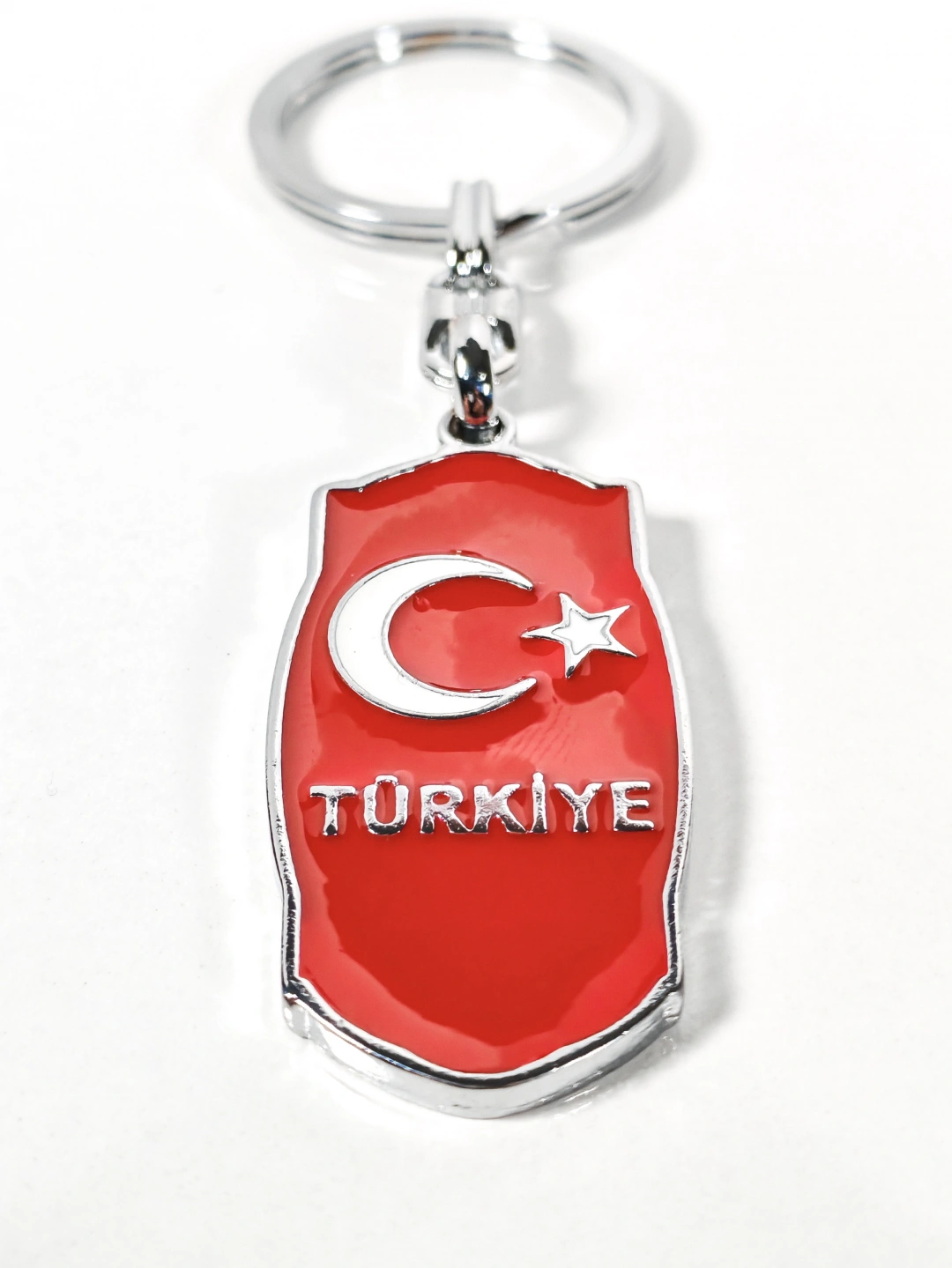 Parlak kırmızı zemin üzerine işlenen Ay Yıldız figürü ve net şekilde görünen “Türkiye” yazısı ile tasarlanan bu metal anahtarlık, milli kimliği sade ve güçlü bir tasarımla yansıtır. Kalkan formuna yakın hatlarıyla klasik bayrak temasını modern bir aksesuarla buluşturur.