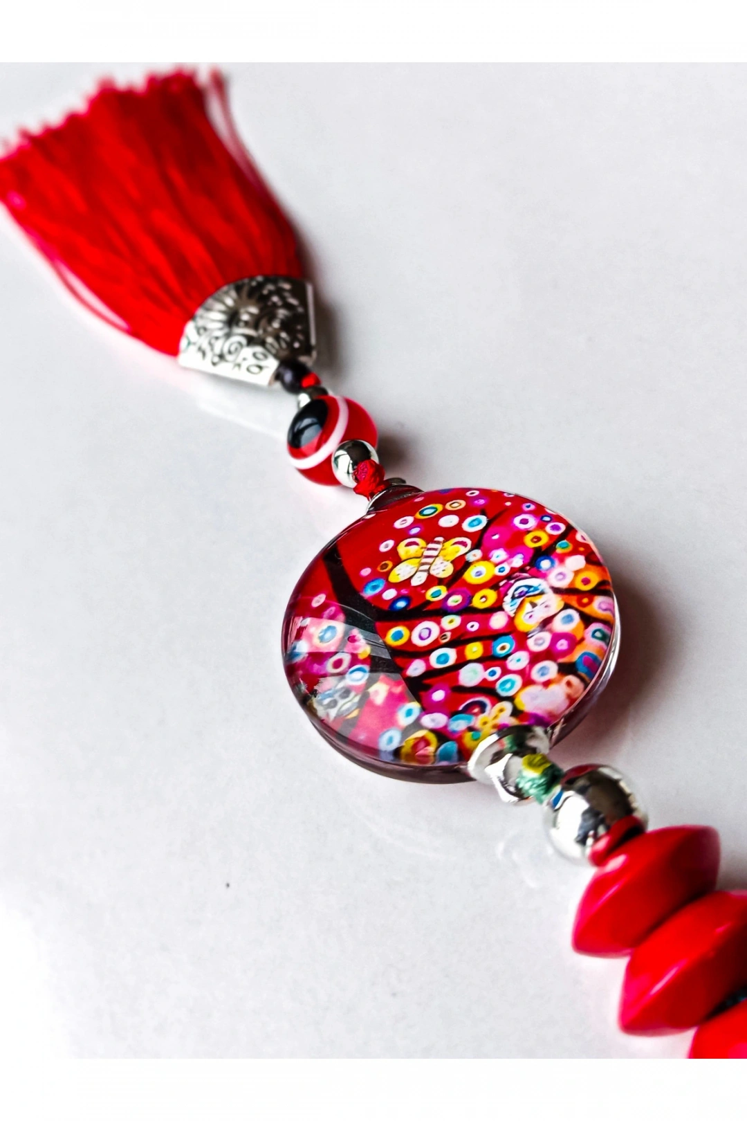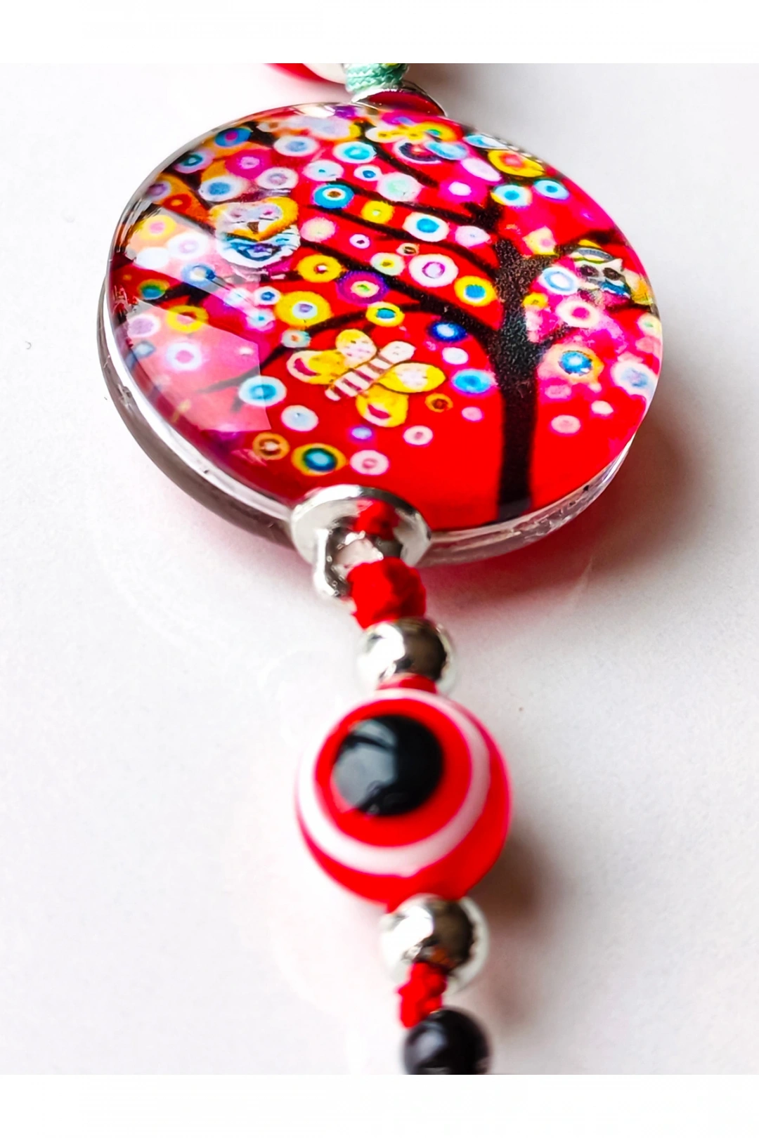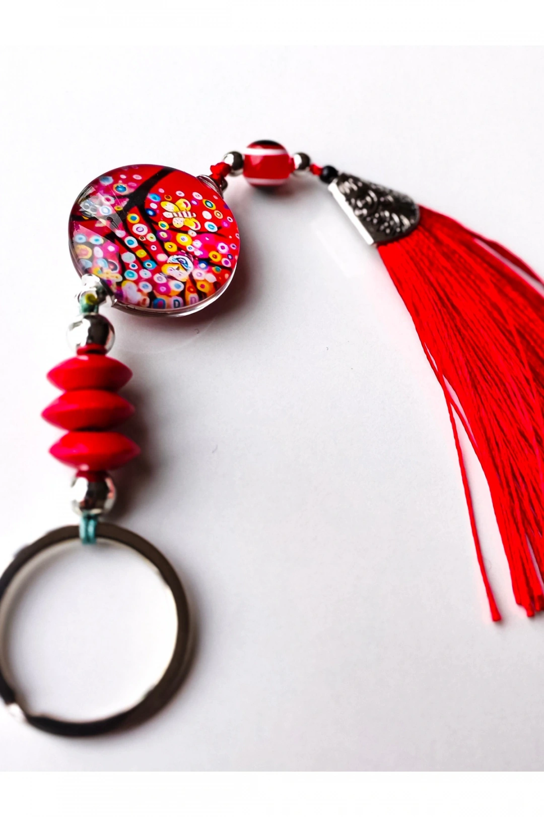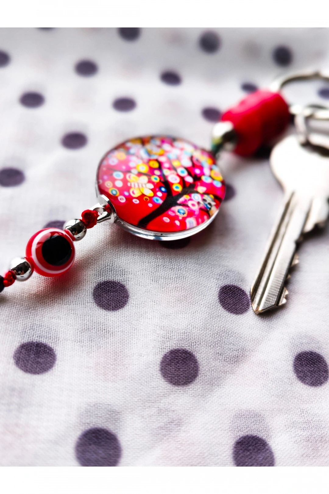 Kırmızı boncuklu hayat ağacı ve kırmızı püsküllü anahtarlık.; Şık ve göz alıcı.; ; Hediye olarakta düşünebilirsiniz.