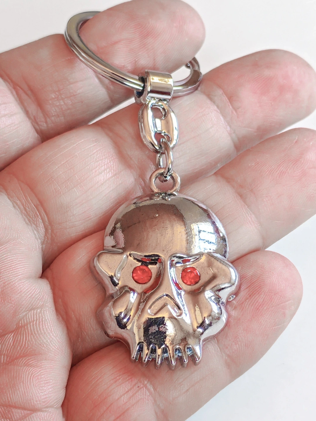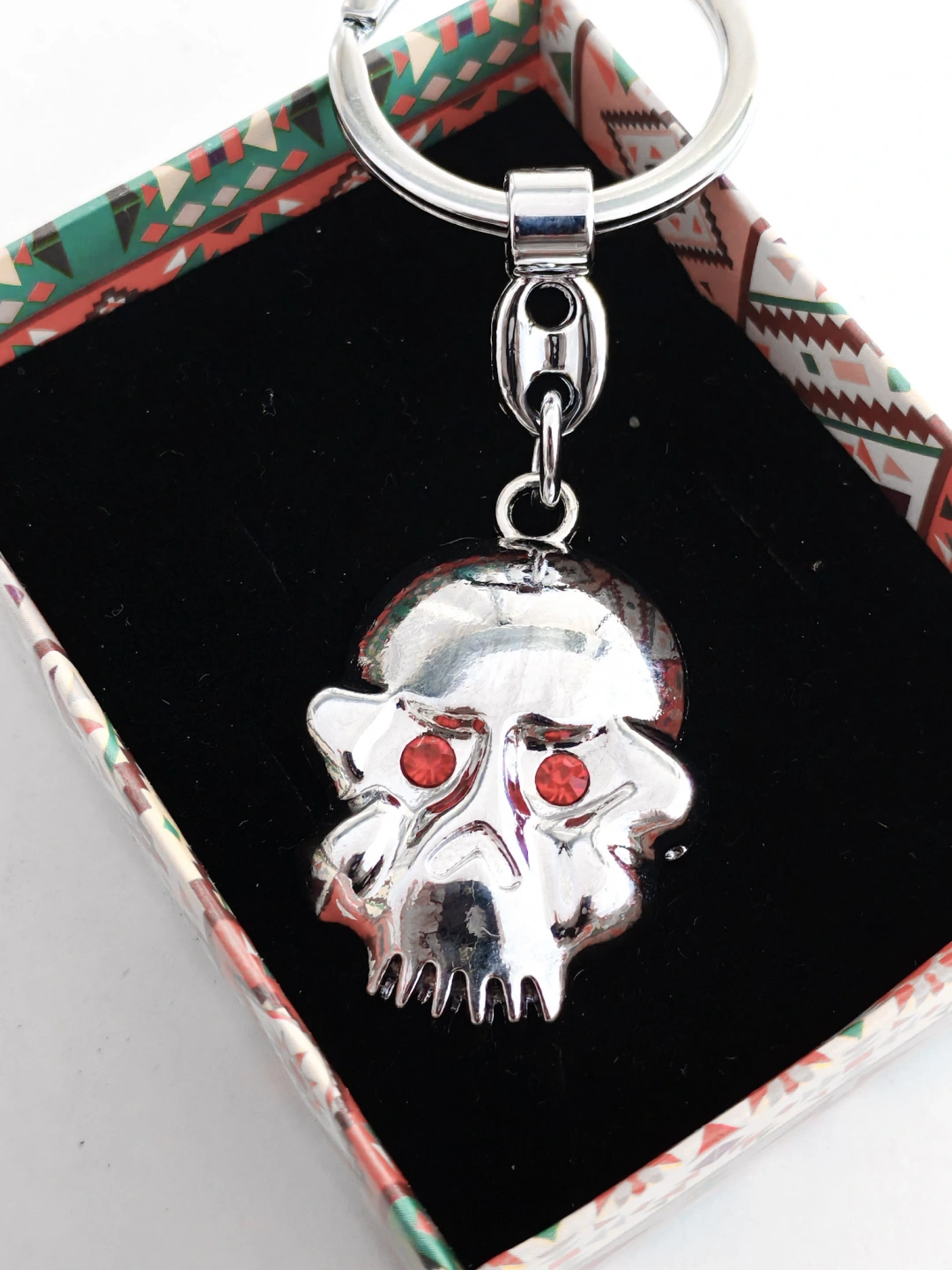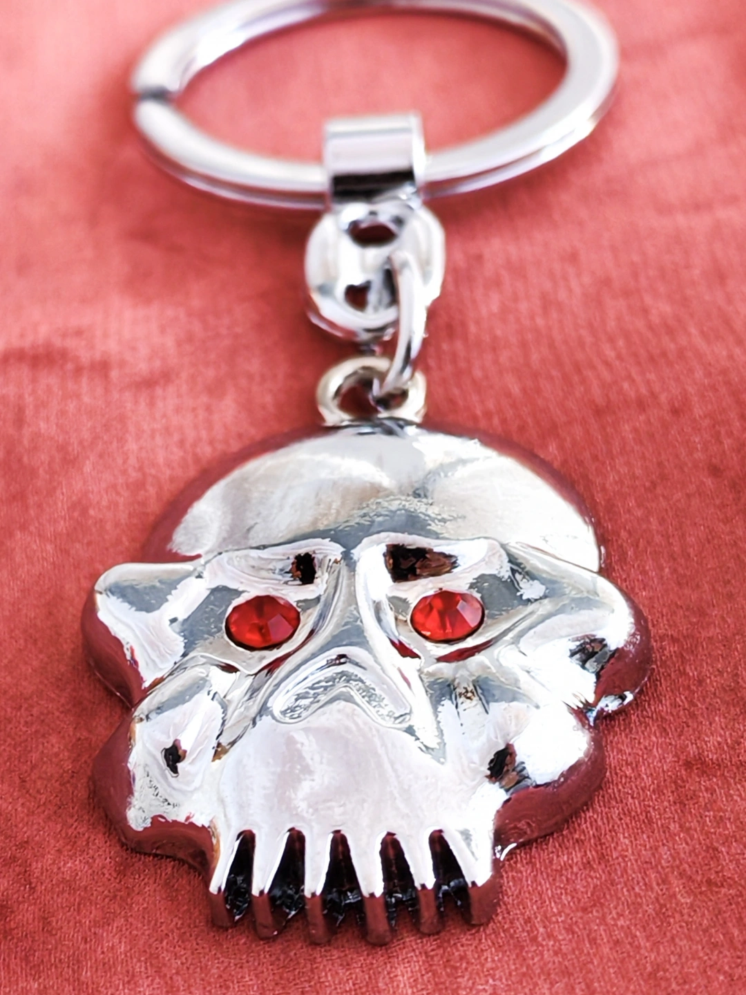 Kırmızı Gözlü İskeletor Kafatası Metal Anahtarlık – Sıradışı ve Karizmatik Bir Aksesuar