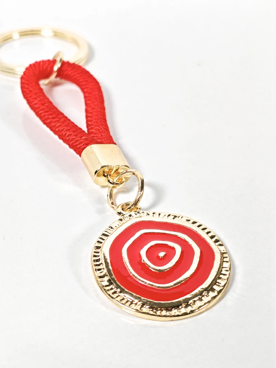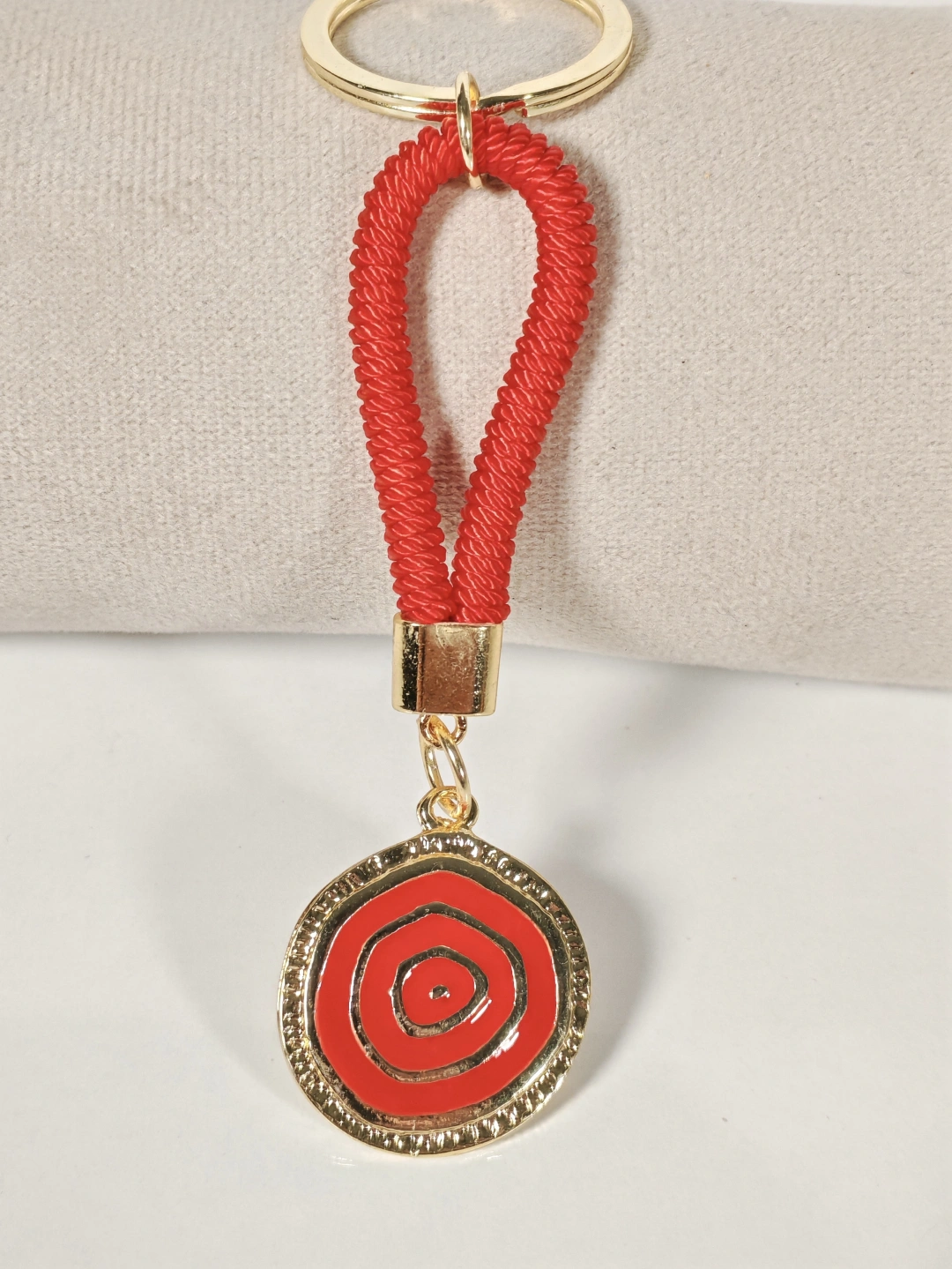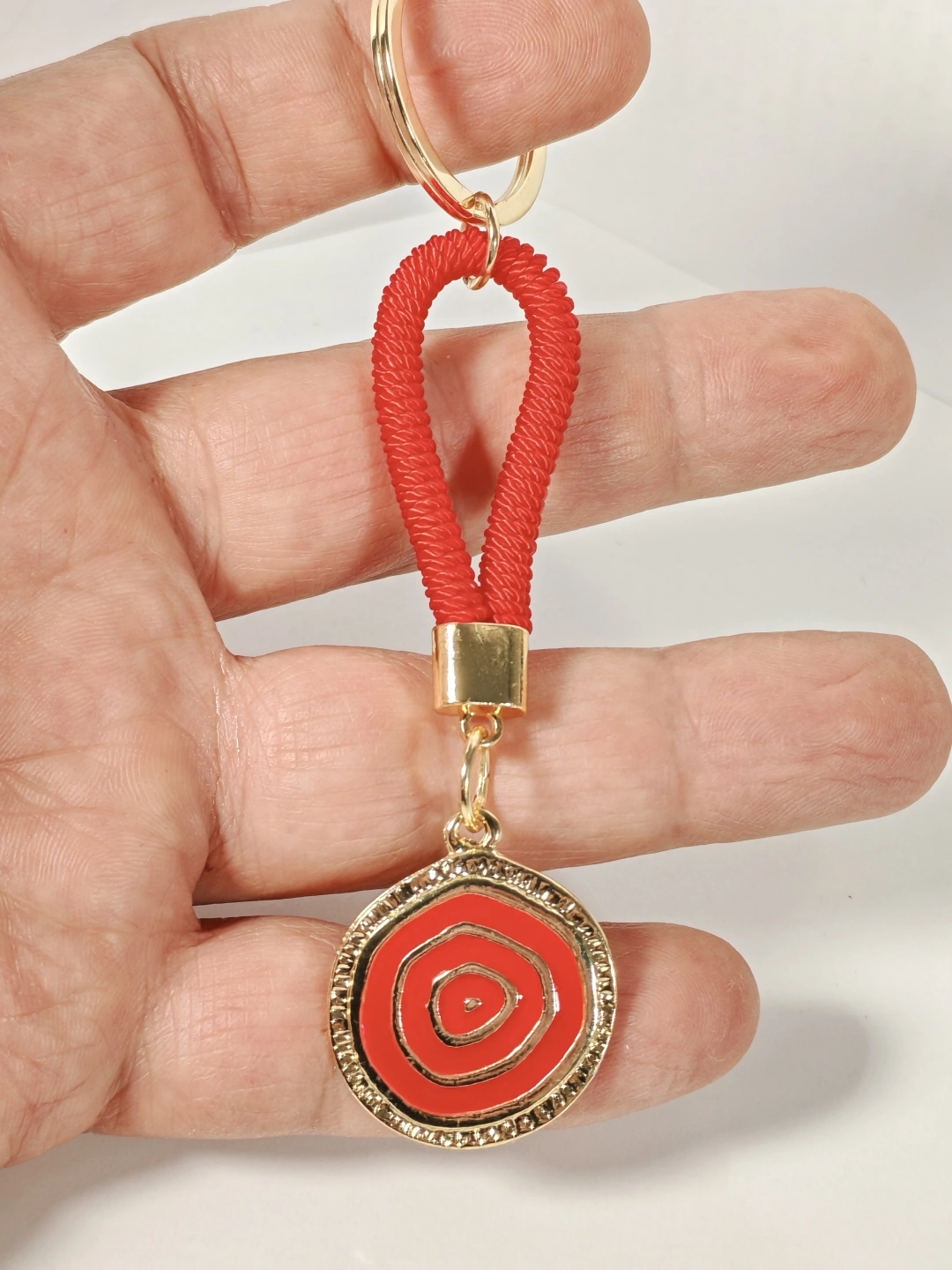Yuvarlak formdaki nazar boncuğu figürü, katmanlı spiral deseniyle geleneksel inancı modern bir tasarım anlayışıyla buluşturur. Parlak yüzey yapısı sayesinde ışığı estetik biçimde yansıtır ve anahtarlığa derinlik katar. Kırmızı renk, enerji ve canlılığı temsil ederken nazar boncuğu detayıyla koruyucu bir anlam taşır.