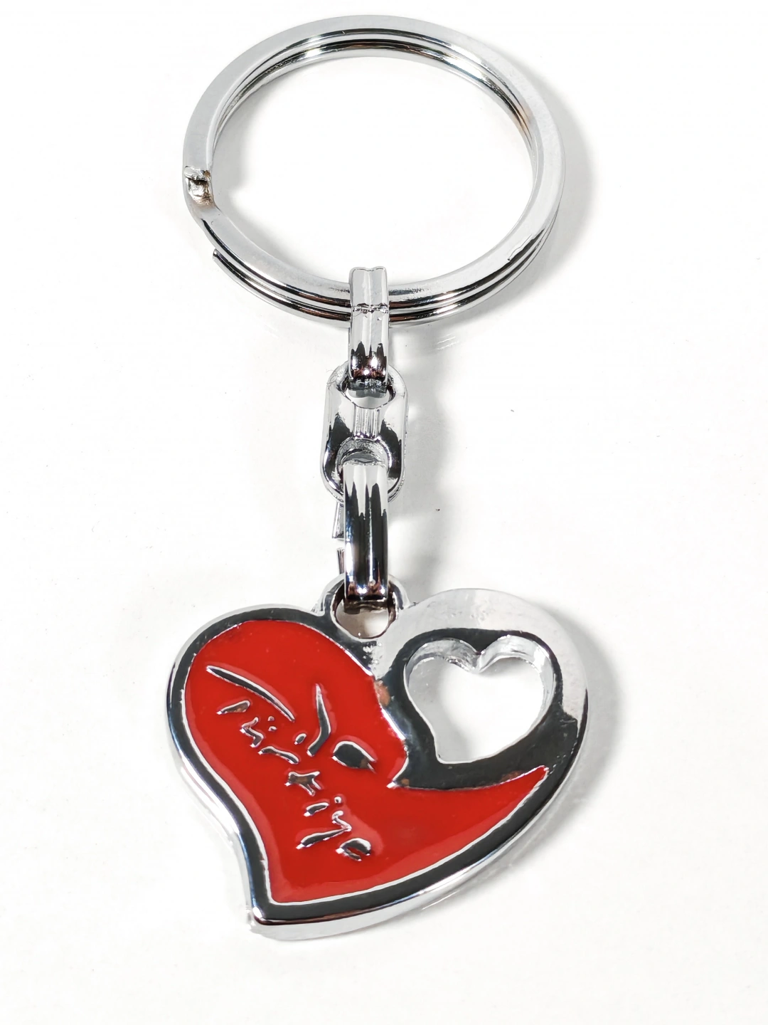 Parlak gümüş renkli metal gövdesi ve kırmızı kalp formuyla öne çıkan bu anahtarlık, sevgi ve aidiyet duygusunu zarif bir tasarımla yansıtır. Kalp figürü üzerinde yer alan “Türkiye” yazısı, ürüne milli bir anlam ve güçlü bir duygusal bağ kazandırır. Kalpteki açık form detayı ise tasarıma modern ve estetik bir dokunuş ekler.