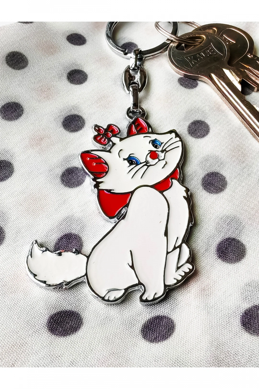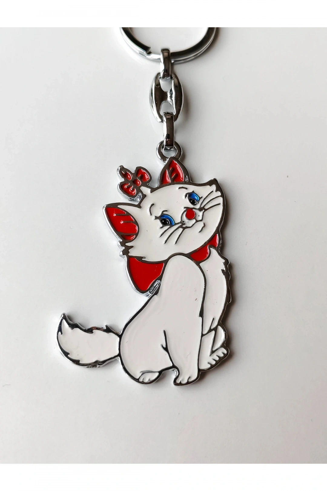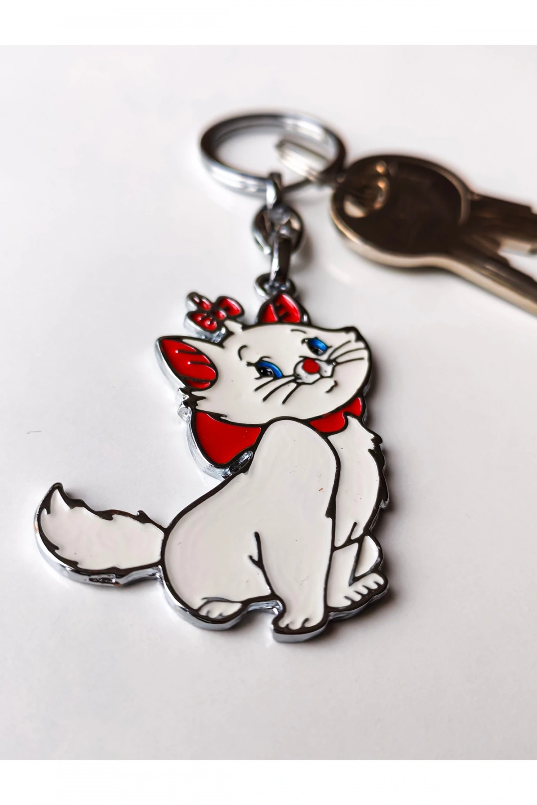 Şirin beyaz kedi metal anahtarlık ; Çok şirin ve çekici ; Aynı zamanda güzel bir hediye olarak düşünülebilir ;
