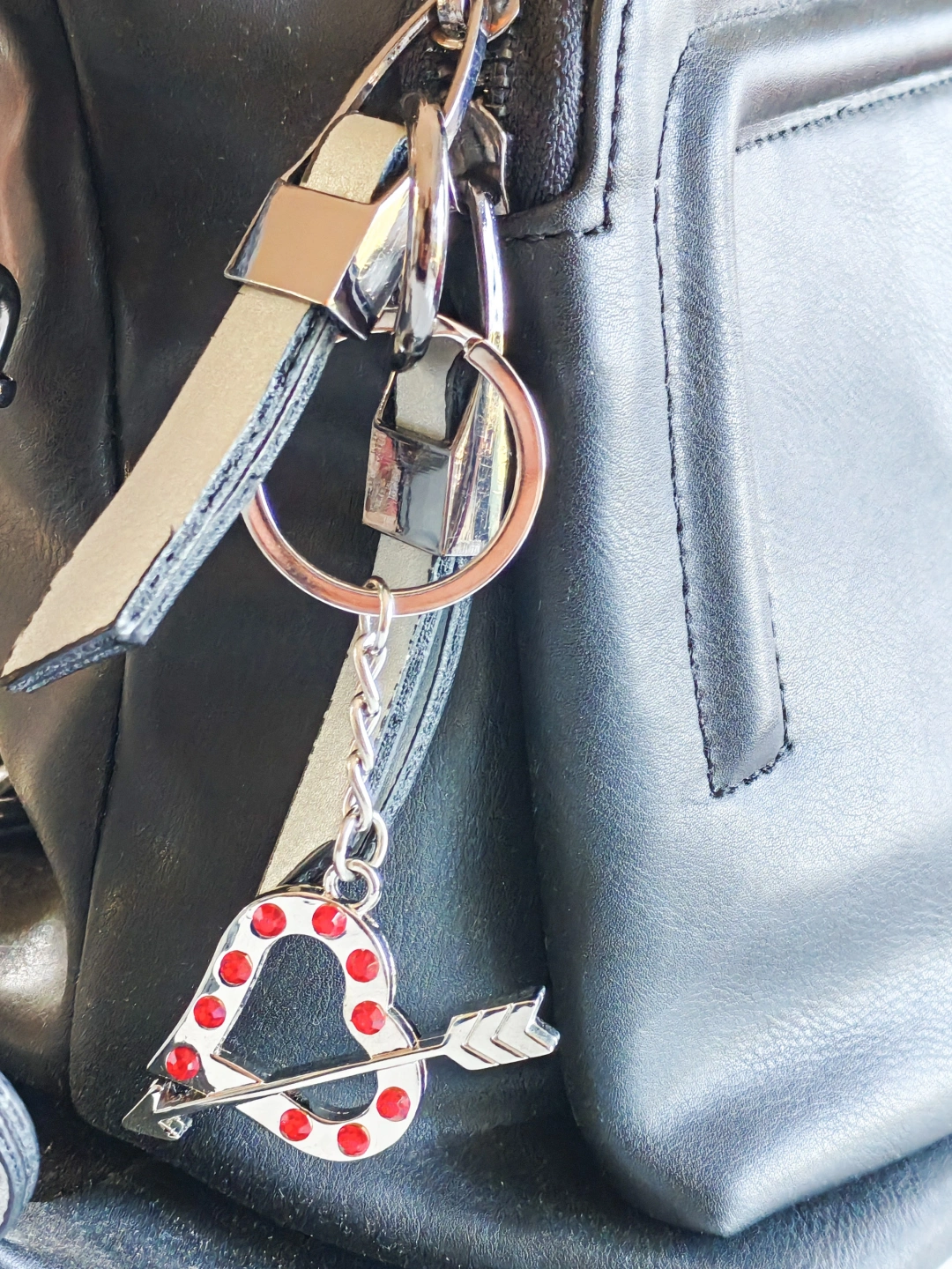 Kırmızı Taşlı Kalp Şekilli Metal Çanta Süsü – Sevginin, Tutkunun ve Zarafetin Göz Alıcı İfadesi