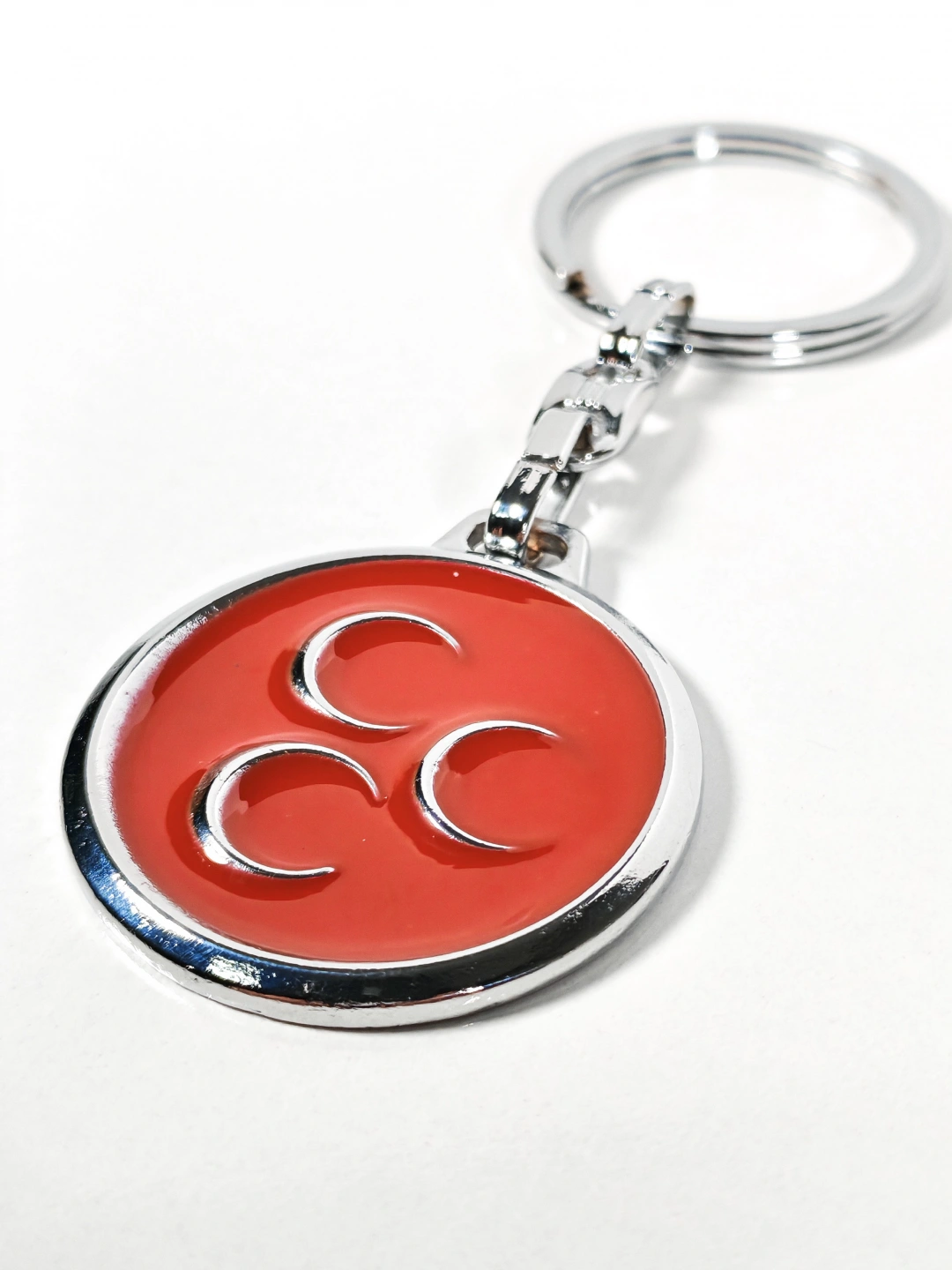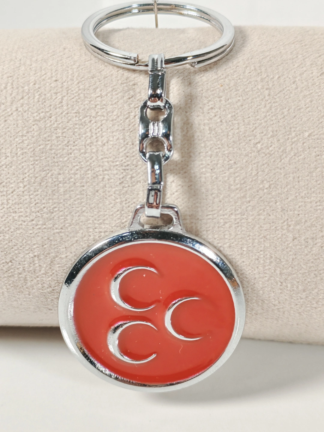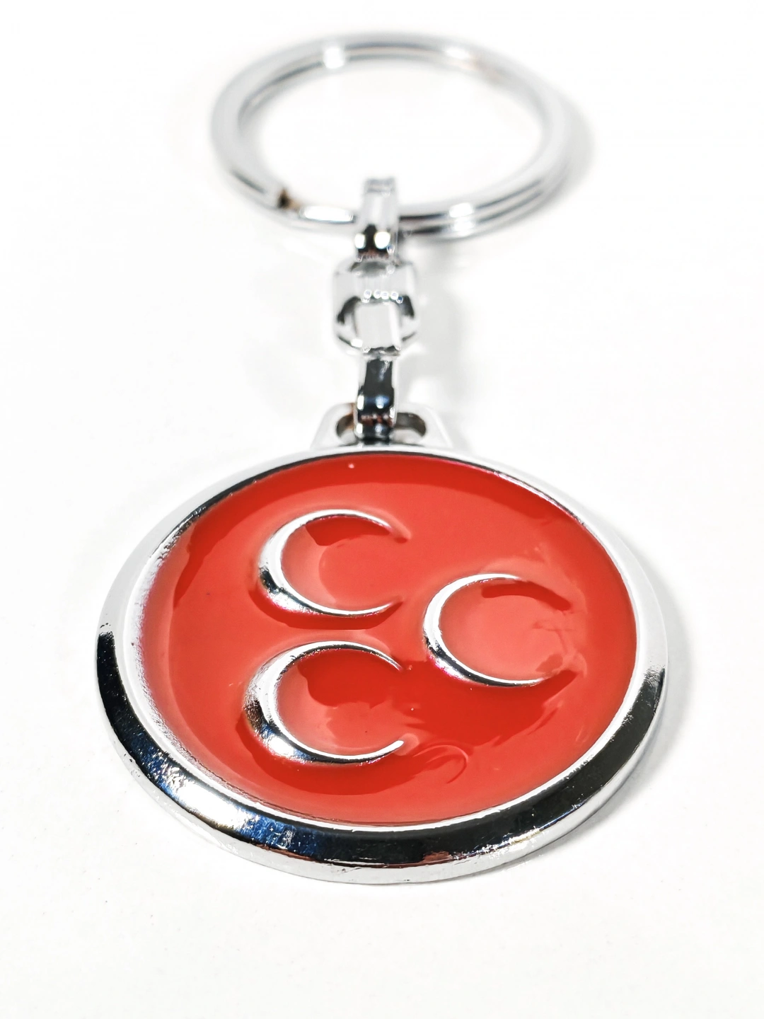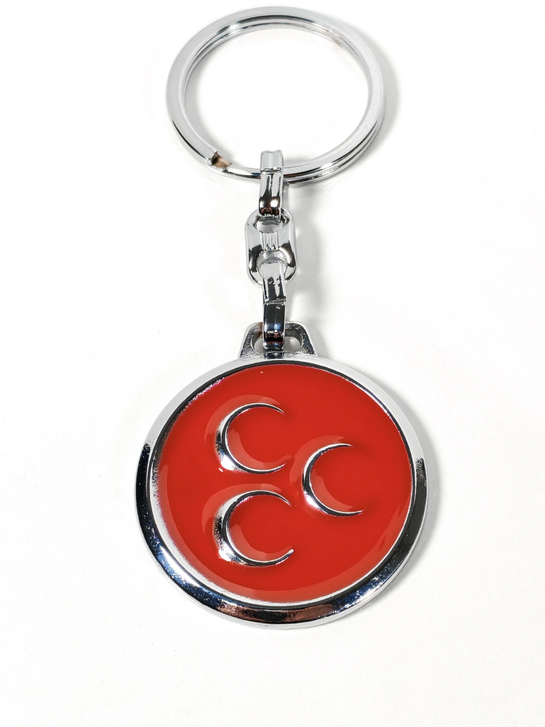Dayanıklı metal malzemeden üretilmiştir. Kırmızı mine kaplama yüzeyi parlak ve pürüzsüz bir görünüm sunarken, üç hilal figürü net ve belirgin şekilde kabartmalı olarak işlenmiştir. Sağlam anahtarlık halkası ve bağlantı aparatı sayesinde anahtarlarınızı güvenle taşımanıza yardımcı olur. Dengeli ağırlığıyla günlük kullanımda konfor sağlar.