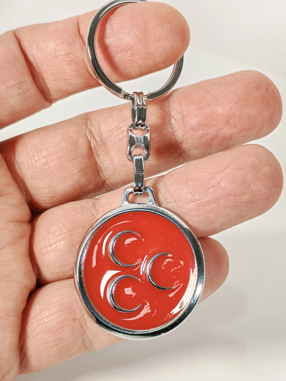 Kırmızı Üç Hilal Figürlü Metal Anahtarlık – Tarihi Sembol ve Güçlü Duruşun Birleşimi