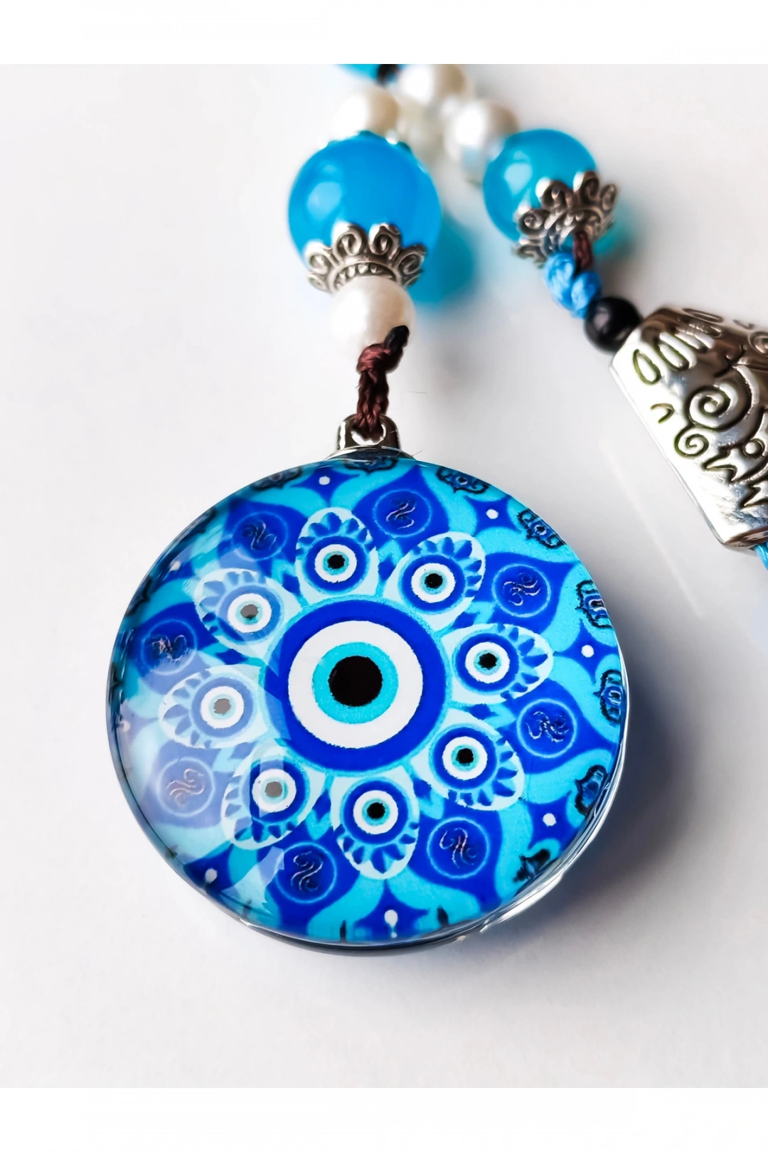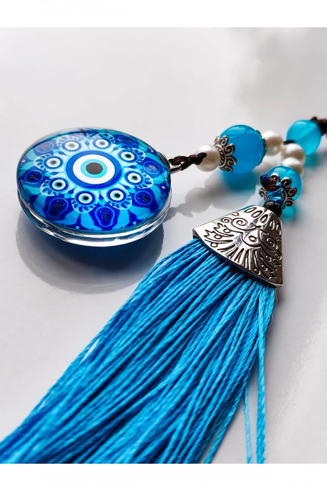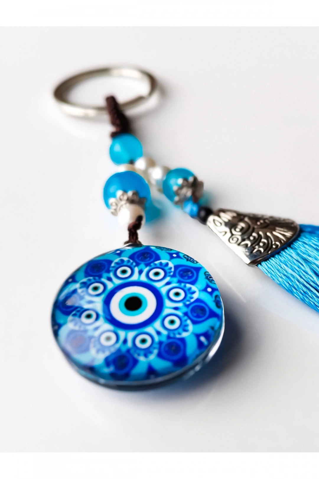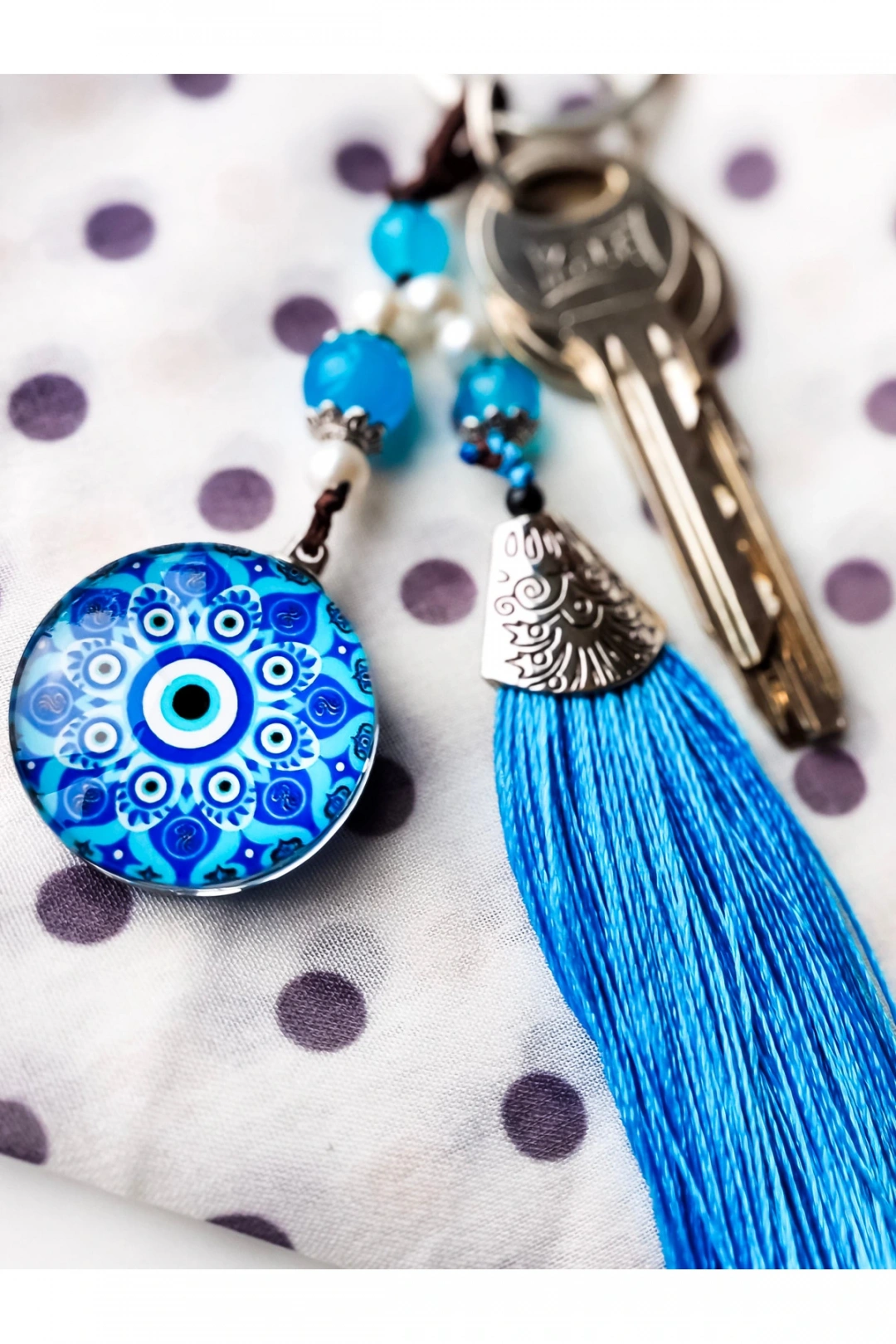 Mavi Cam ve Mavi Püsküllü Anahtarlık