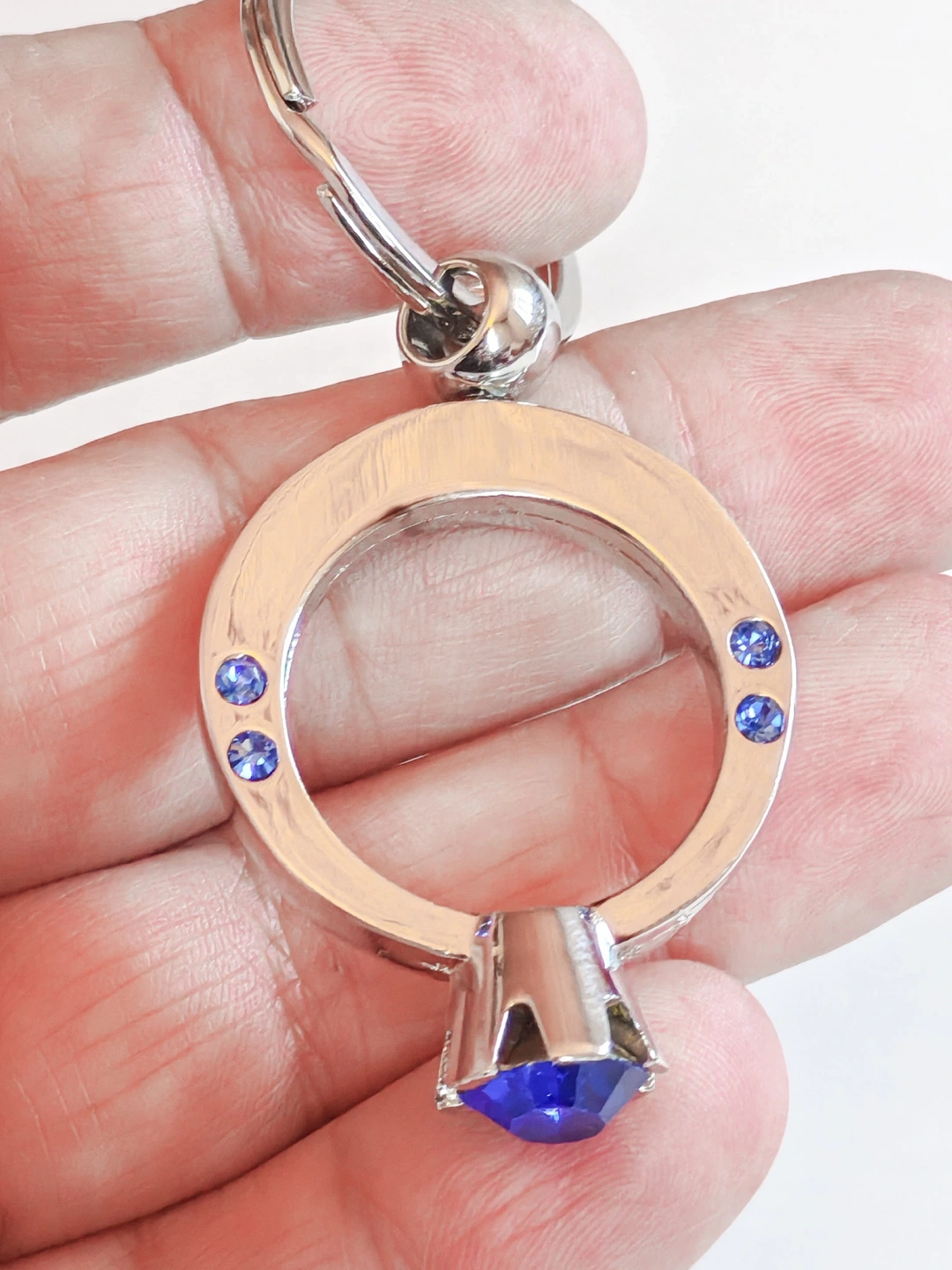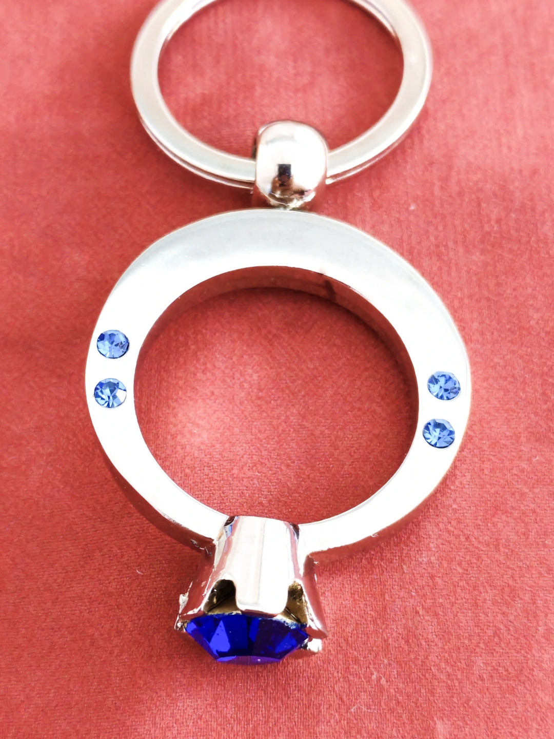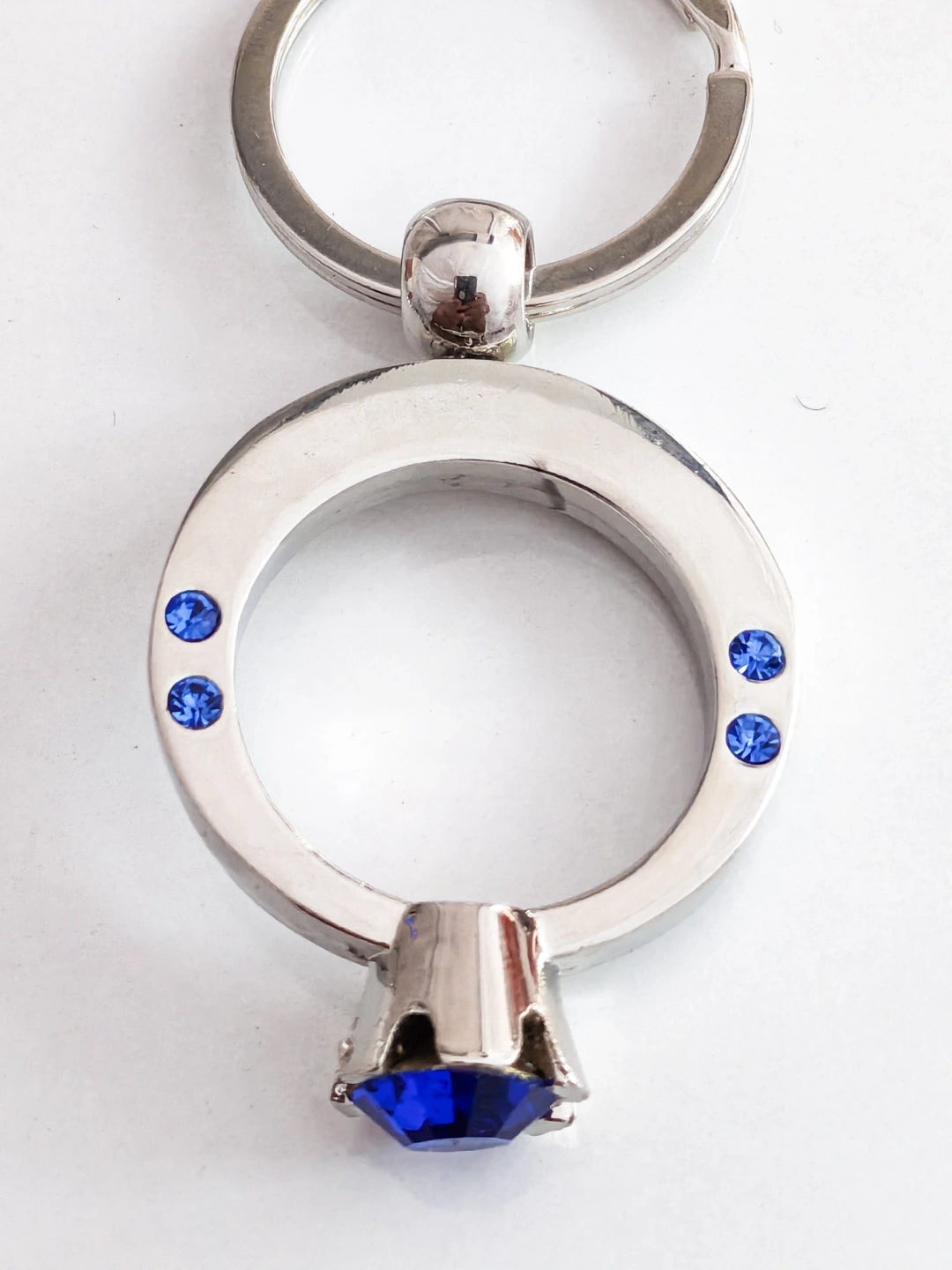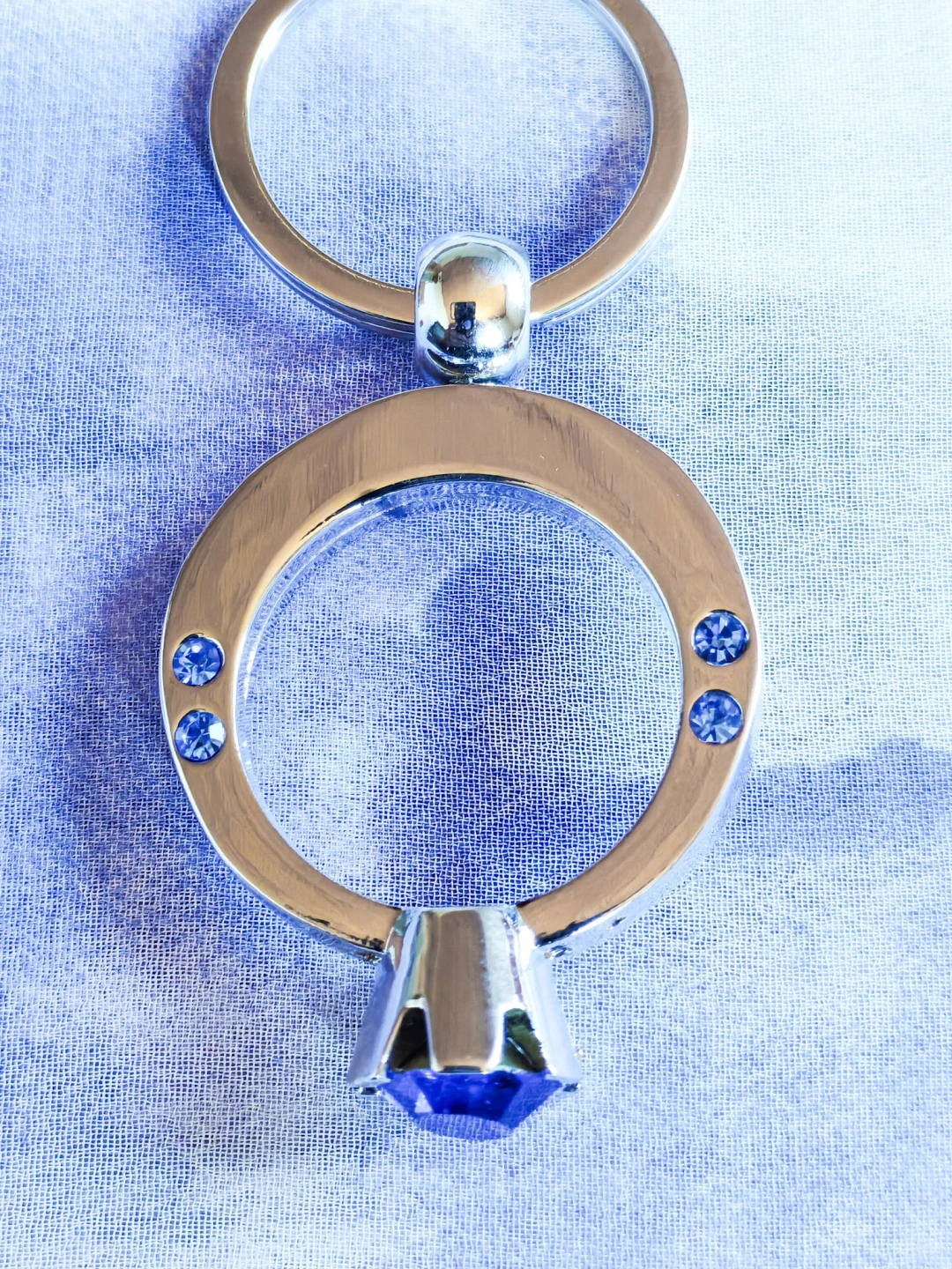 Mavi Tek Taşlı Yüzük Şeklinde Metal Anahtarlık – Zarafeti ve Işıltıyı Yanınızda Taşıyın
