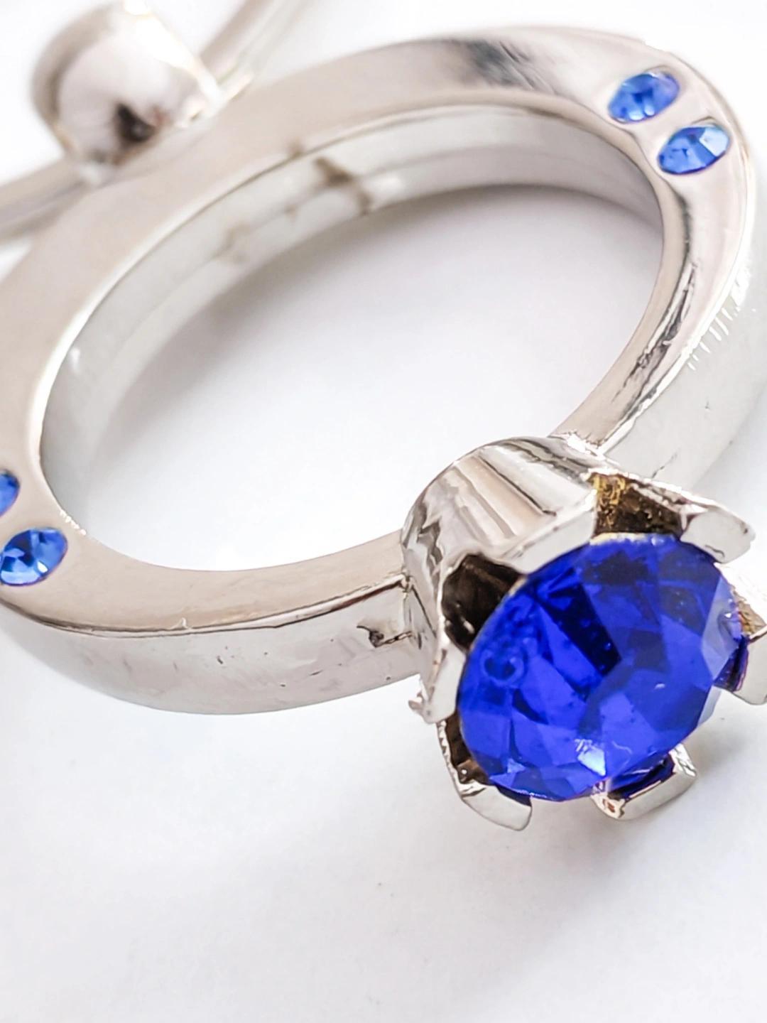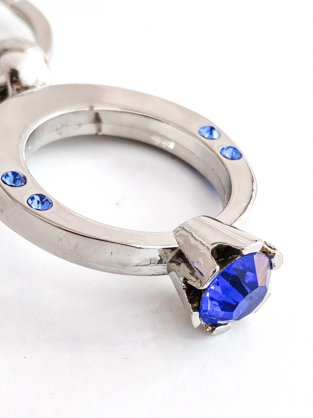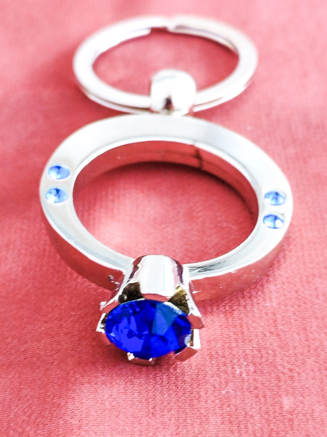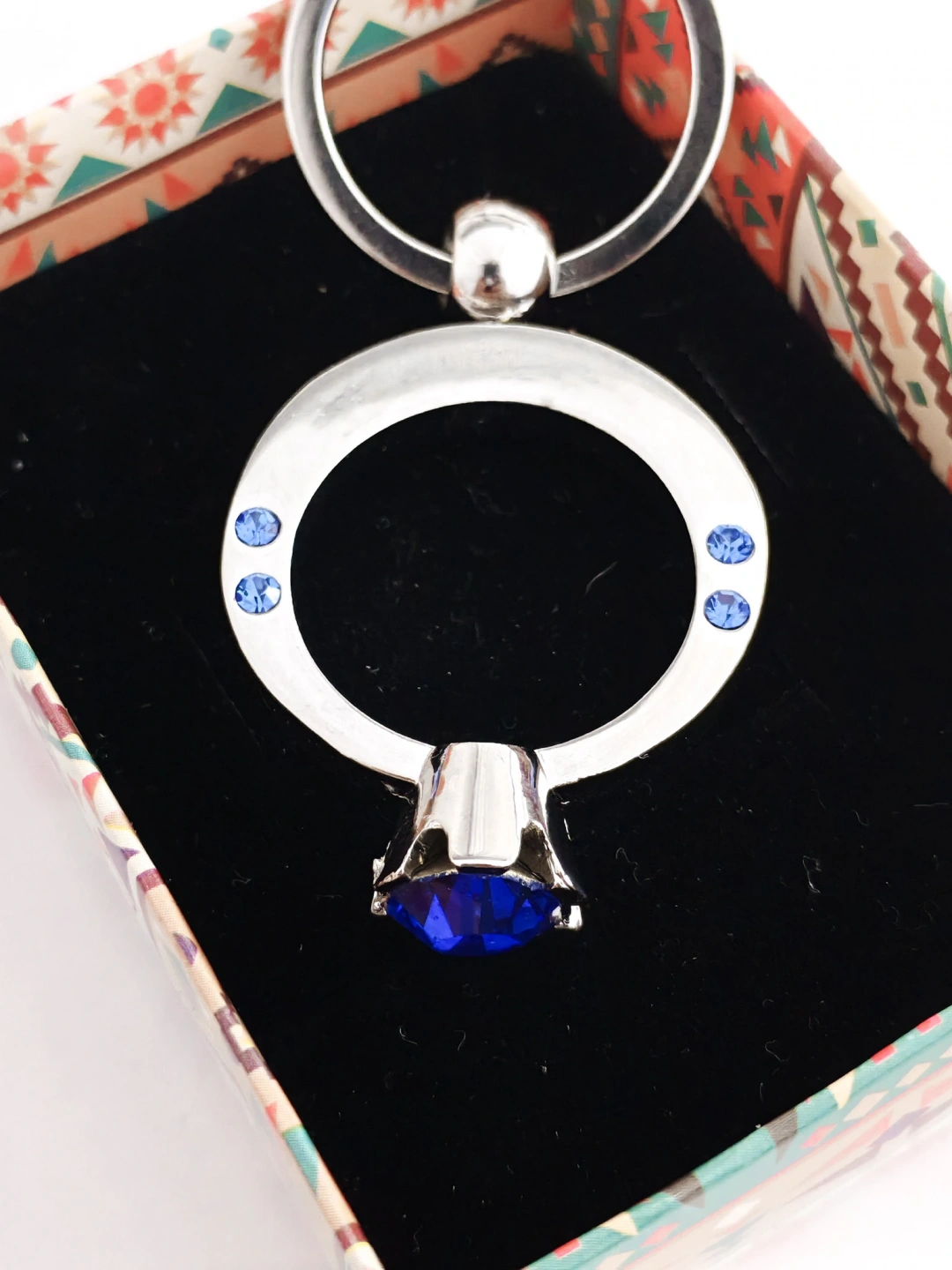 Mavi Tek Taşlı Yüzük Şeklinde Metal Anahtarlık – Zarafeti ve Işıltıyı Yanınızda Taşıyın