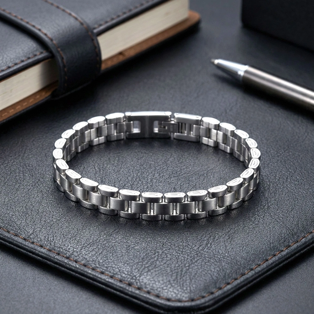 20 cm standart ölçüsü erkek bilek yapısına uygundur. Entegre klips kilit sistemi güvenli kullanım sağlar ve bilek üzerinde düz bir görünüm oluşturur. Takıp çıkarma işlemi pratiktir.
